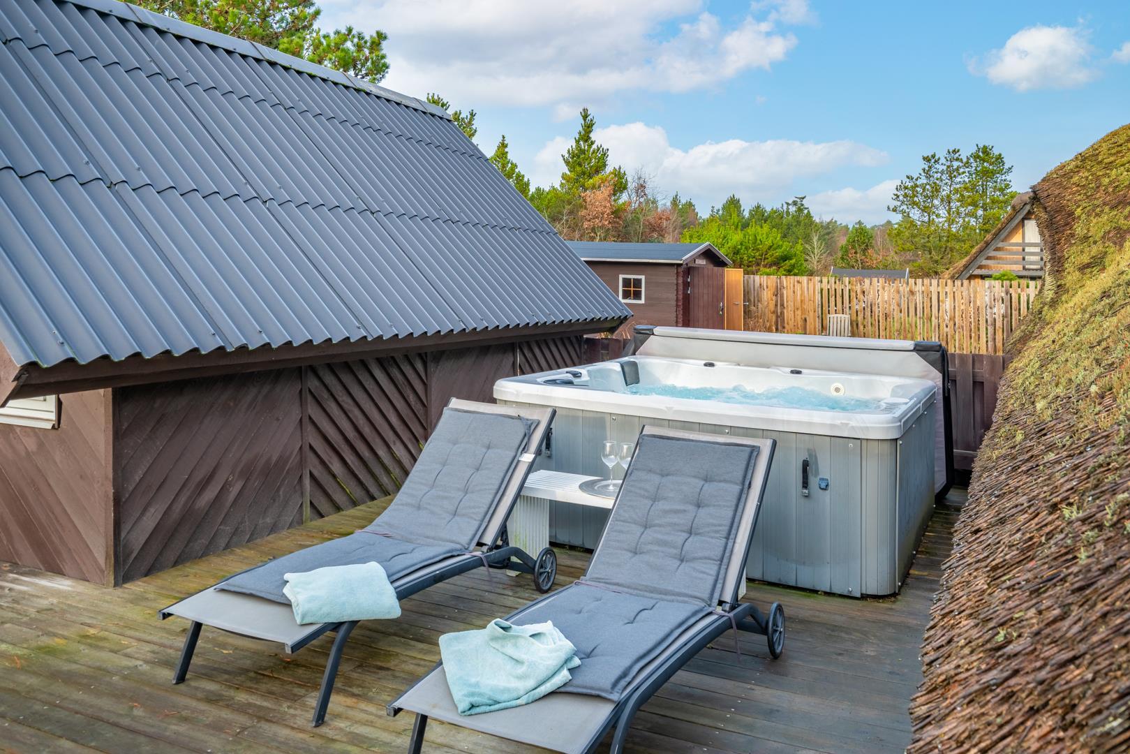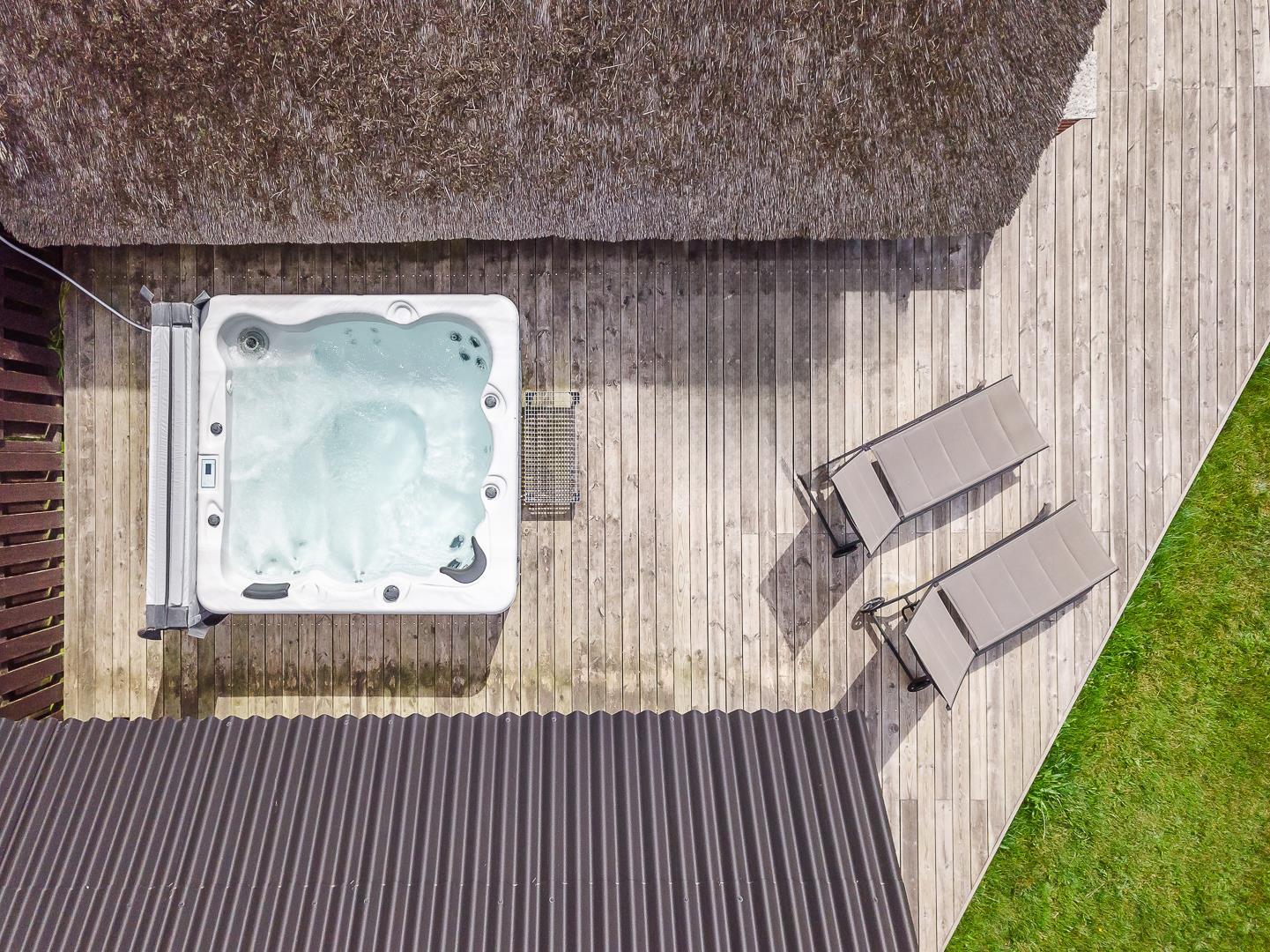 Spaen er placeret ugeneret på terrassen, så man kan nyde roen i fulde drag. Der er flere gode terrasser omkring huset, hvor man kan følge med i livet på den store naturgrund. Bemærk venligst: Annekset er privat. Aflåsbar depotrum til cykler.