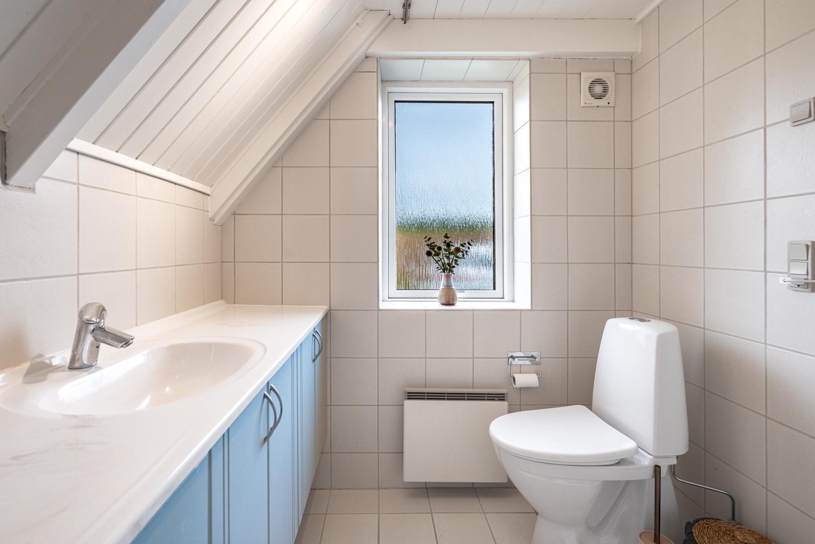 Sommerhuset har tre gode soveværelser: Ét i stueplan med dobbeltseng og to værelser på 1. sal – ét med dobbeltseng og ét med to enkeltsenge. Der er god plads til både familier og vennepar.