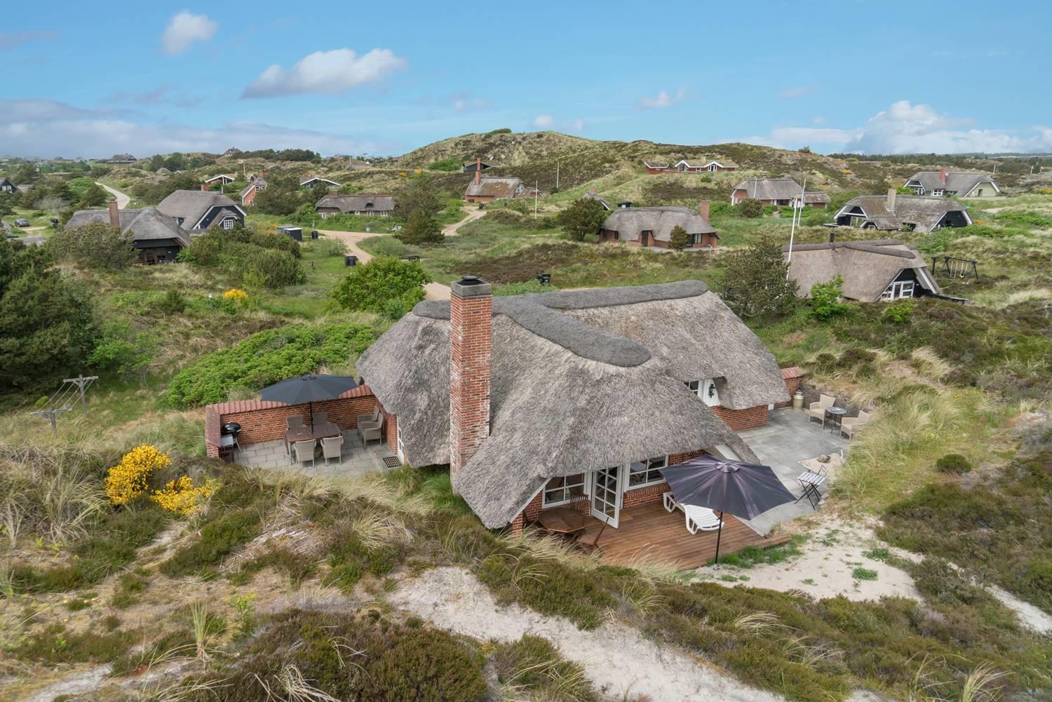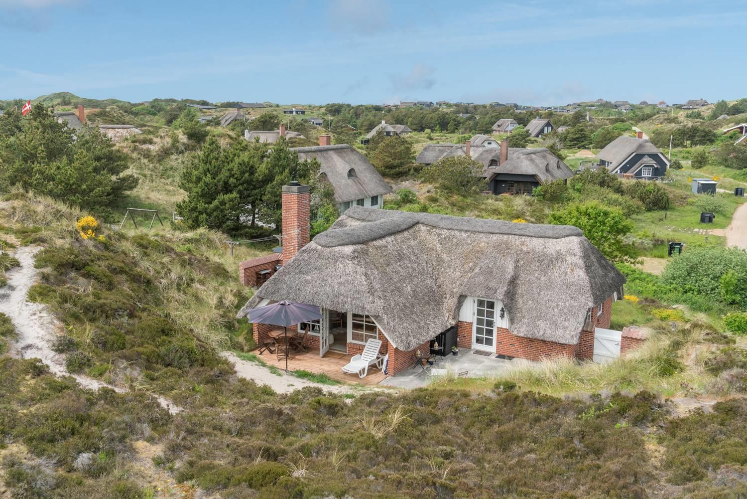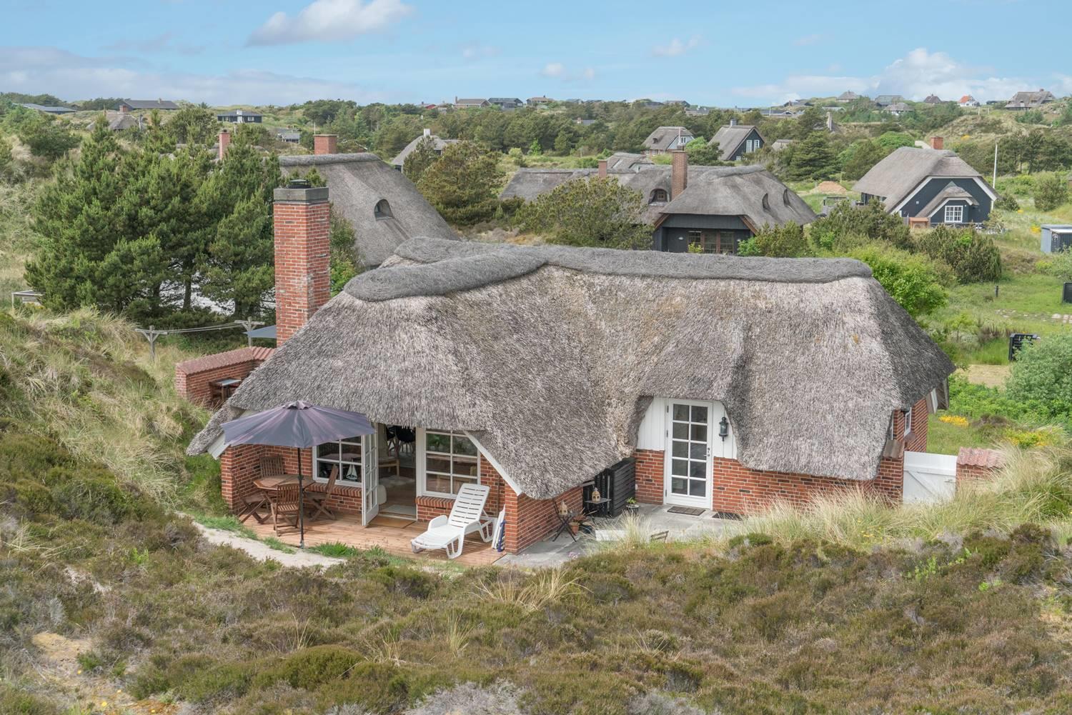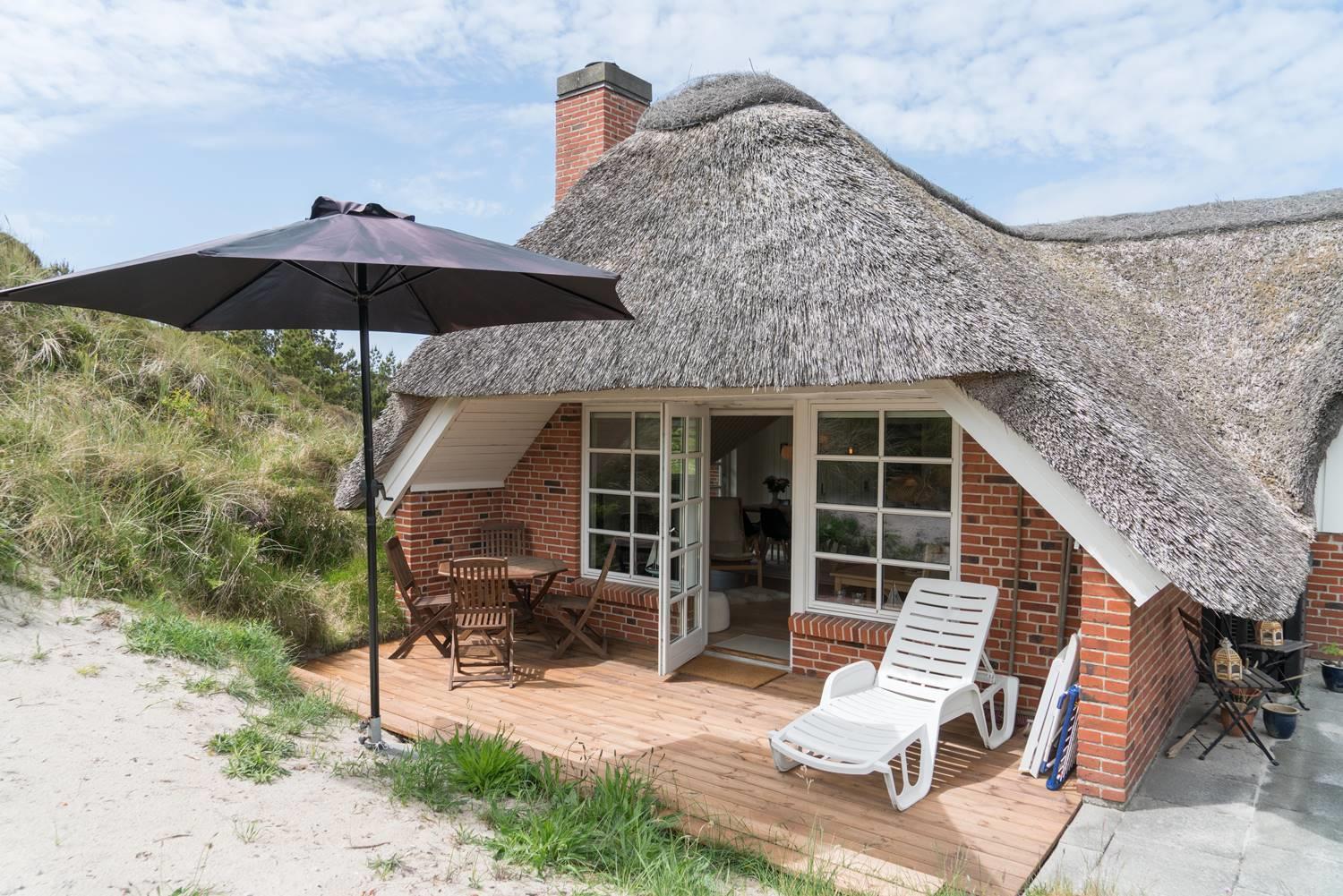 Dette charmerende og velholdte feriehus med stråtag er beliggende på Multebærvej 8 Henne Strand. Her kan du opleve ægte ferieidyl og nyde stilheden i smukke, naturlige omgivelser – langt væk fra hverdagens stress og jag.