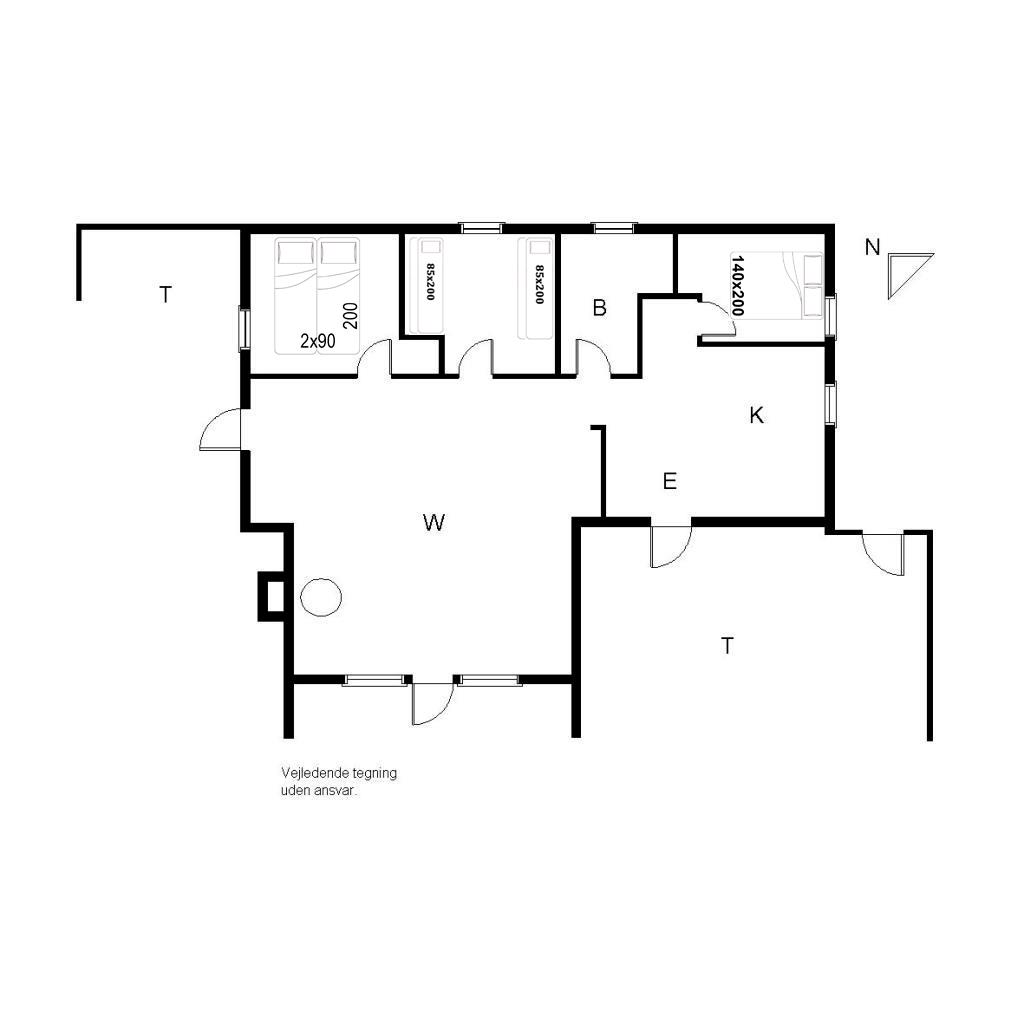 Sengestørrelse: 1 dobbeltseng med 2 madrasser 90 x 200 cm + 1 dobbeltseng 140 x 200 cm + 2 Køjesenge 85 x 200 cm2