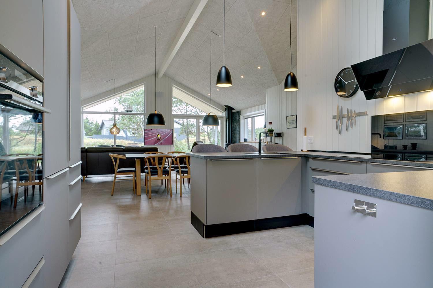 Dette aktivitetshus med udespa har alt hvad man skal bruge for at for at få en fantastisk ferie. Huset er nyopført og rummer aktiviteter og faciliteter, som hele familien vil se tilbage på med glæde. Agerhønevej 12 - Henne Strand byder på et stort, lyst og kombineret køkkenalrum og stue. Her kan hele familien hygge sig og nyde hinandens selskab, hvad enten det er over en hygge middag eller et spil. I dette pragtfulde aktivitetshus er der også tænkt på husets små gæster, så her er både rutchebane, gynge og trampolin.