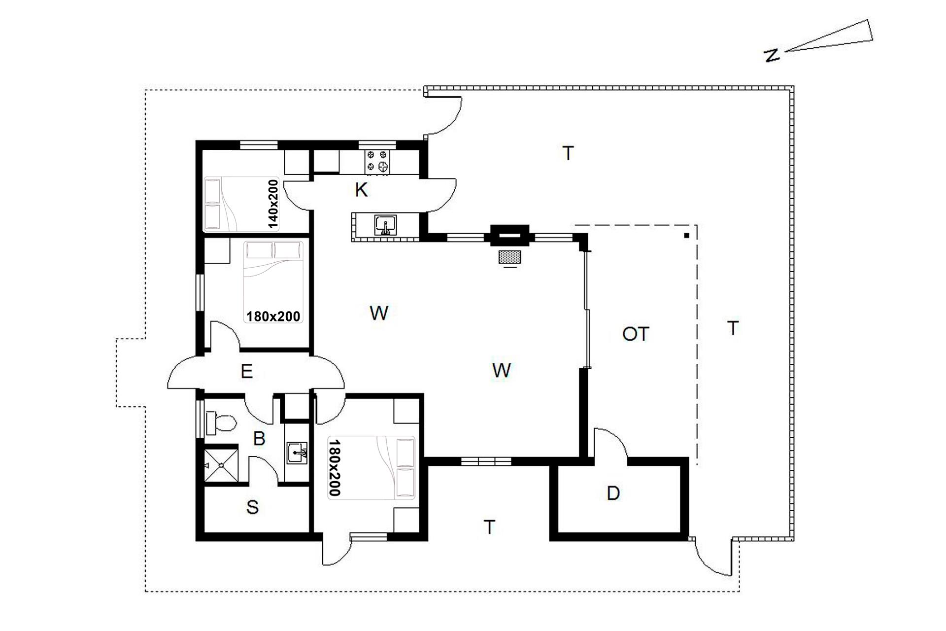 Sengestørrelse: 2 dobbeltsenge 180 x 200 cm + 1 Dobbeltseng 140 x 200 cm.