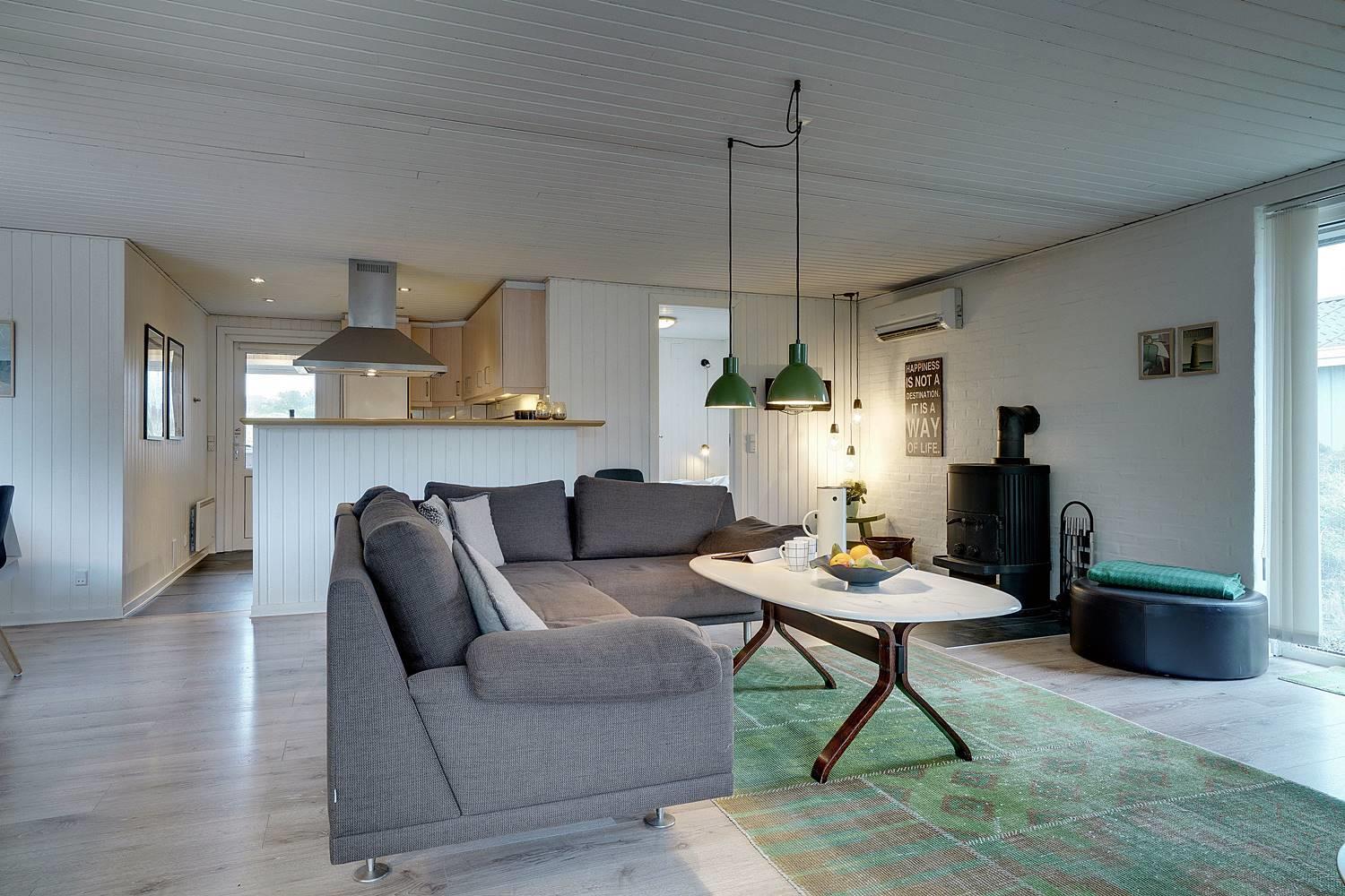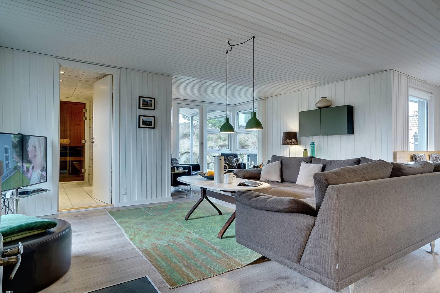 Fra den hyggelige og pænt møblerede stue er der udgang til den skønne terrasse, hvorfra solen og grillaftenen kan nydes i fulde drag.