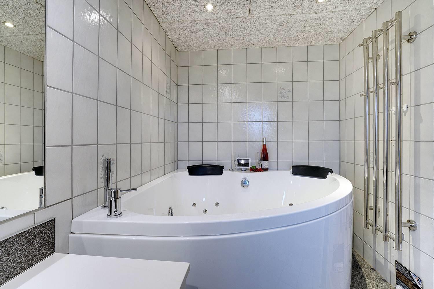Hjelmevej 148 har badeværelser med sauna, vaskemaskine og tørretumbler, samt ekstra badeværelse med spa.