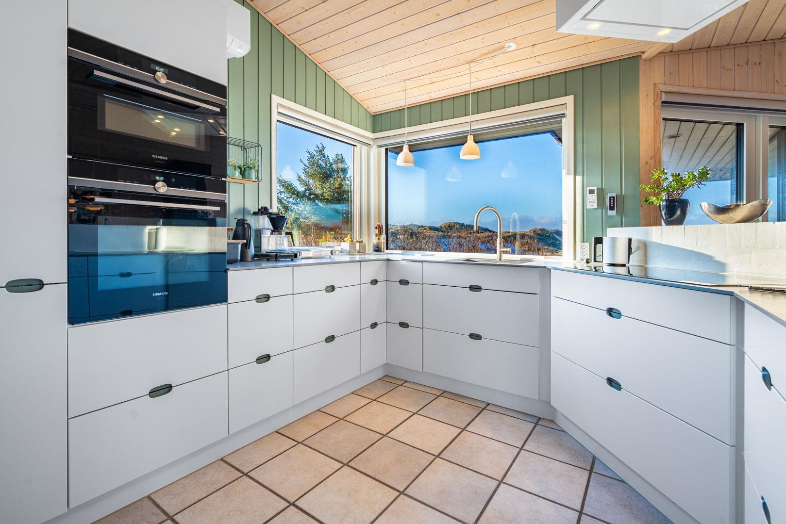 Feriehuset ligger helt fredeligt og velplaceret på en pragtfuld klitgrund, og det er opført med tanke på at optimere både lysindfald og udsigt. I kan derfor glæde jer til at nyde udsigten, mens I griller røde bøffer på terrassen, se frem til at følge med i vindens lette rusken i marehalmen, mens I drikker kaffe i pavillonen og ikke mindst håbe på regnvejr, så I kan lytte til dråberne, der trommer på ruderne i stuens kæmpestore vinduesparti.