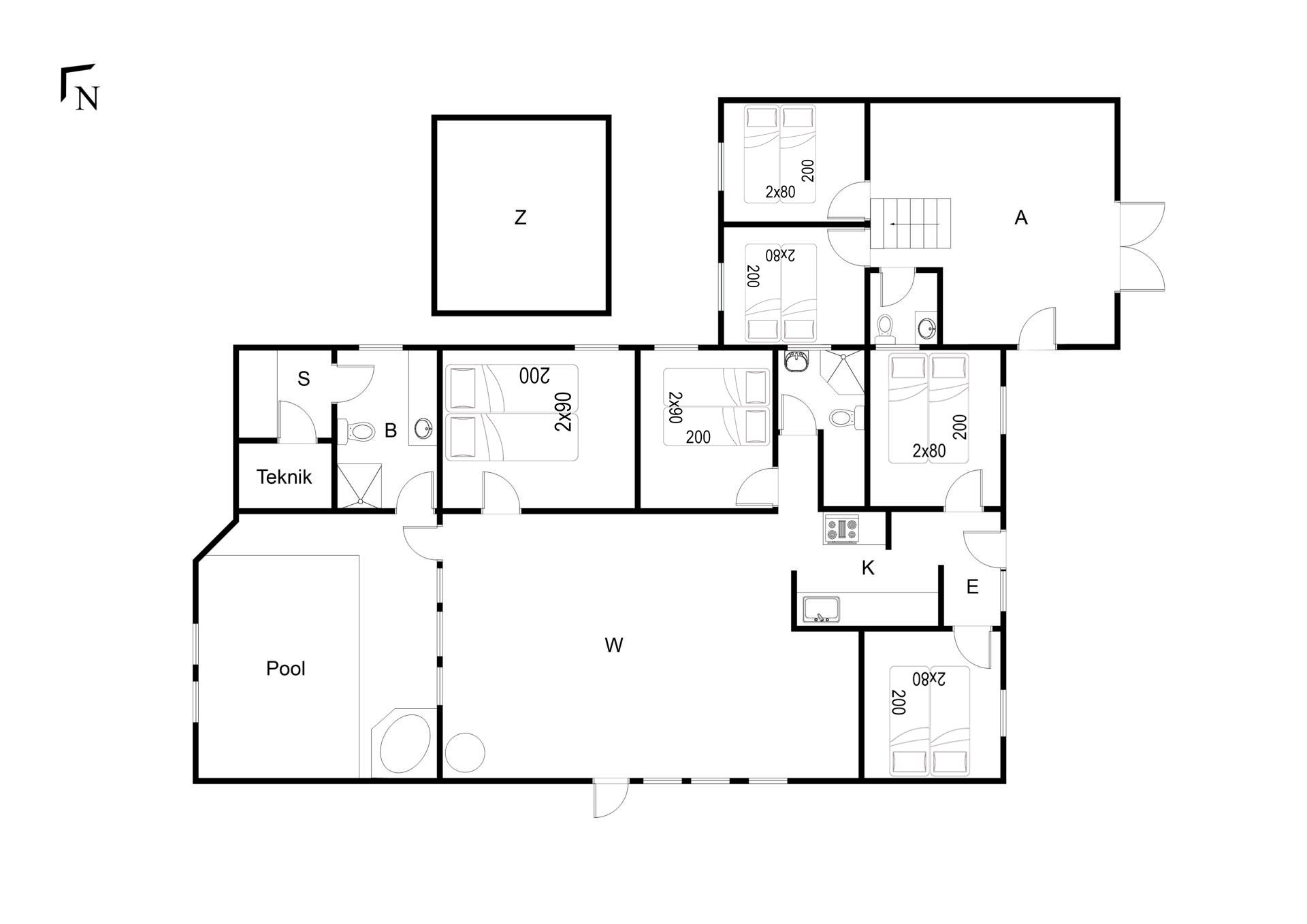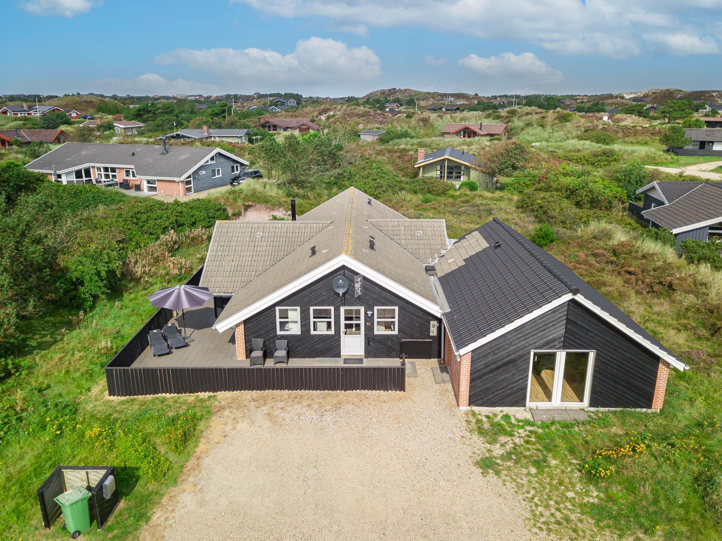 Stort og meget rummeligt aktivitetshus med pool afd. beliggende i gå afstand fra Vesterhavet samt Henne Strand by. Her er virkelig tale om dejligt feriehus til 2 familier. Der er tilbygget stort aktivitetsrum med pollbord samt bordtennis. Feriehuset har en stor køkken/alrum med alt i hårde hvidevarer og herfra er der bla. adgang til huset dejlige pool område samt sauna. Der er også adgang til større ugenert lukket delvis overdækket terrasse hvor der kan hygget ved husets grill. Feriehuset er beliggende ved grusbelagt vej, så der er minimal af trafik. Husk vandreskoene eller cyklerne, da der er mange gode naturstier i området og ikke mindst i Blåbjerg Plantage.