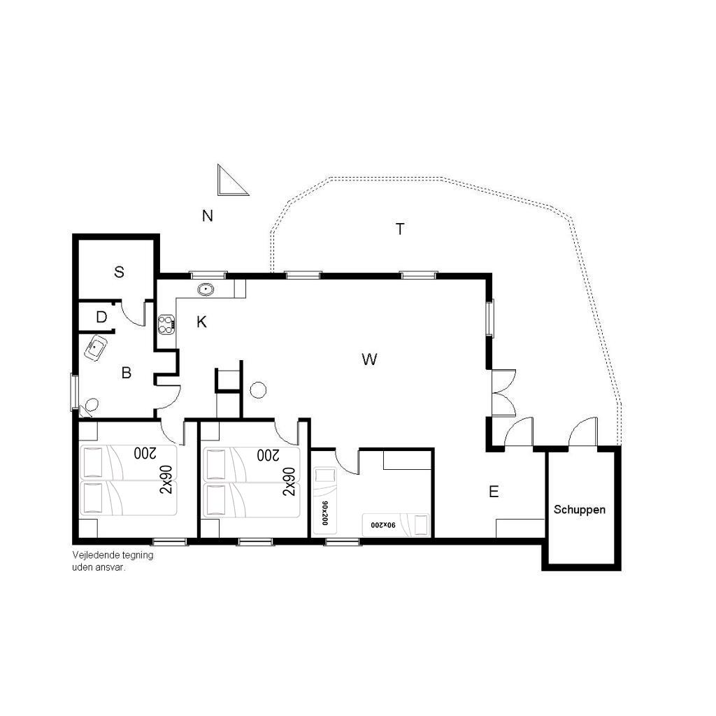 Et rigtig godt muret feriehus, beliggende på en lyngklædt grund grænsende op til stort friareal. Entre med god plads til overtøj m.v. og herfra adgang til stue med moderne og gode møbler. Hele huset har trægulve og fremstår overalt lyst og venligt. Terrasse på 2 sider af huset mod syd og vest.