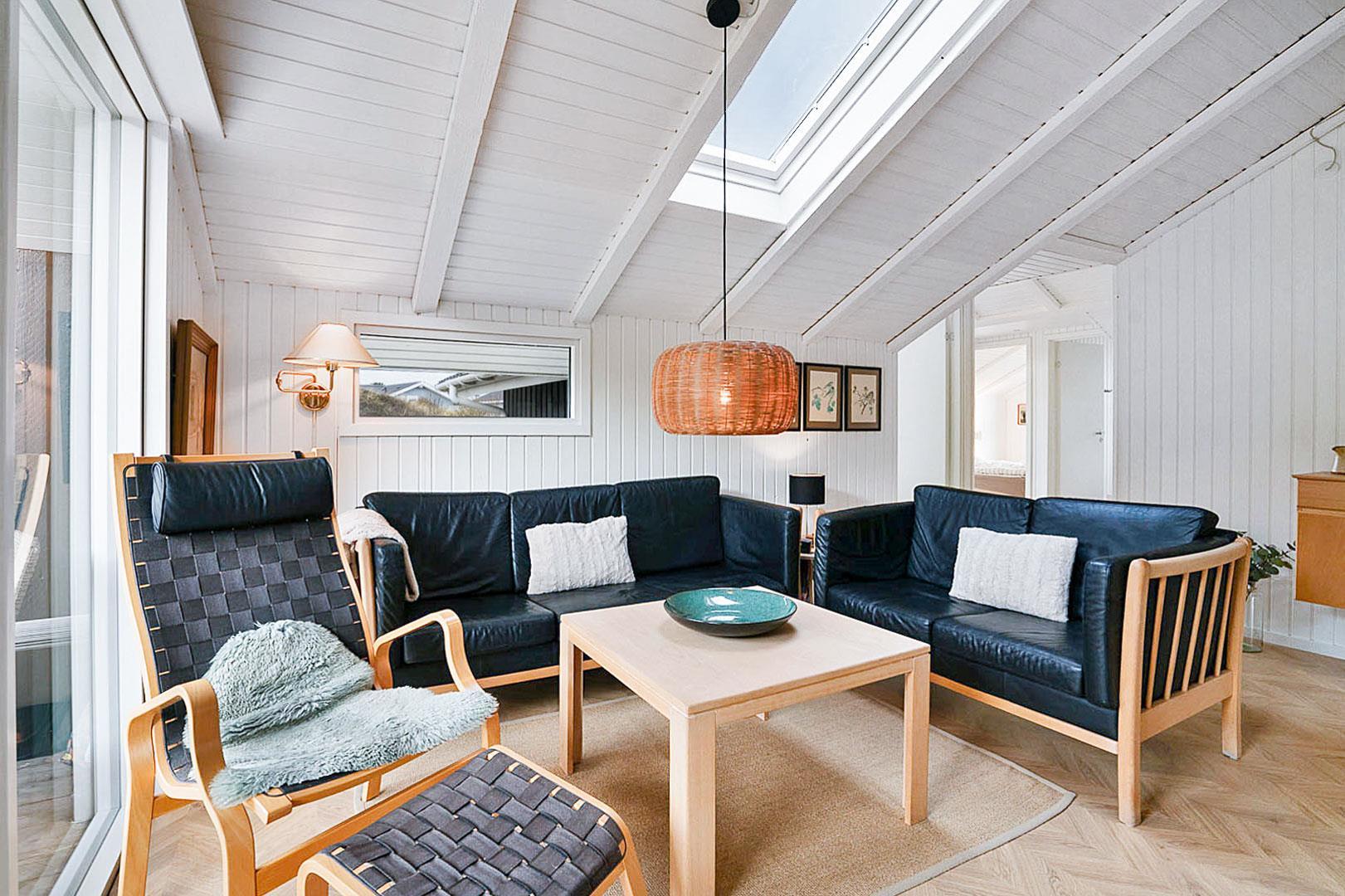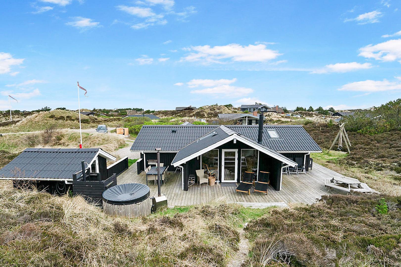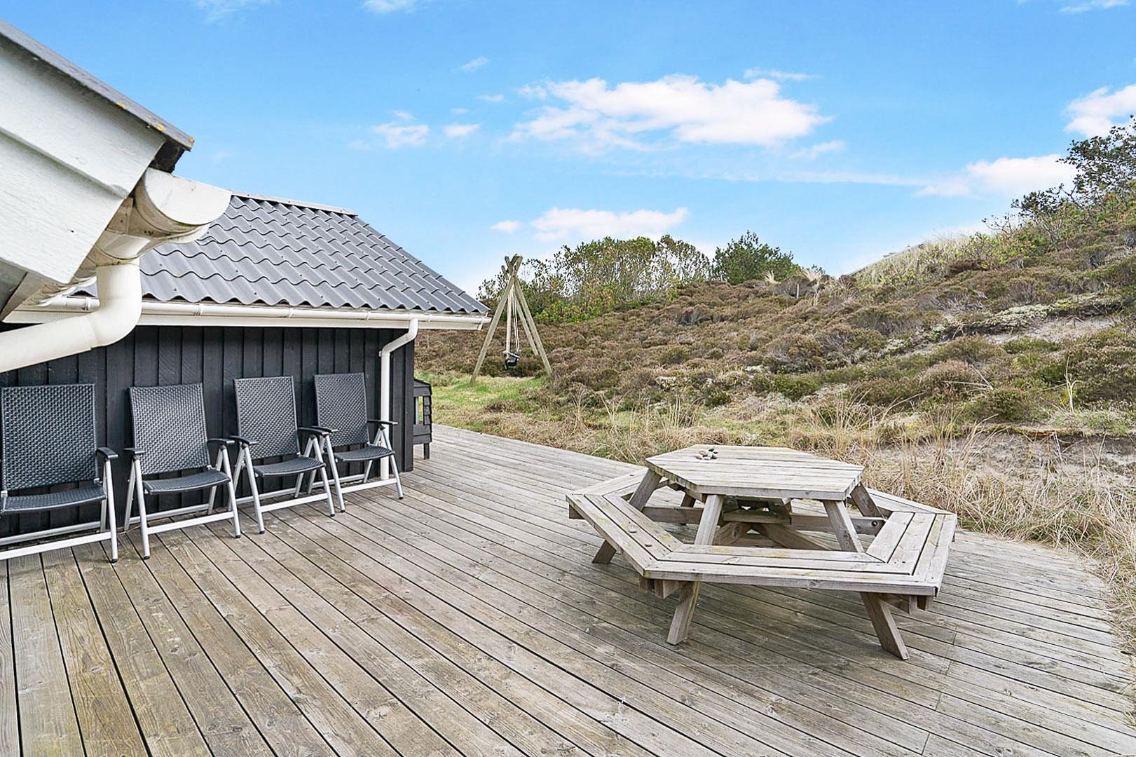 Dette dejlige sommerhus i Henne Strand er en sand perle, placeret for enden af en blind vej og omgivet af lyng, marehalm og klitter, hvilket skaber den perfekte ramme for en afslappende ferieoplevelse.