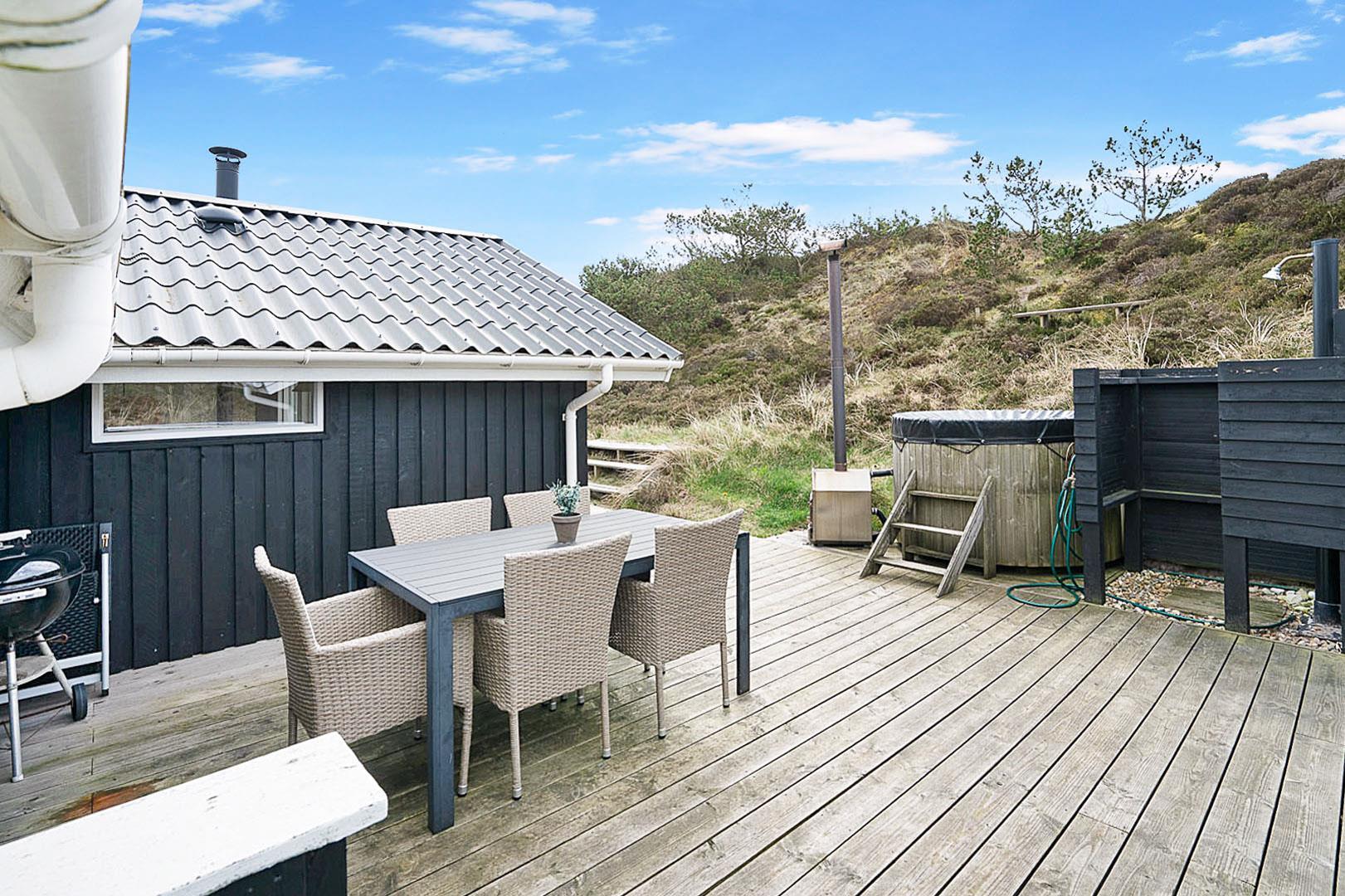 Udenfor kan du nyde den store dejlige træterrasse omkring