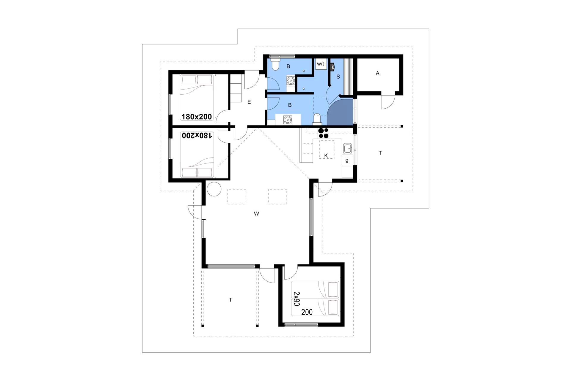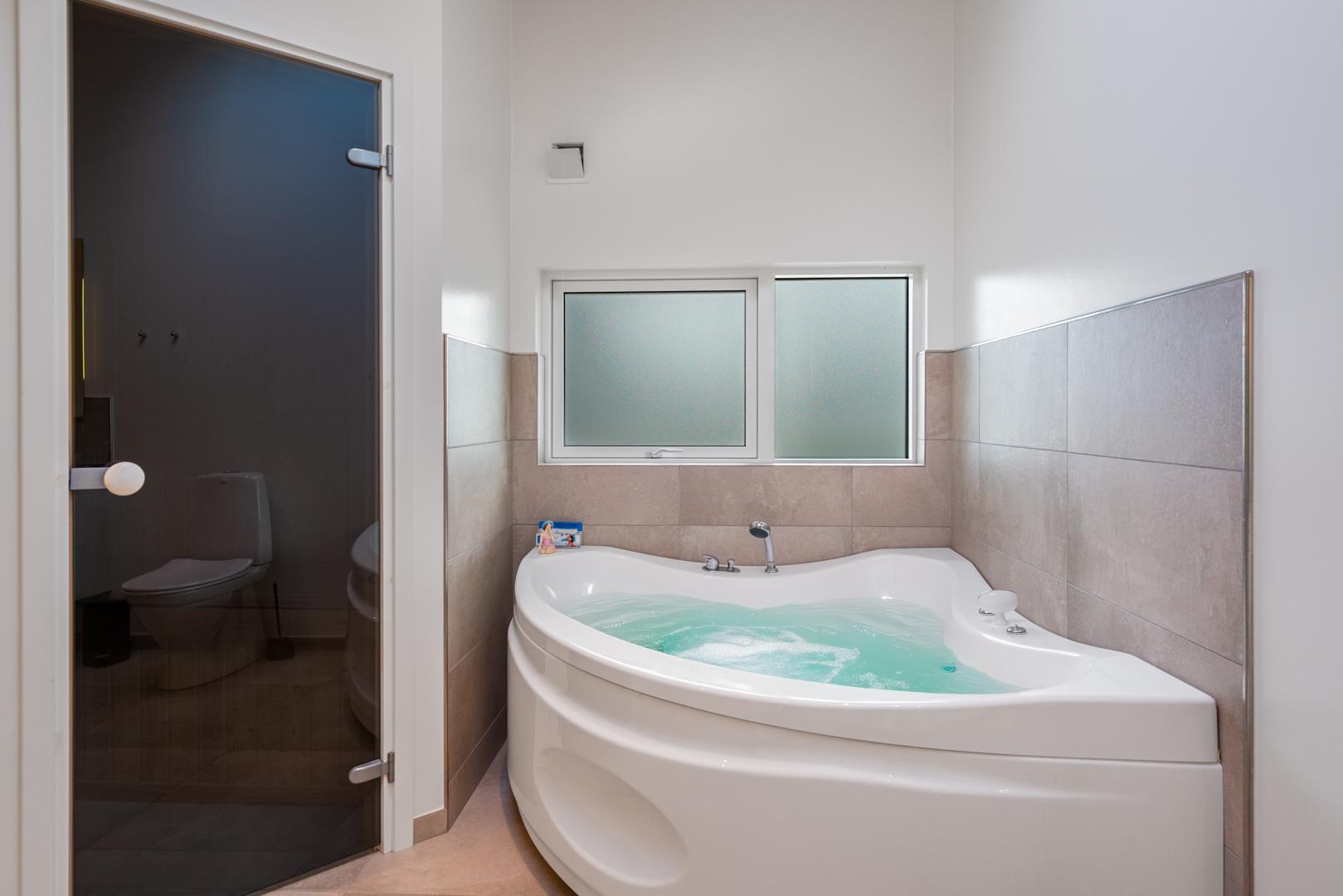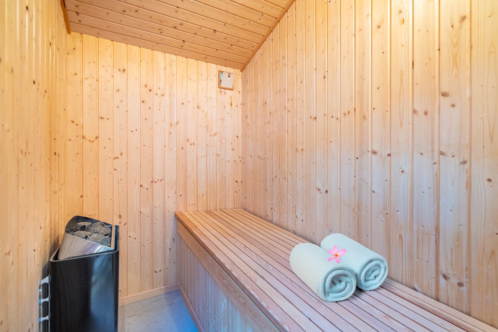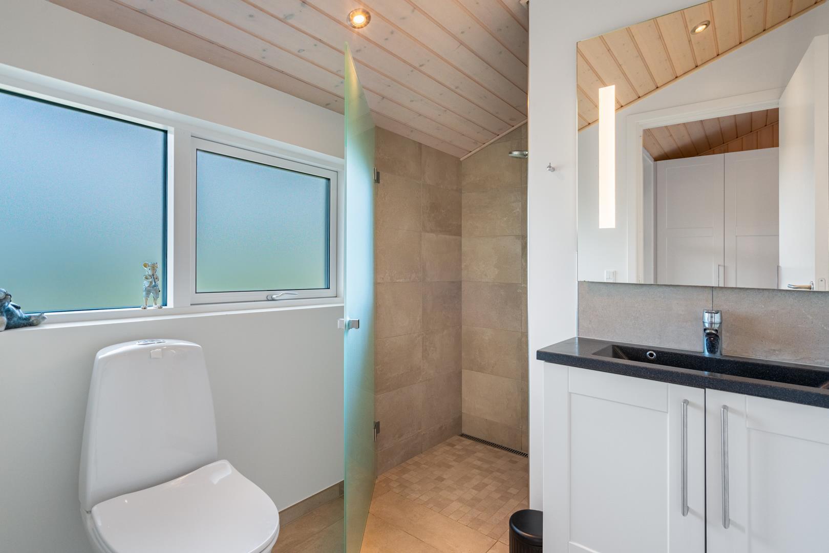 Dette flotte og moderne sommerhus fra 2018 byder på lyst og venligt interiør med åbent køkken og en stor stue med brændeovn. Huset har tre gode soveværelser og to badeværelser, hvor det ene er udstyret med både sauna og spa for ekstra velvære.