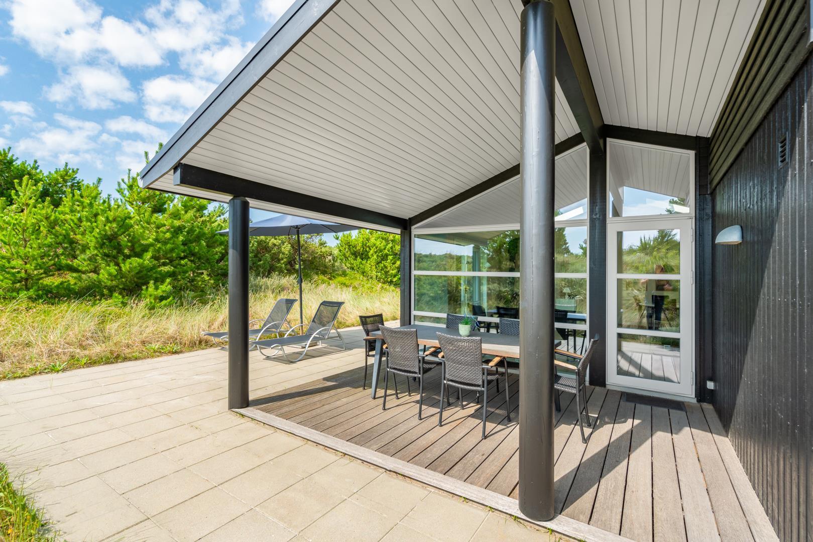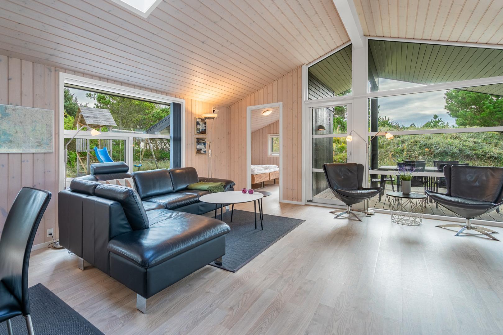 Moderne sommerhus nær Vesterhavet med sauna, spa og store terrasser i Henne Strand.