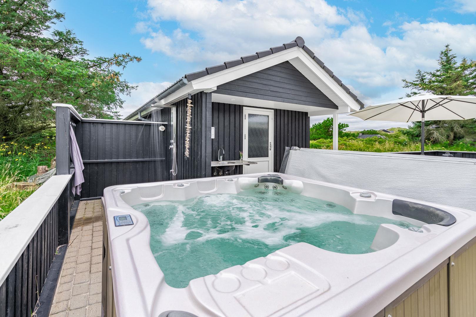 Sommerhuset er fuldt udstyret med både indendørs og udendørs spa samt sauna, så du kan forkæle dig selv og dine nærmeste med total afslapning og velvære i dette lækre sommerhus. Dette skønne sommerhus er det ideelle valg til en uforglemmelig ferieoplevelse for hele familien i Henne Strand.