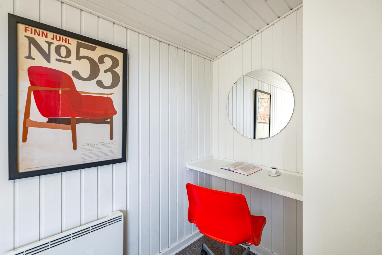 På en pragtfuld grund i roligt område tæt ved vandet og Henne Strand centrum, ligger dette meget vedligeholdte feriehus. Fremhæves skal 2 badeværelser med bruser, hvoraf den ene råder over en lille Infrarød sauna. Køkkenet ligger i åben forbindelse med den hyggelige stue og spisestuen med klinker og gulvvarme, hvorfra udsigten kan nydes. Flere dejlige og ugenerede terrasse, den ene er omgivet af plankeværk, så er velegnet til familien med børn eller hund. Et lyst og dejligt feriehus hvor rammerne er skabt for en god ferie ved Vesterhavet.
