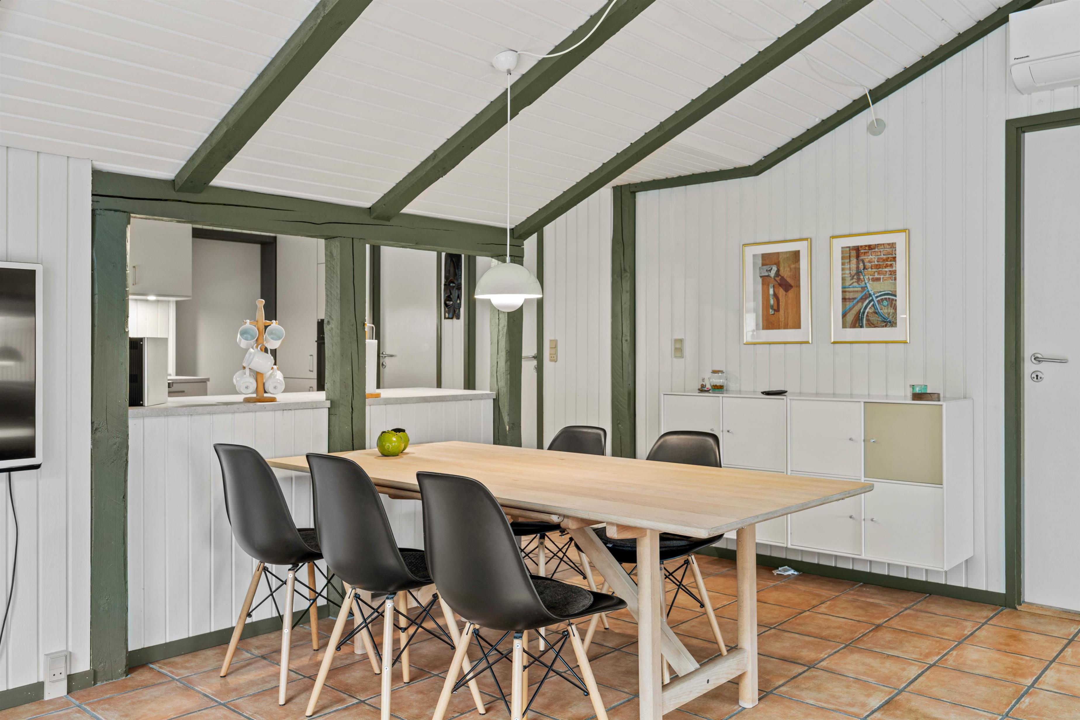 Sommerhuset, som har gennemgået en renovering i 2024, rummer 110 lyse og funktionelle kvadratmeter, hvor der er skabt en fin balance mellem moderne bekvemmeligheder og afslappet feriestemning. I opholdsrummet kan I nyde tiden sammen i sofaen, finde jer til rette med en god bog eller spille et brætspil i rolige omgivelser.