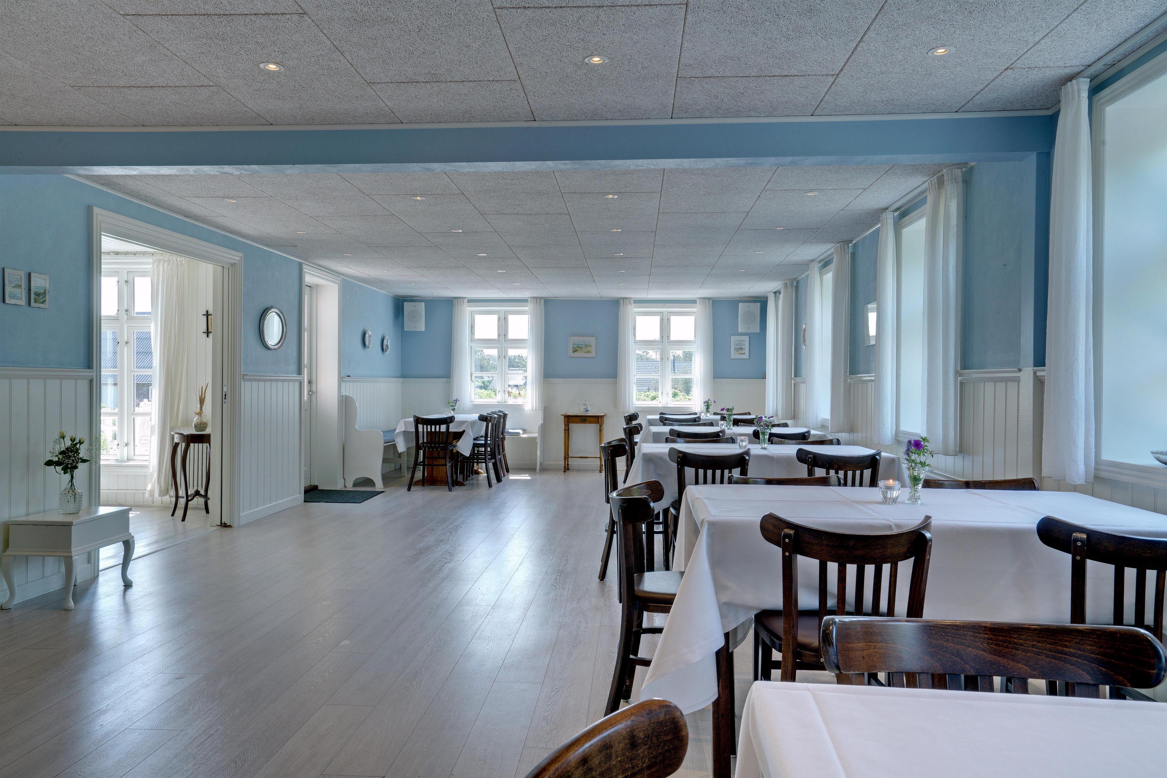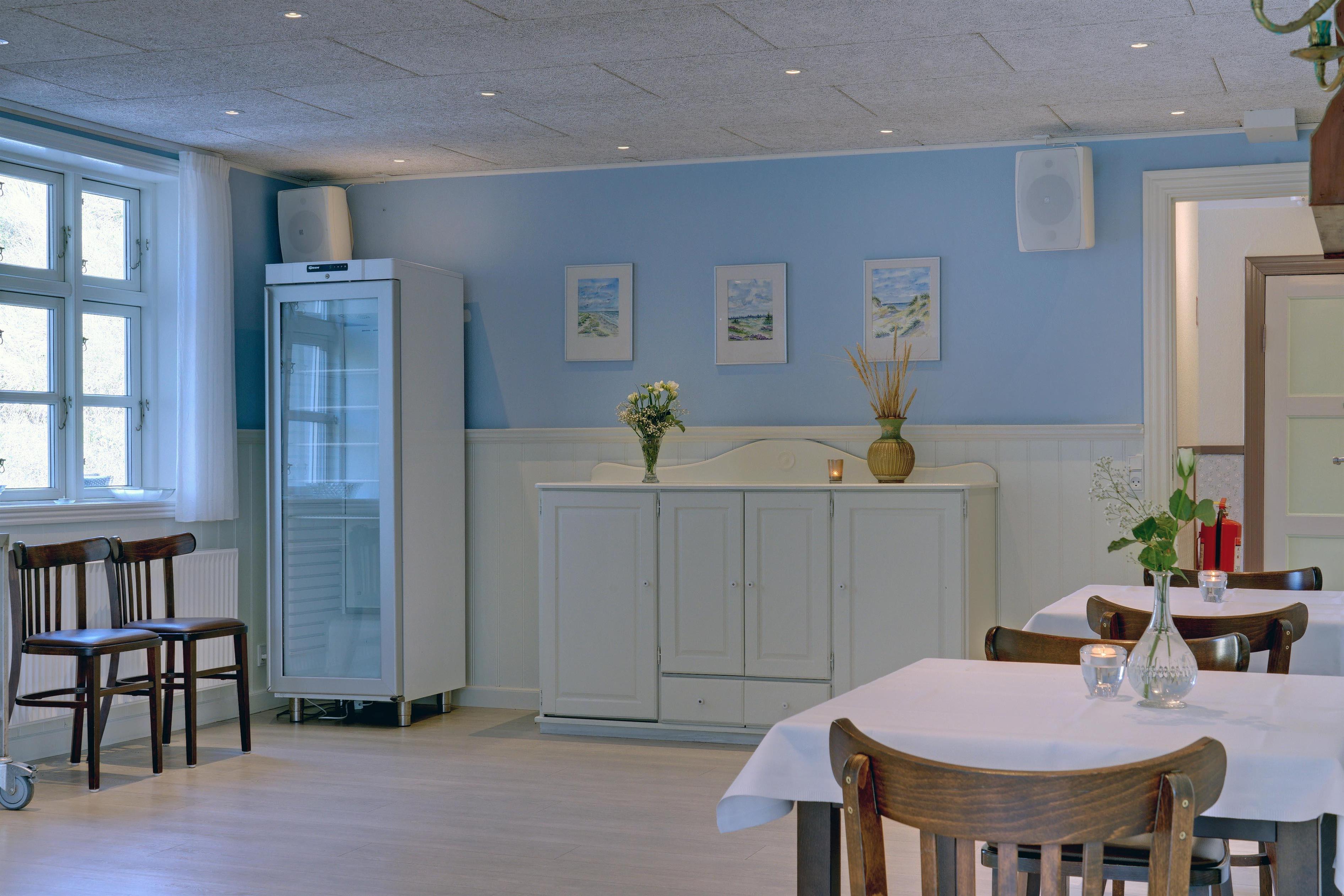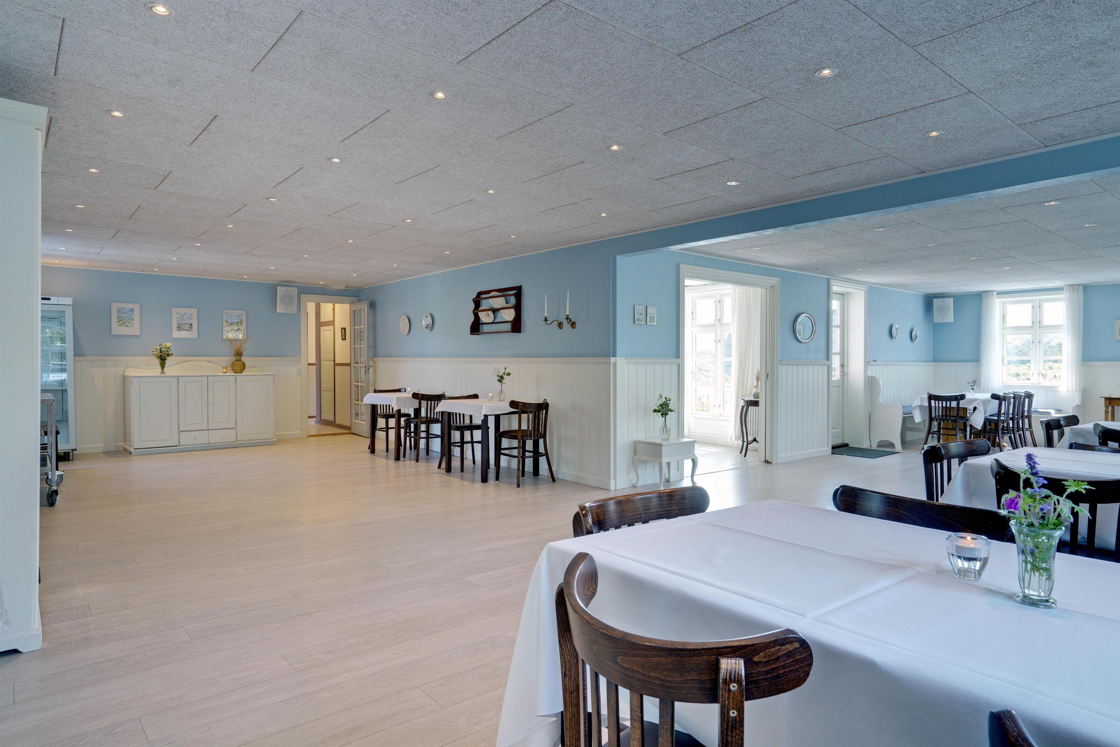Huset indeholder stor nyrenoveret fælles spisestue på 90 m2 med tilhørende industrikøkken. I umiddelbar tilknytning til spisestuen findes en lille nostalgisk Whisky stue, hvor tiden står stille, og hvor der er rig mulighed for at nyde en aftendrink i selskab med familie, venner eller en god bog foran brændeovnen.