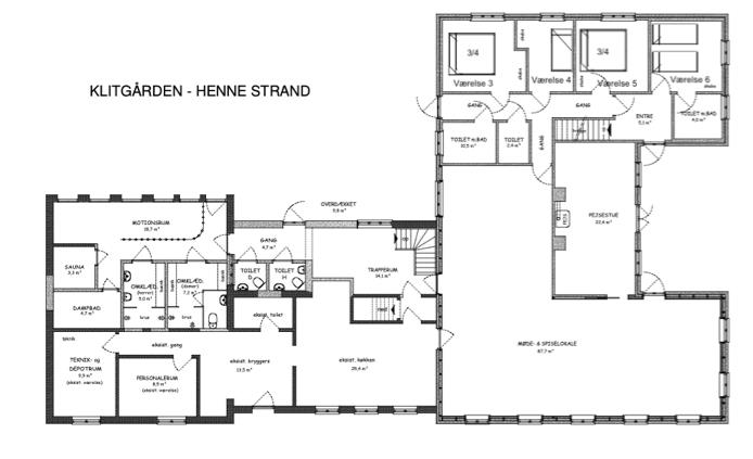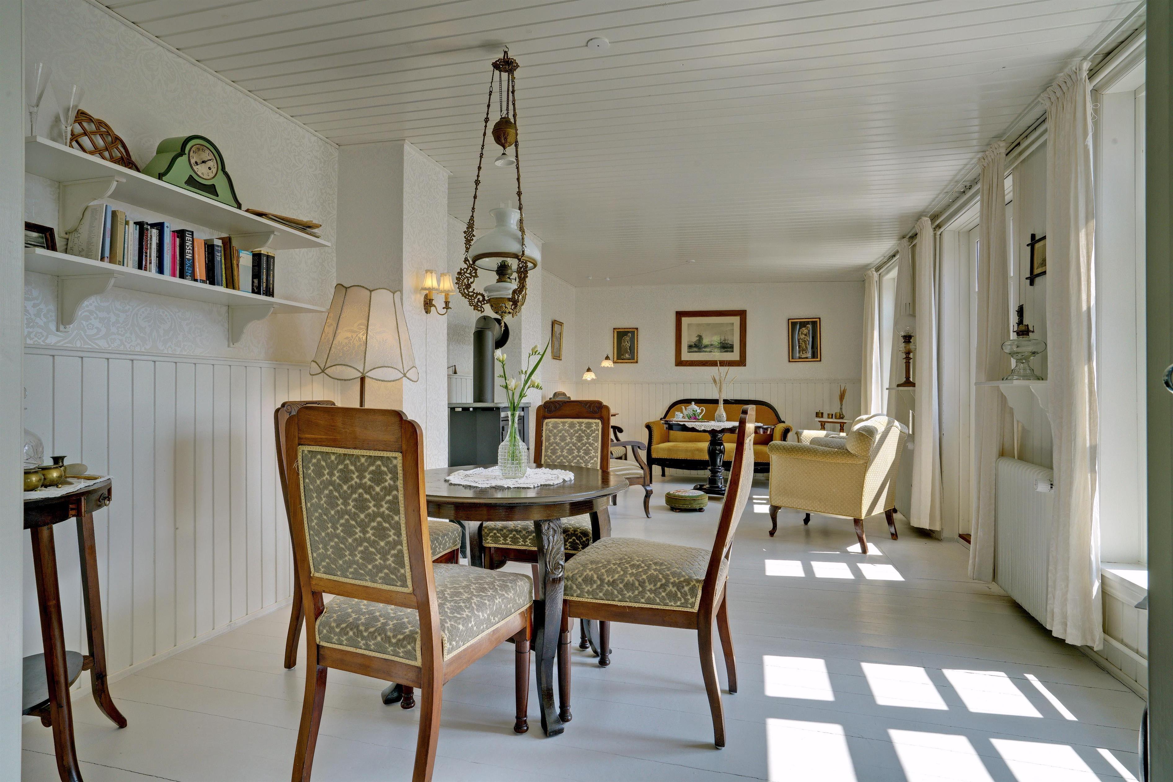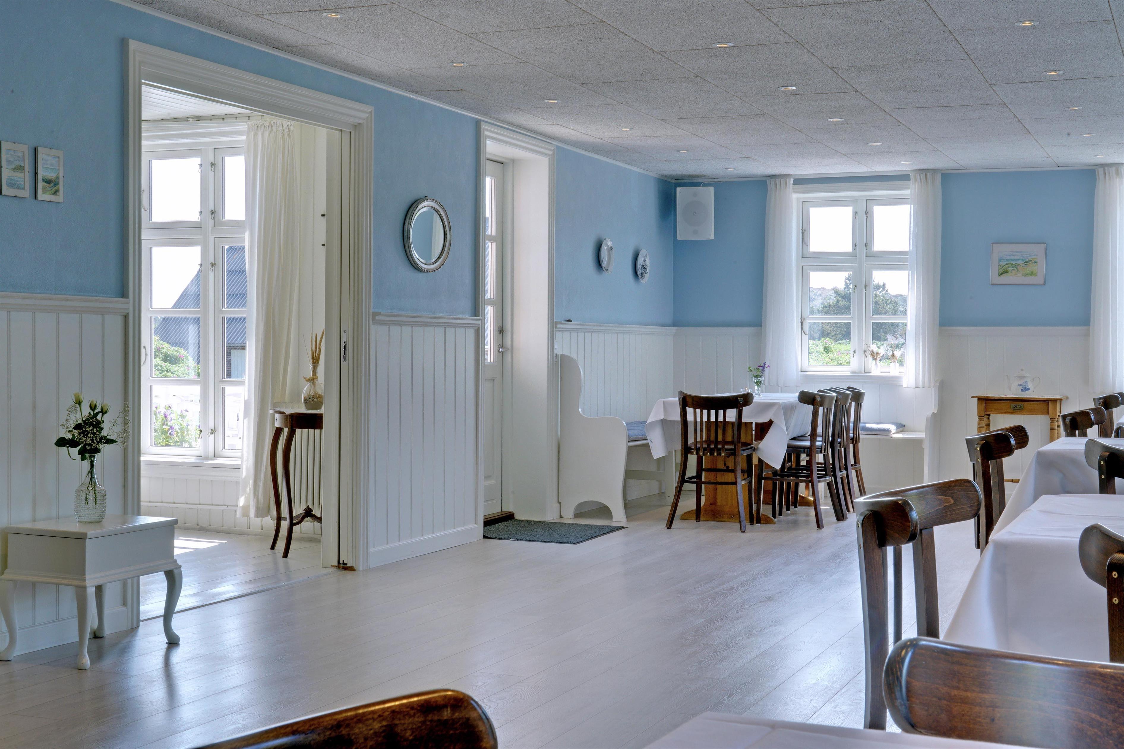 Huset indeholder stor nyrenoveret fælles spisestue på 90 m2 med tilhørende industrikøkken. I umiddelbar tilknytning til spisestuen findes en lille nostalgisk Whisky stue, hvor tiden står stille, og hvor der er rig mulighed for at nyde en aftendrink i selskab med familie, venner eller en god bog foran brændeovnen.
