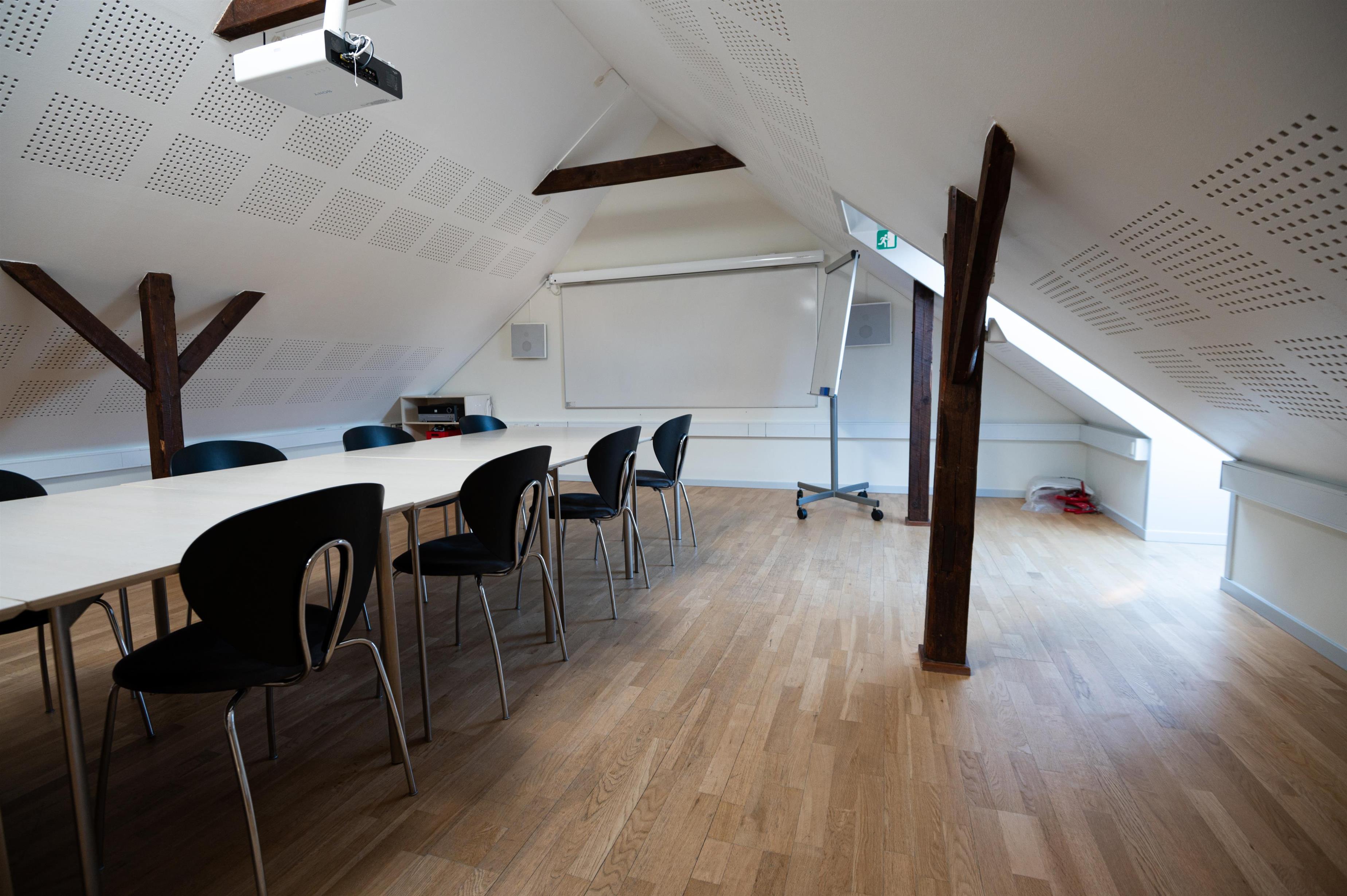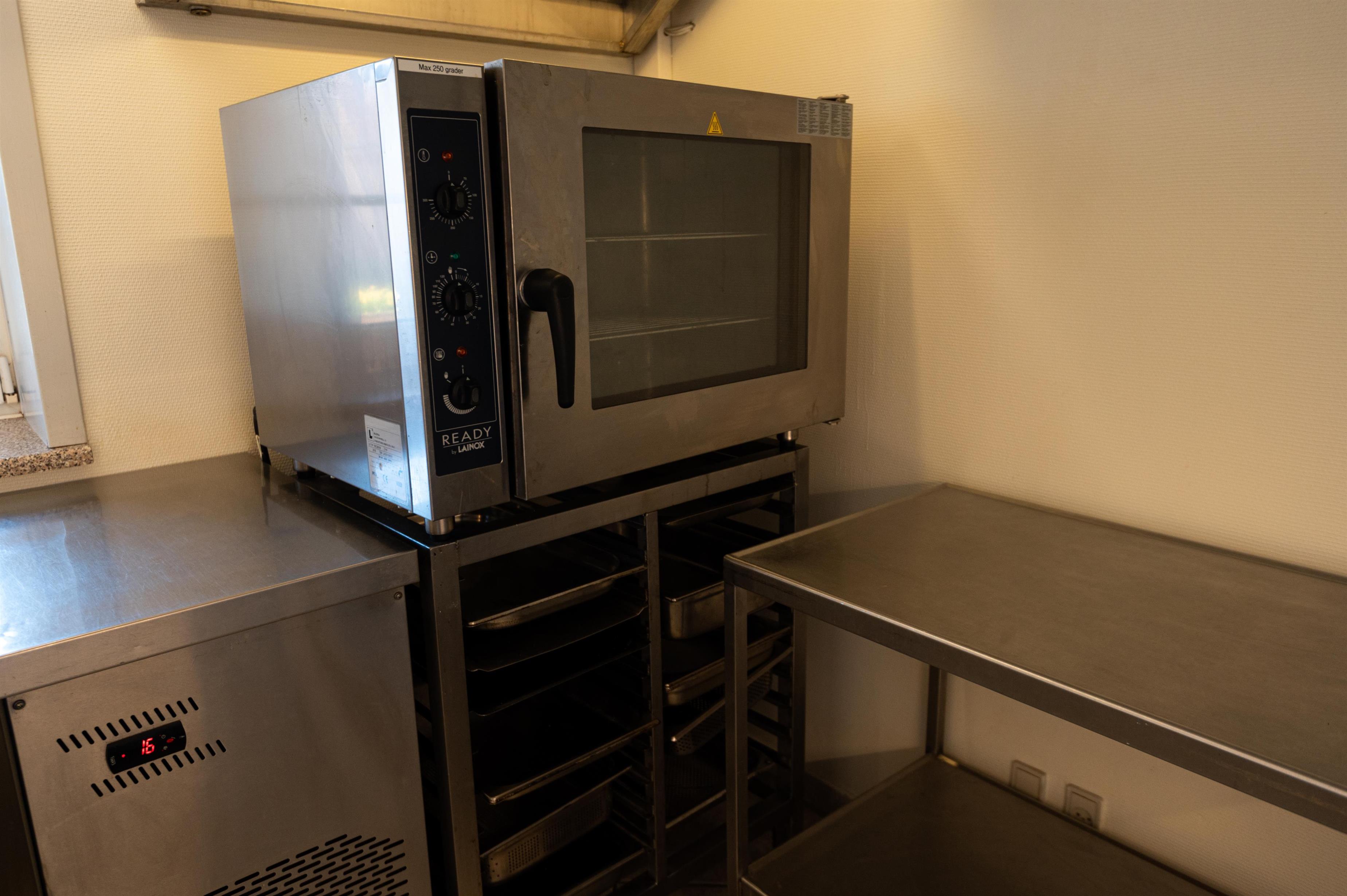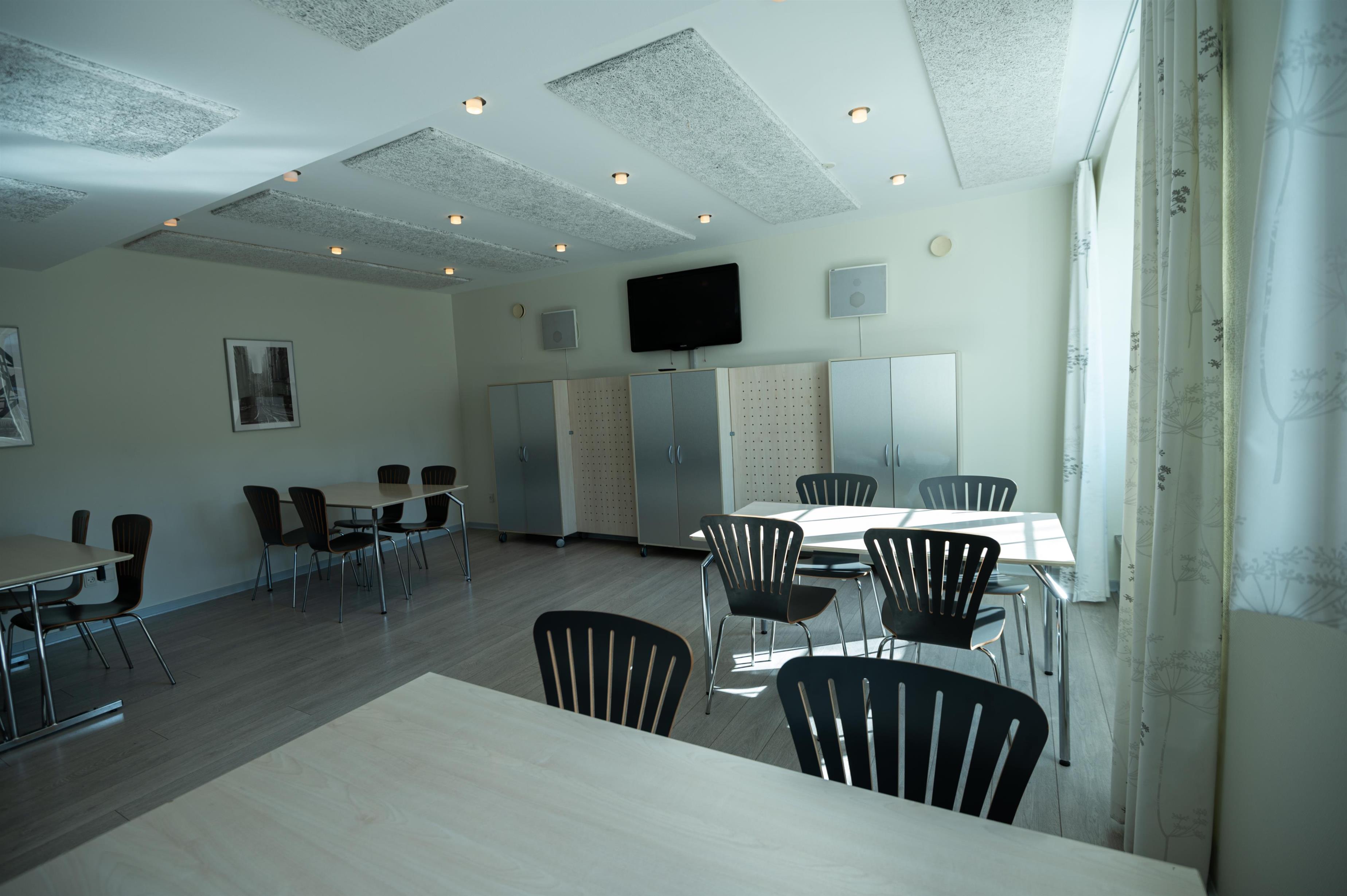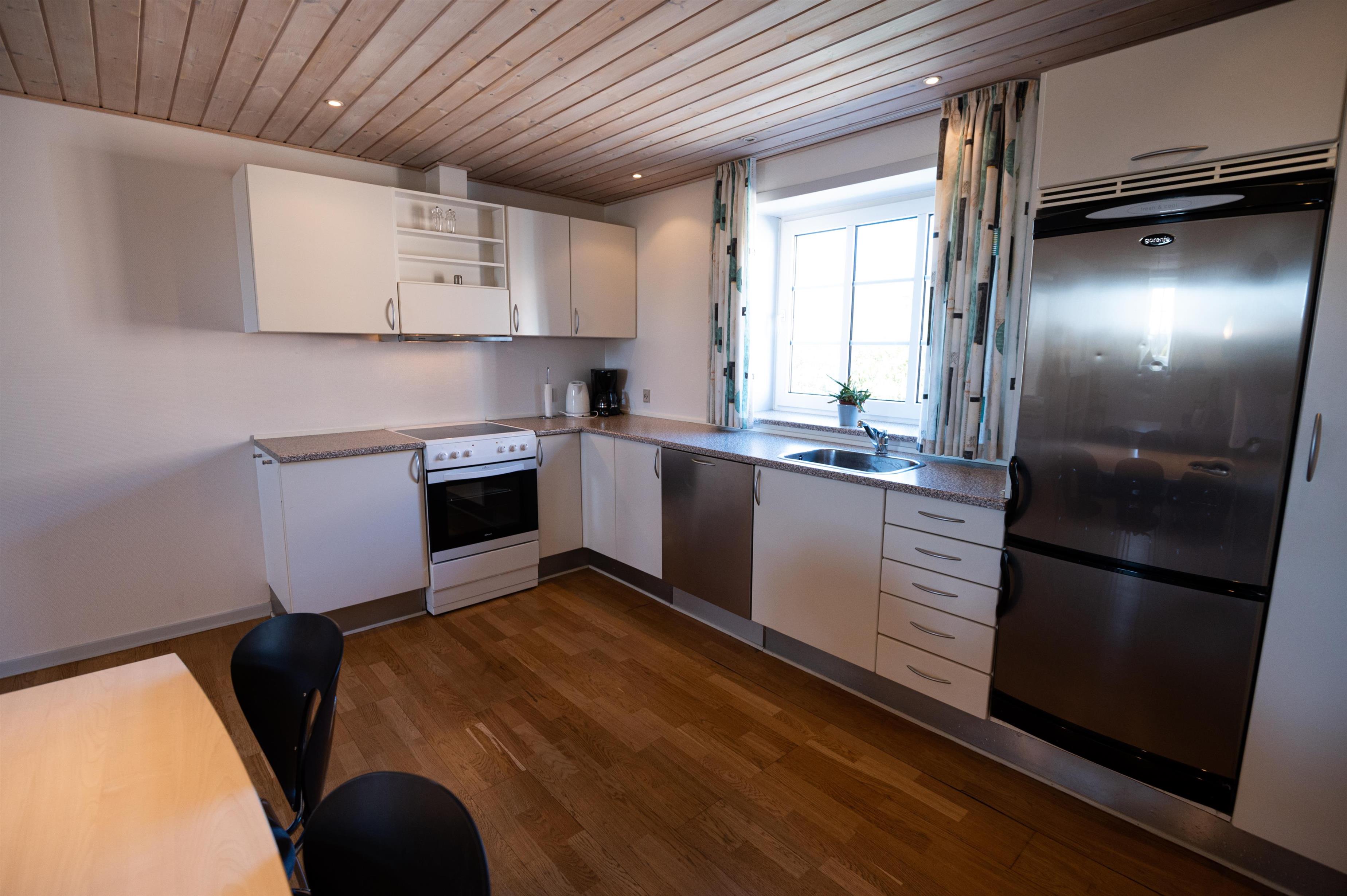 Hovedhuset indeholder et aktivitetsrum med pool, bordfodbold, dart og X-box spillemaskine, en spisestue med tilhørende industrikøkken med service til 60 personer, industriopvaskemaskine, stegeovn og alt til madlavning I køkkenet er der en madelevator op til 1 salen hvor opholdsstue, værelsesfløj og konference lokalet findes.