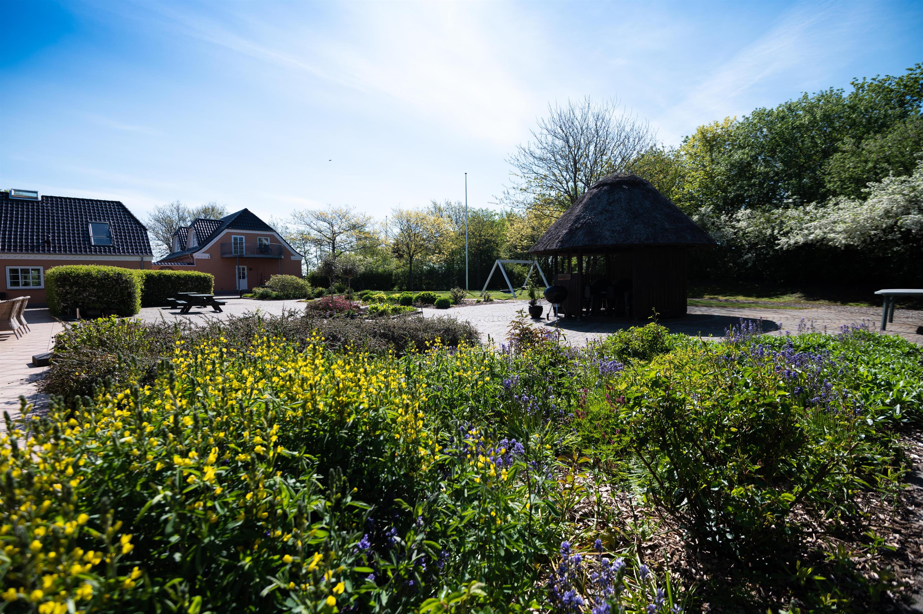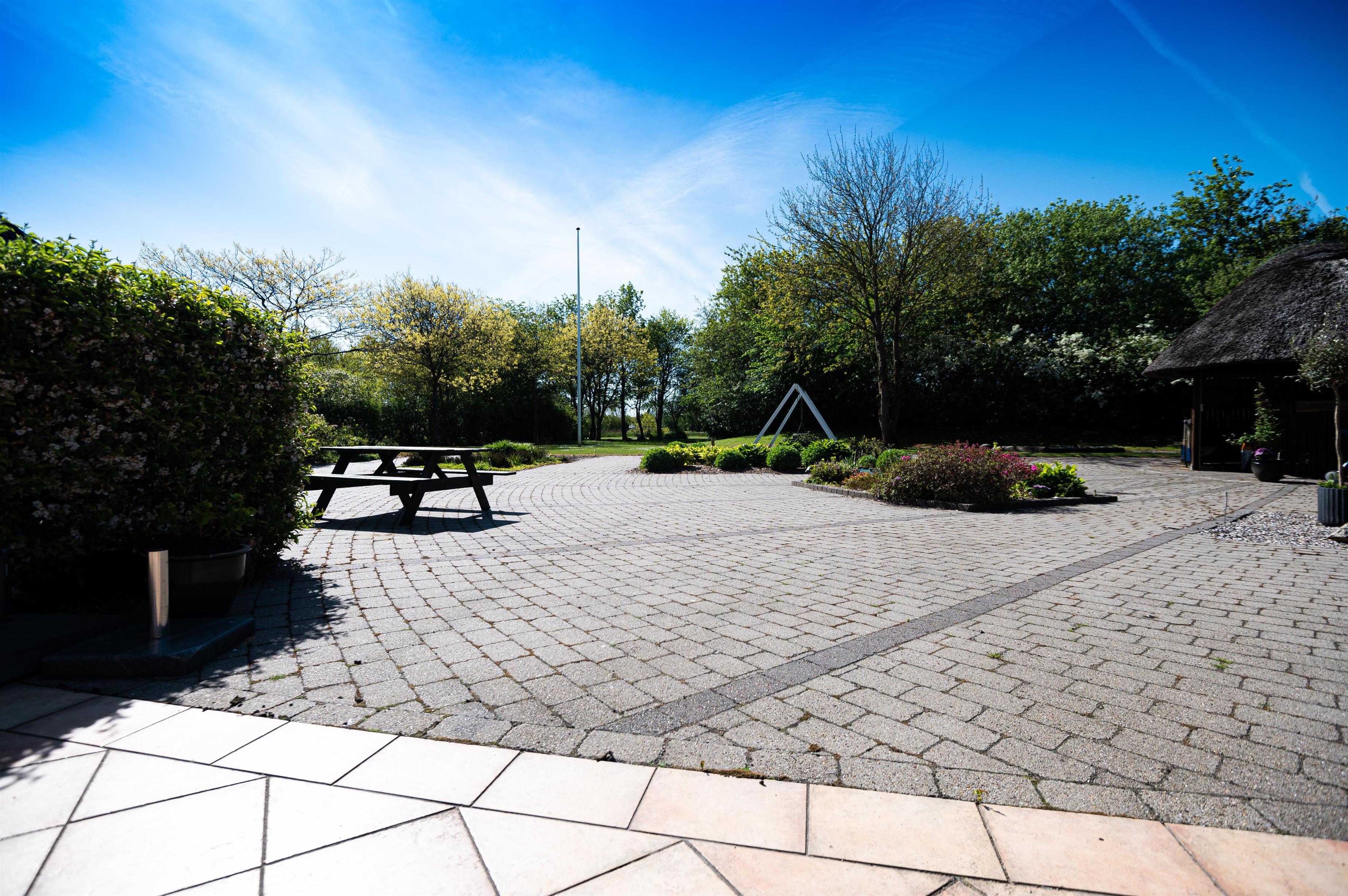 På de store udenoms arealer er der anlagt en multibane, hvor der kan dystes mod hinanden i fodbold, badminton, hockey, osv. I den 1 tønde land store have findes en lille sø, Beach Volley og hoppepude. I umiddelbar tilknytning til haven er der mulighed for en god naturoplevelse med en gå, eller løbetur i Axelgaards 6 ha. store private skov. Den dejlige solfyldte terrasse indbyder til solbadning og grillaftener ved den store grillhytte.