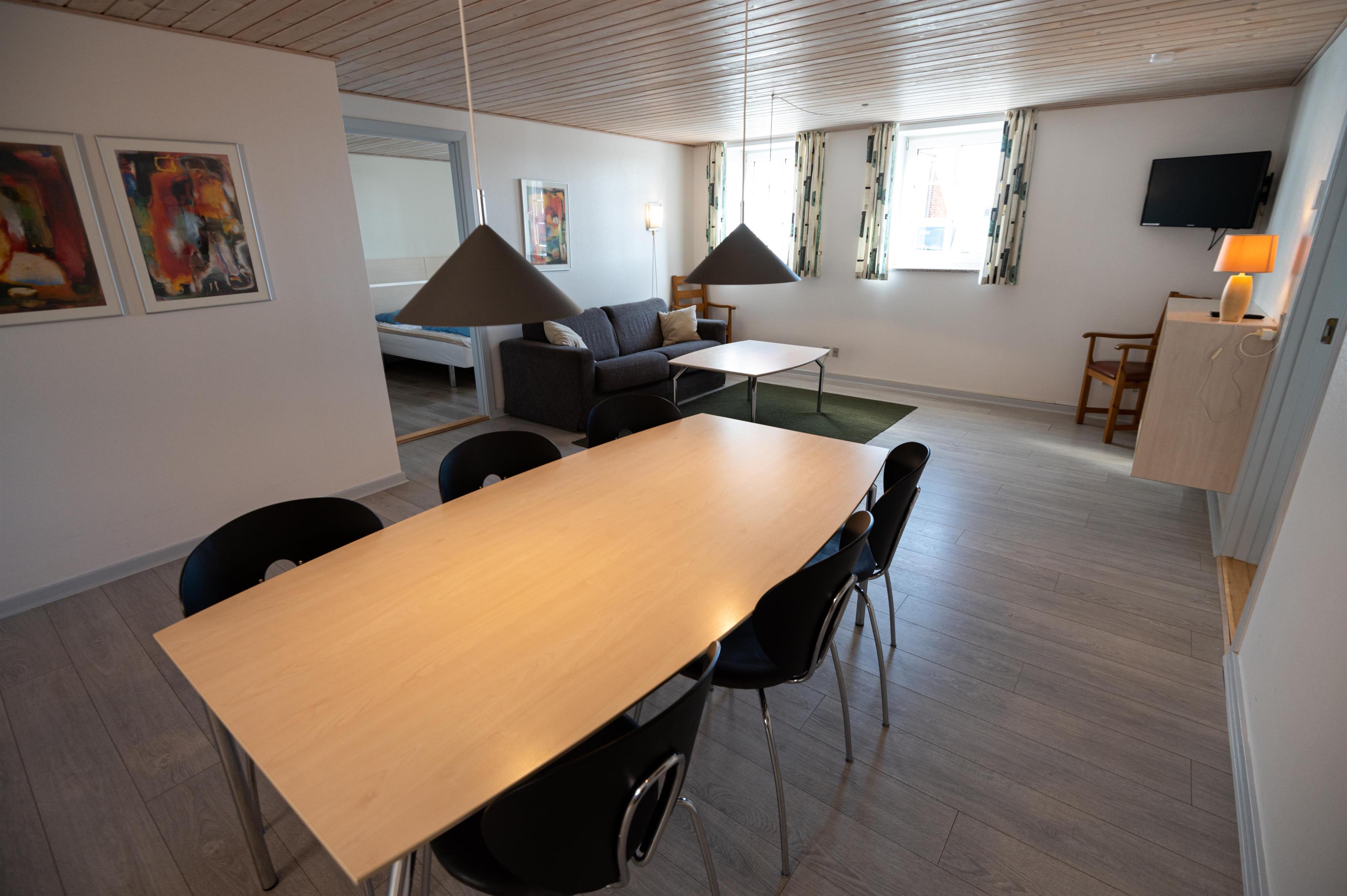 I Axelgaard til 34 personer er der 14 soverum. I værelsesfløjen på 1. sal forefindes 10 soverum, der alle er udstyret med bad og TV, i hver af de 2 lejligheder A-B er der ligeledes eget bad, TV og køkken.