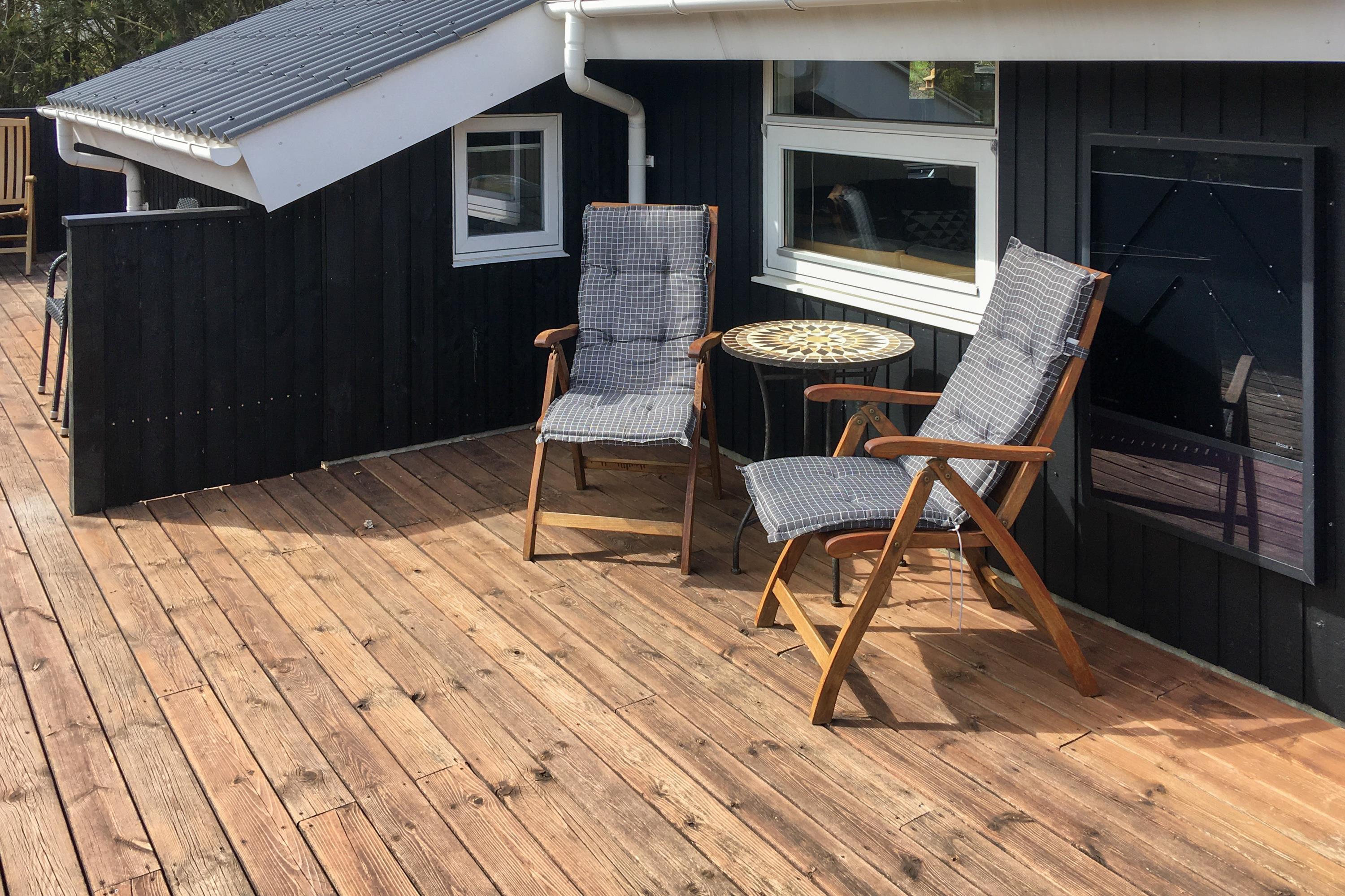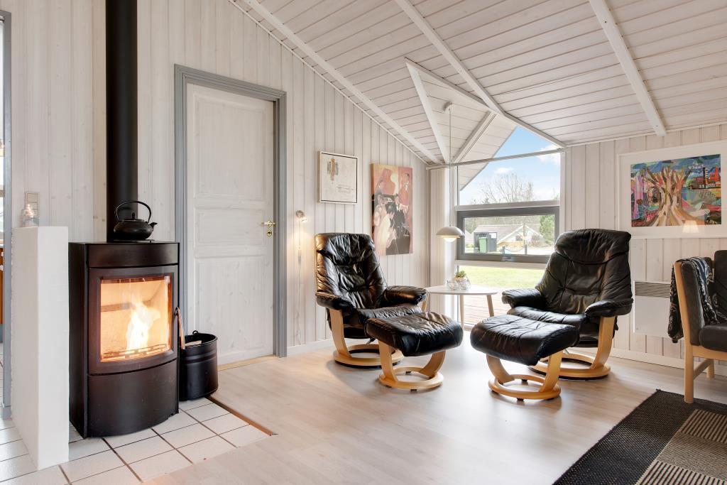 Med de store vinduespartier i stuen, lukkes lys og natur ind. Herfra er der adgang til den delvist overdækkede og læfyldte træterrasse, som kan lukkes af. Uanset vindretning vil man altid kunne finde et hyggeligt hjørne med læ på denne lækre terrasse. Den overdækkede del af terrassen byder også på en terrassevarmer, så man kan holde sig varm selv på en af de mere kølige aftener. Det nye moderne køkken (2019) indbyder til fælles madlavning og med husets sauna er det også muligt for jer at nyde afstressende wellness under jeres ophold. Med et godt internet og cromecast er der også hyggegaranti på regnvejrsdage.