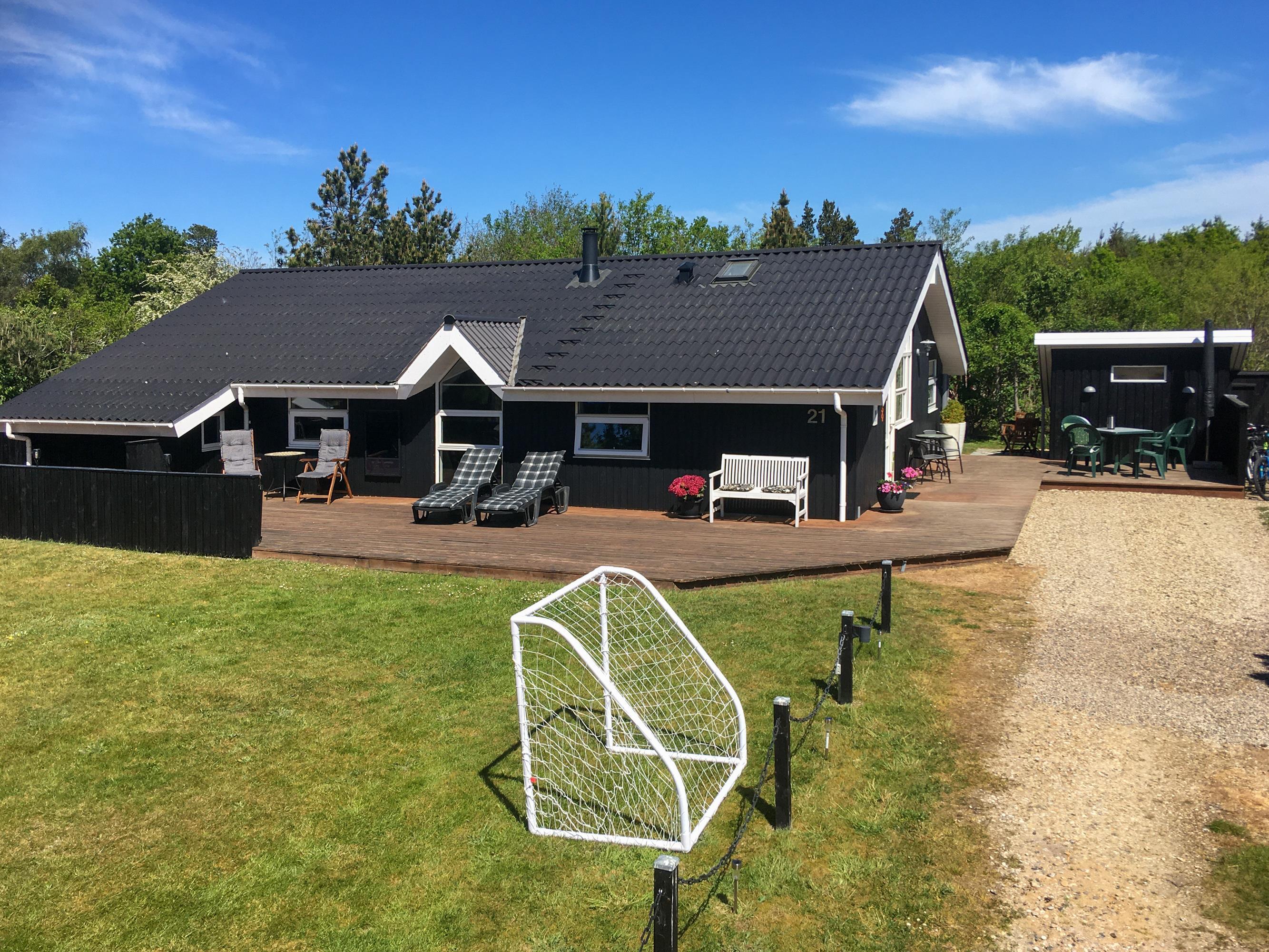 Dette sommerhus rummer mange muligheder for udendørs aktiviteter for både store og små. Trampolinen er altid et stort hit for børnene. Med trampolinens placering på grunden, kan forældrene sidde på terrassen og nyde både duften af grantræer samt se og høre deres børns begejstrede leg. Grunden byder desuden på gynger og sandkasse. Bålpladsen på grunden lægger op råhygge og måske endda med snobrødsbagning.