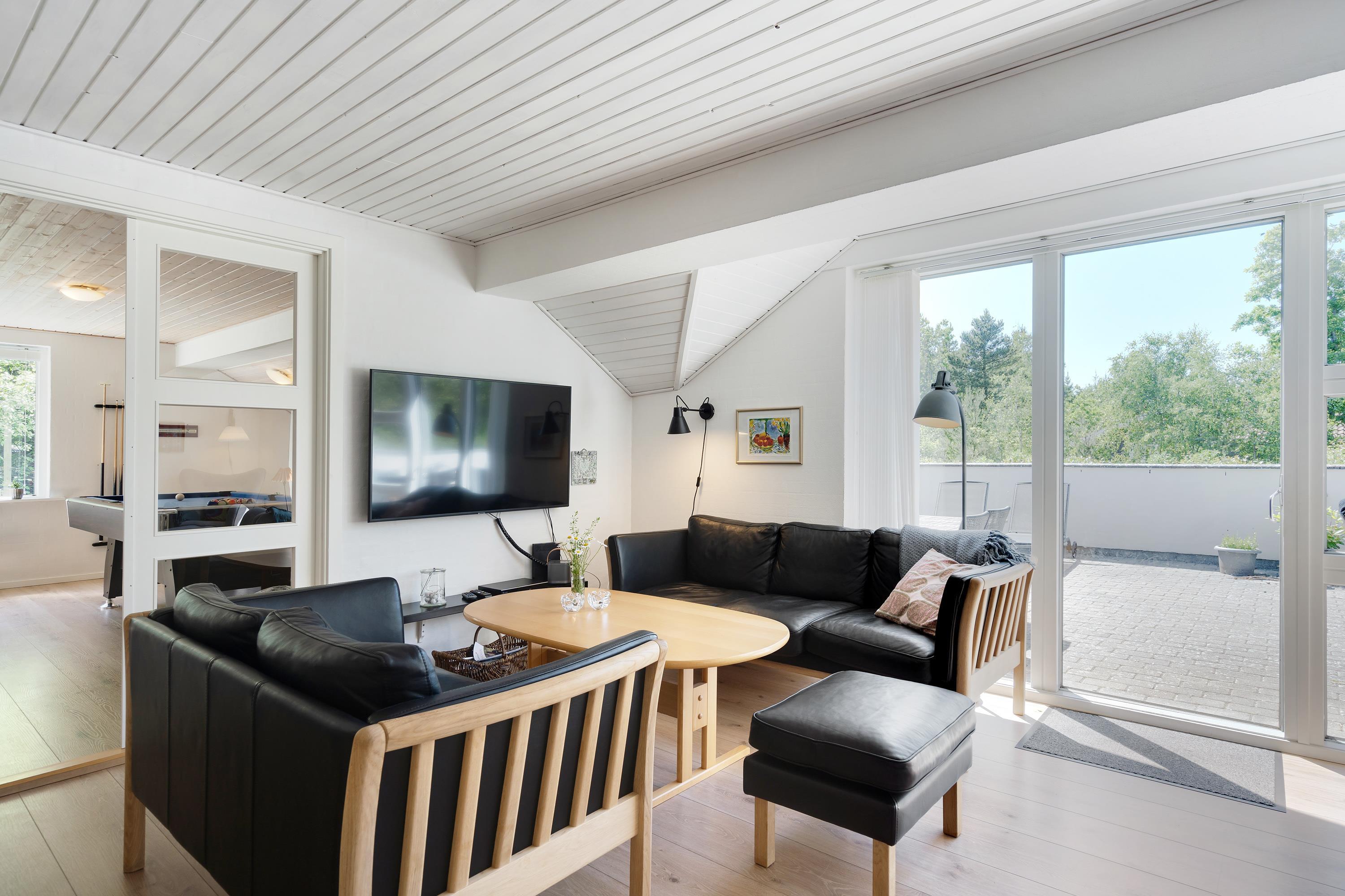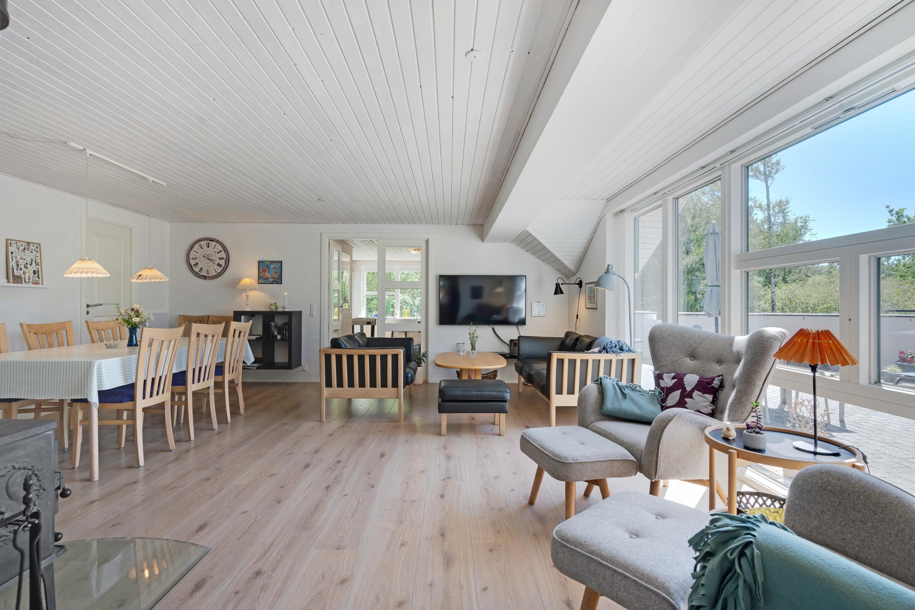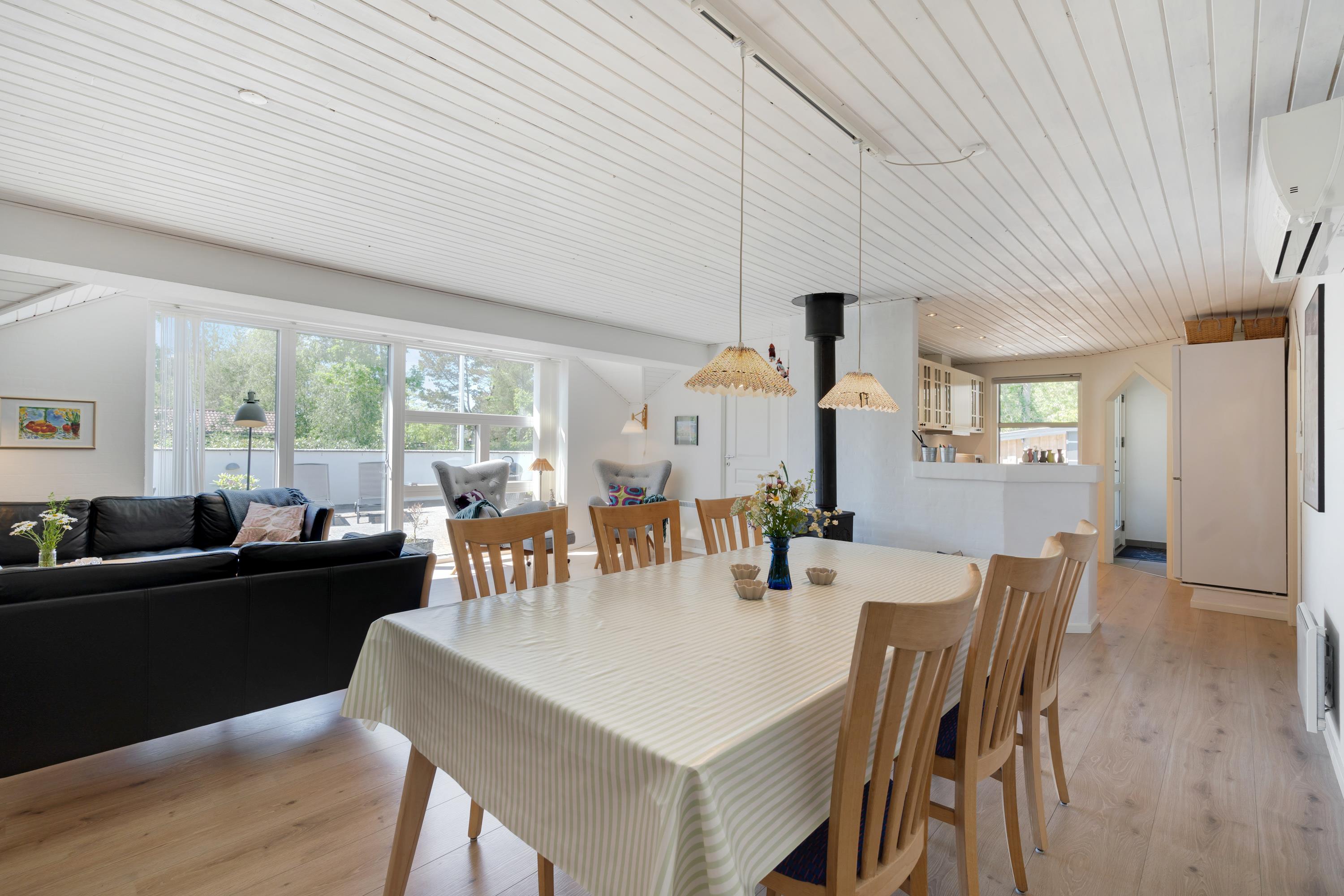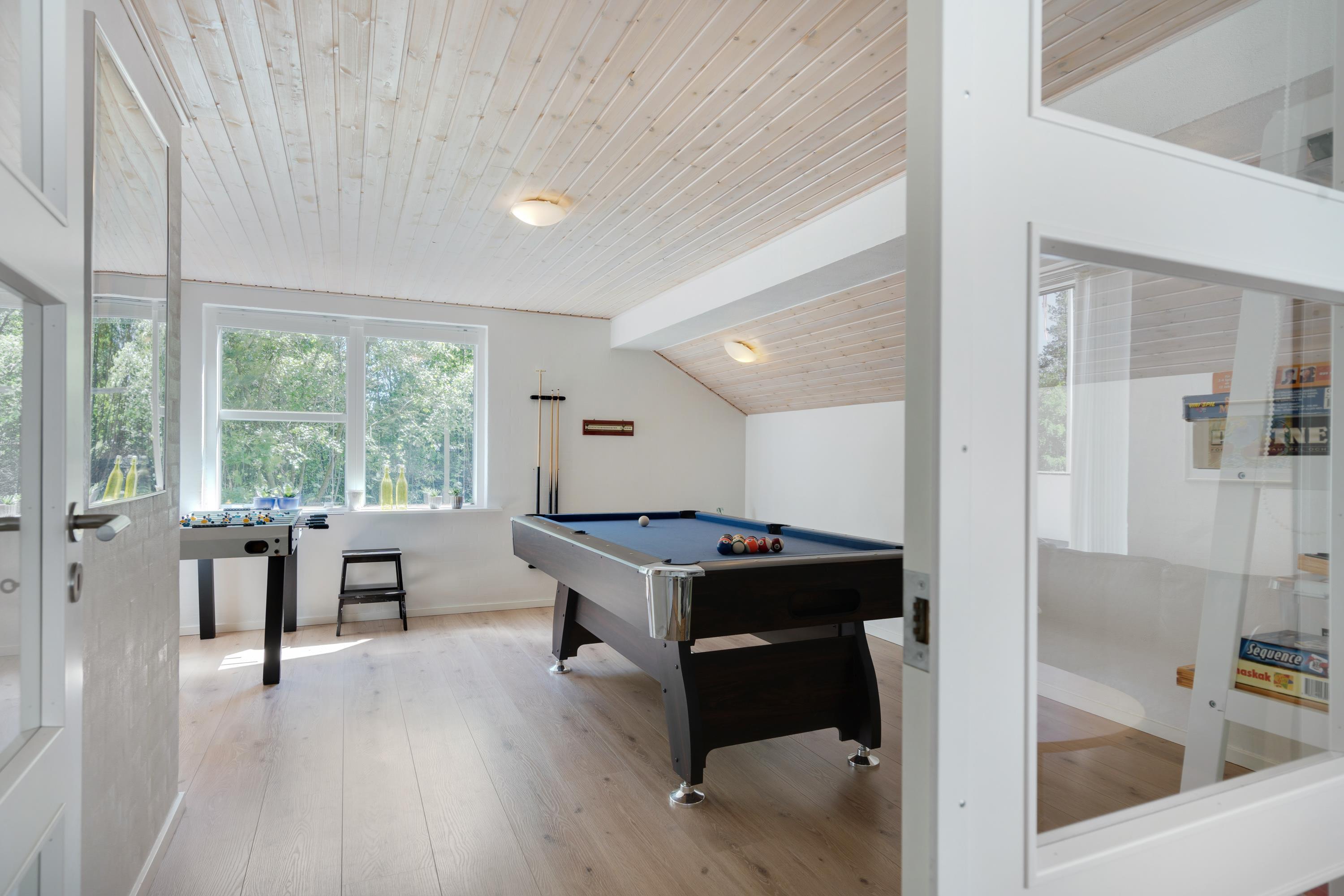 Der bliver skramlet med gryder og pander i det store køkken og en lækker duft breder sig ind i stuen, hvor mor sidder og hygger med sin bog og glæder sig over at have lejet et hus, hvor ungerne kan more sig i aktivitetsrummet med blandt andet bordfodboldturneringer. Brændeovnen knitrer og spreder en dejlig varme, egentligt er det ikke nødvendigt, for huset er udstyret med en energisparende varmepumpe, - men det er bare lidt hyggeligere sådan. Om lidt, efter aftensmaden når børnene er blevet puttet, skal der tændes op i sauna og spa, og så er det wellness-tid for de voksne. Det er ferie!
