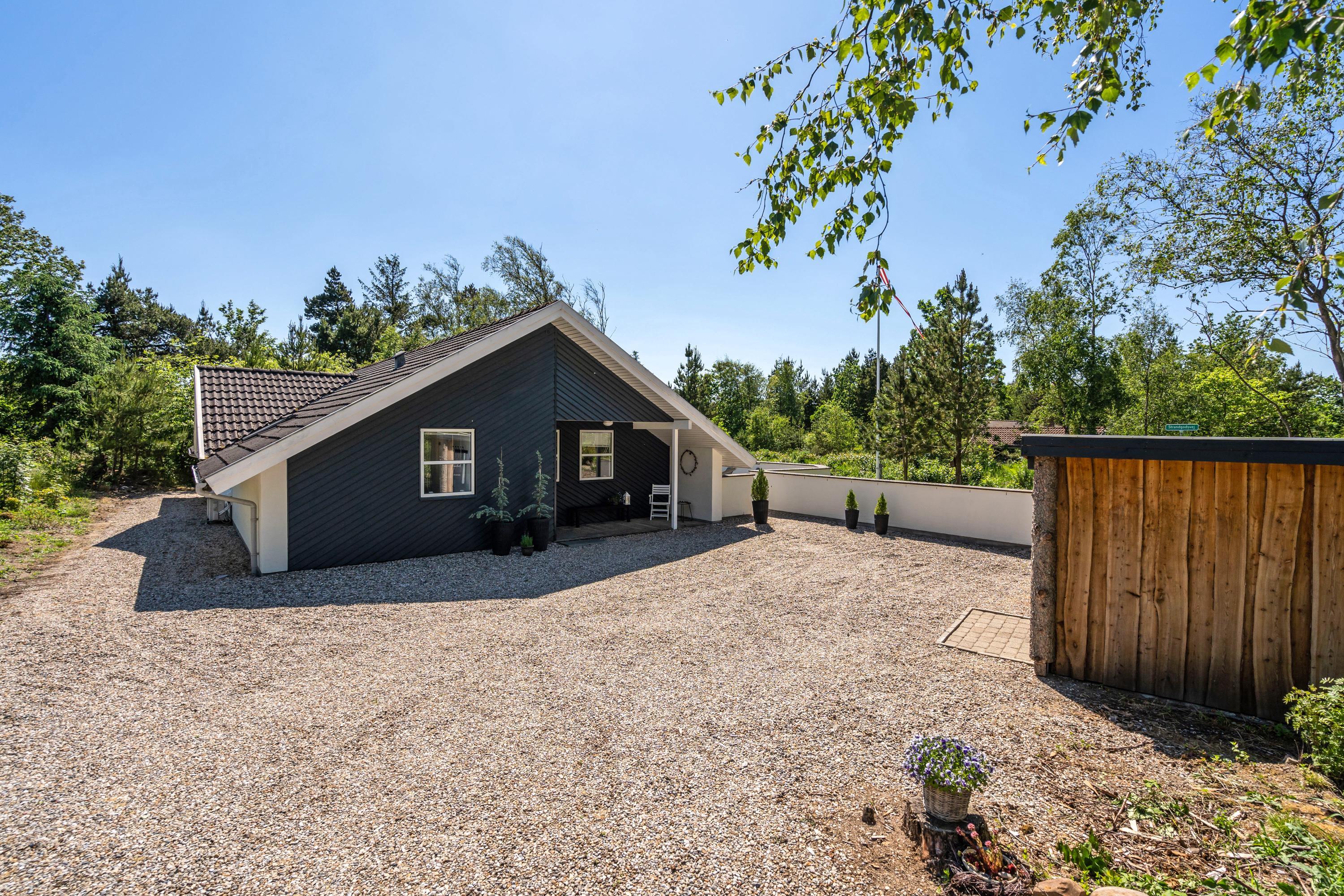 Beliggende på en dejlig rolig grund i Henne, er Strandgodsvej et godt bud til friluftsmenneskene og naturelskerne. Spil golf på golfpladsen, tag på vandre-, cykel eller ridetur i den store smukke Blåbjerg Plantage, som endog har flere mountainbike-ruter eller kig på fugle ved Fiil-sø. Med 2.5 Km til den børnevenlige dejlige Henne strand, er det heller ikke noget problem at tage turen til havet til fods - en skøn tur over heden. Ved Henne Strand er der desuden masser af butikker og spisesteder og blandt andet et berømt ishus.
