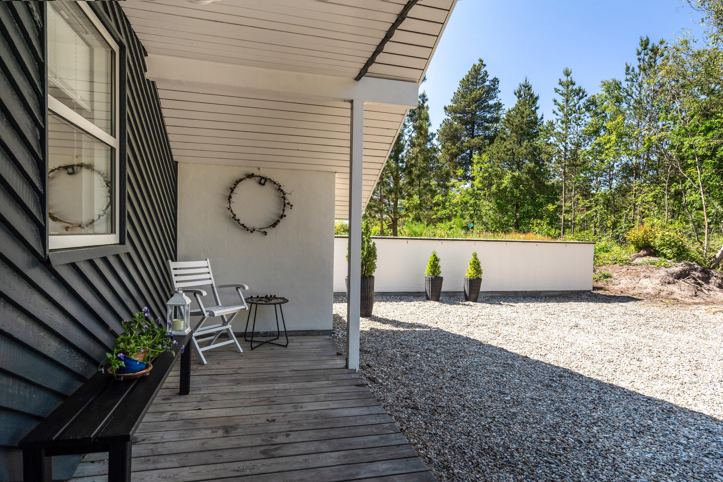 Også udeområderne er gennemtænkte. En stor lukket solgård optimerer terrassetiden, uden at de små kan liste sig væk og selvstændigt gå på opdagelse. Fodboldmål, sandkasse og gynger giver mulighed for masser af frisk luft, sjov og leg. Her er der ingen der behøver kede sig, imens de voksne tænder op i grillen.
