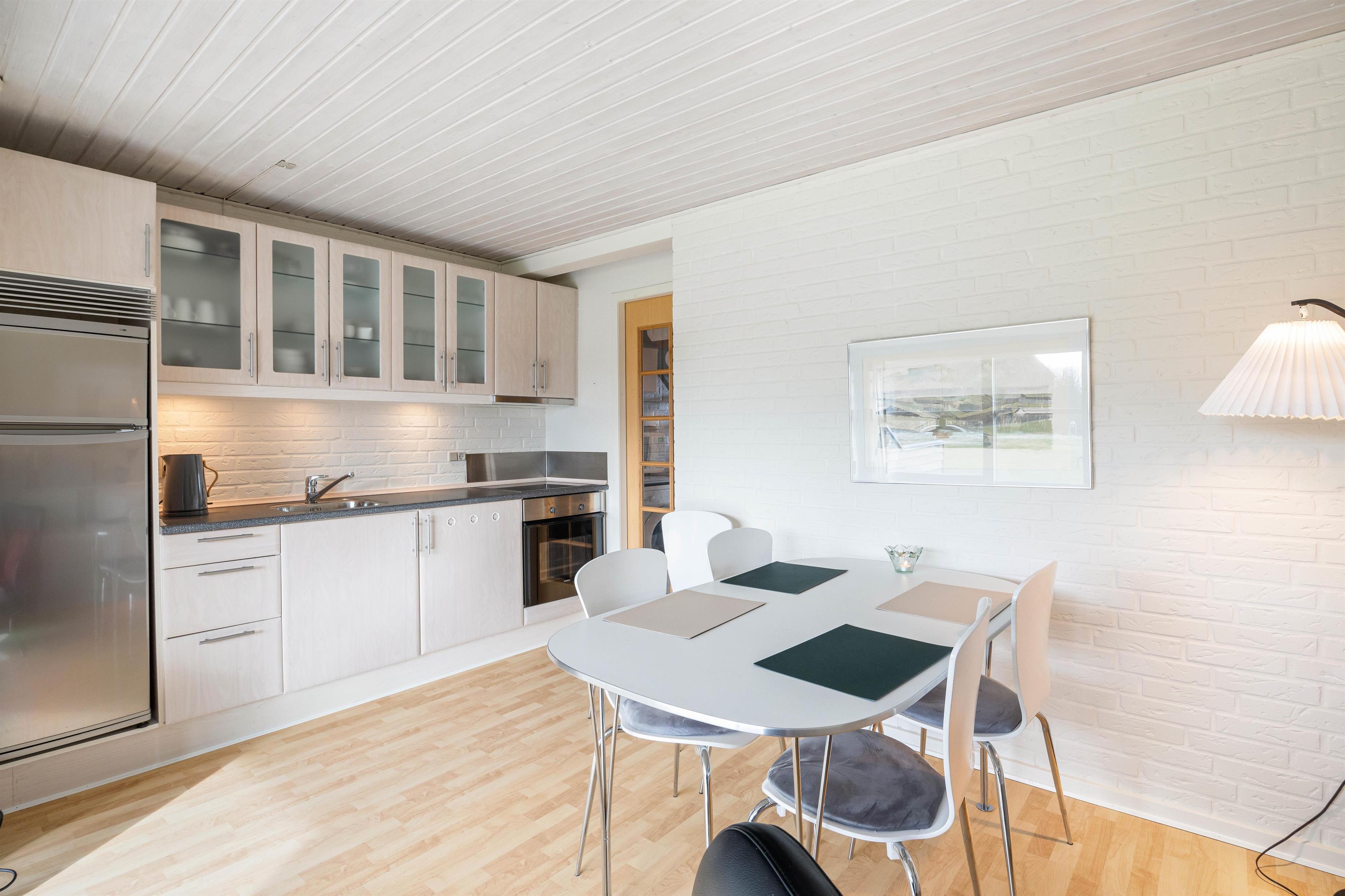 Feriestemningen breder sig så snart, I træder ind i det smukke, lyse opholdsrum med et stort, lysgennemstrømmende vinduesparti. Her kan I hygge jer i sofaen, se tv eller nyde udsigten og bare slappe af. Lad terrassedøren stå åben, hvis I samtidig vil udnytte den friske vesterhavsluft.