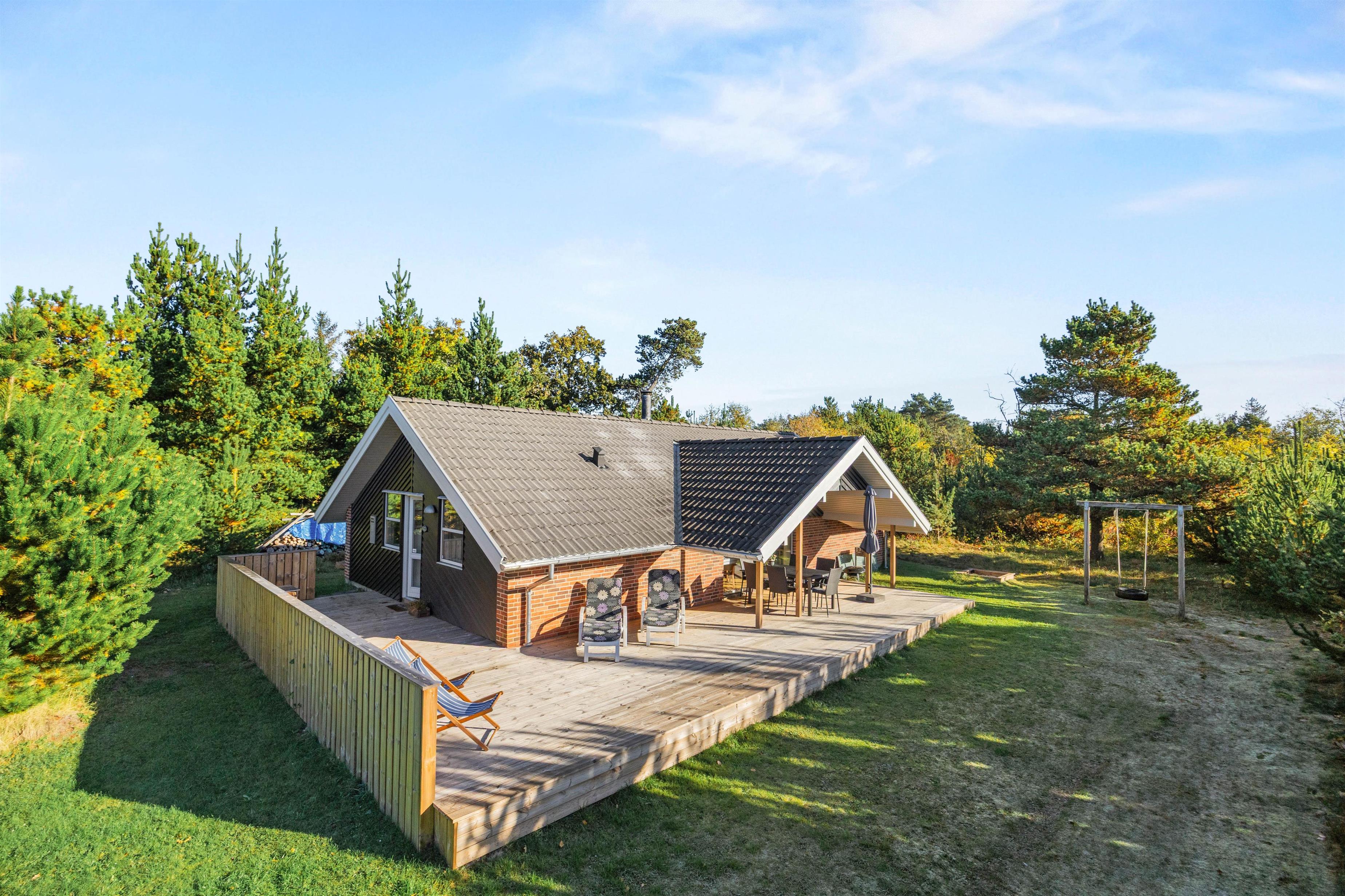 Sommerhuset har en rummelig grund på 1921m2, hvor der er rig mulighed for udendørs aktiviteter. I vælger selv, om aftenerne skal bruges på grill på den overdækkede terrasse eller om børnene skal nyde gyngen og sandkassen. Havemøblerne indbyder til hyggelige stunder udendørs, imens jeres 2 kæledyr også nyder omgivelserne omkring sommerhuset.