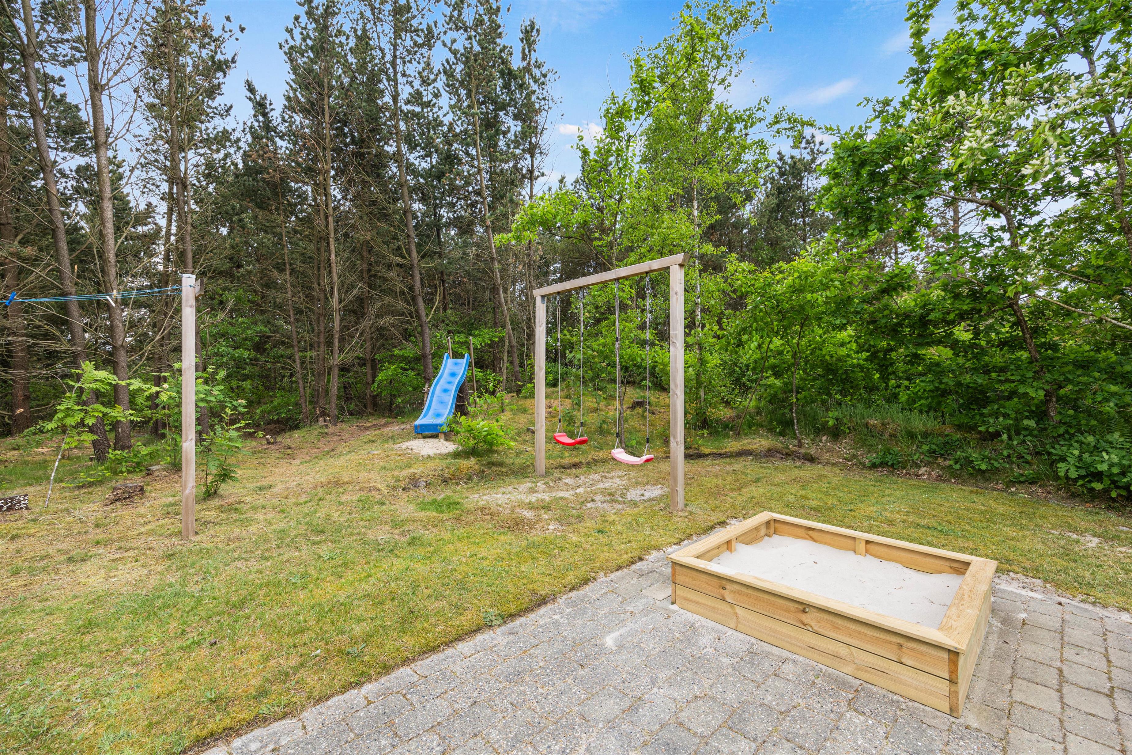Udenfor kan både voksne og børn finde masser af aktiviteter. På den store plænegrund på 1870m2 er der både gynge og sandkasse til børnene, imens I slapper af i de komfortable havemøbler, der er stillet frem rundt omkring sommerhuset.