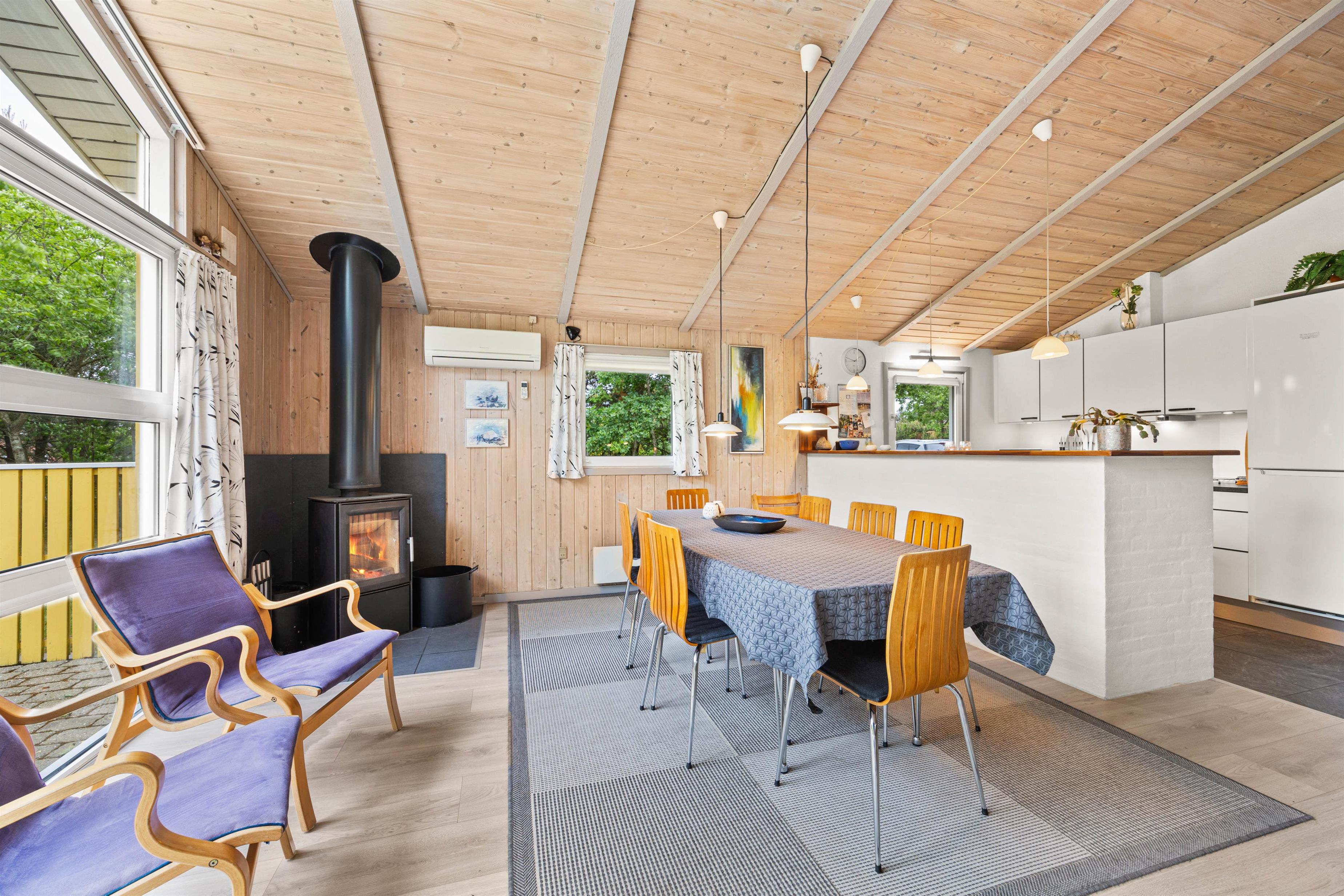 Med plads til op til 6 personer er der rigelig plads til hele familien. Sommerhuset byder på 4 velindrettede soveværelser, så alle kan få en god nats søvn. I kan hygge jer foran den hyggelige brændeovn på kølige aftener eller drage fordel den energibesparende og effektive luft-til-luft varmepumpe, der sikrer et behageligt indeklima året rundt. Det veludstyrede køkken har en opvaskemaskine, der gør oprydningen i køkkenet til en leg, og frigiver tid til at se jeres yndlingsfilm, som I kan streame via Chromecast.
