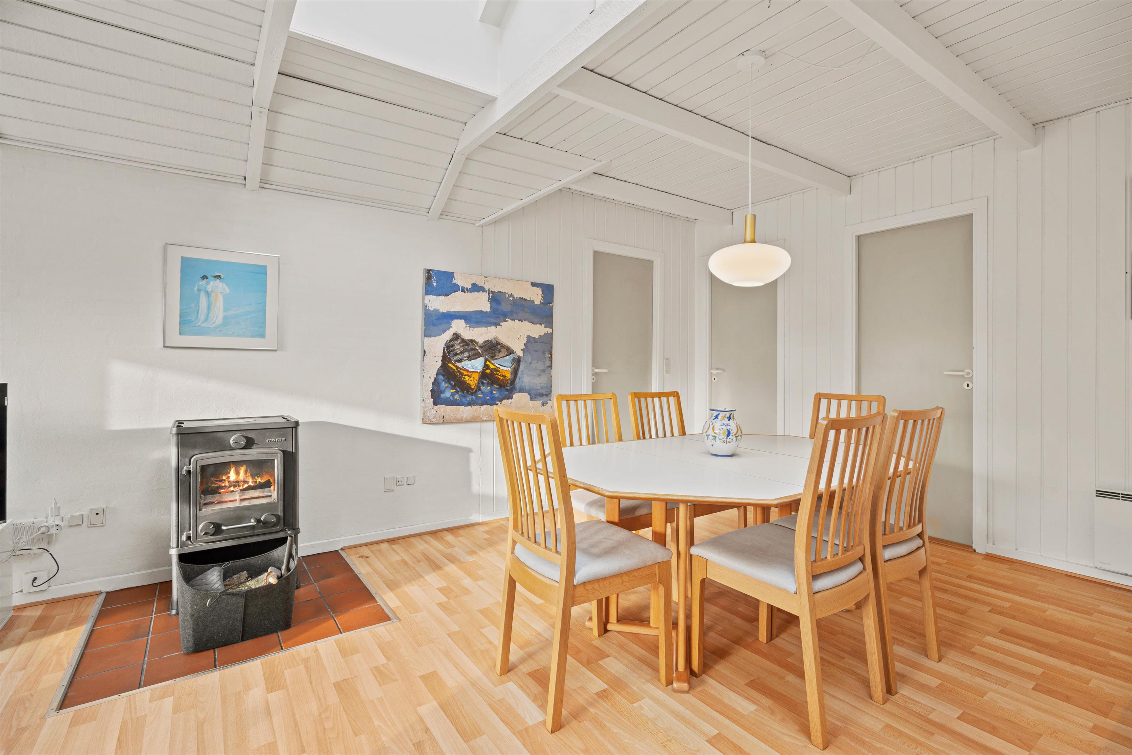 De tre soveværelser er udstyret med to dobbeltsenge og to enkeltsenge, så du kan få hvilet ud i din ferie og være frisk til spændende oplevelser, og når du skal være klar til den nye dag, kan du lune dine fødder på gulvvarmen i badeværelset før badet. På kolde aftener kan du hygge dig foran den knitrende brændeovn med et godt glas vin og en god bog eller hygge med venner og familie.