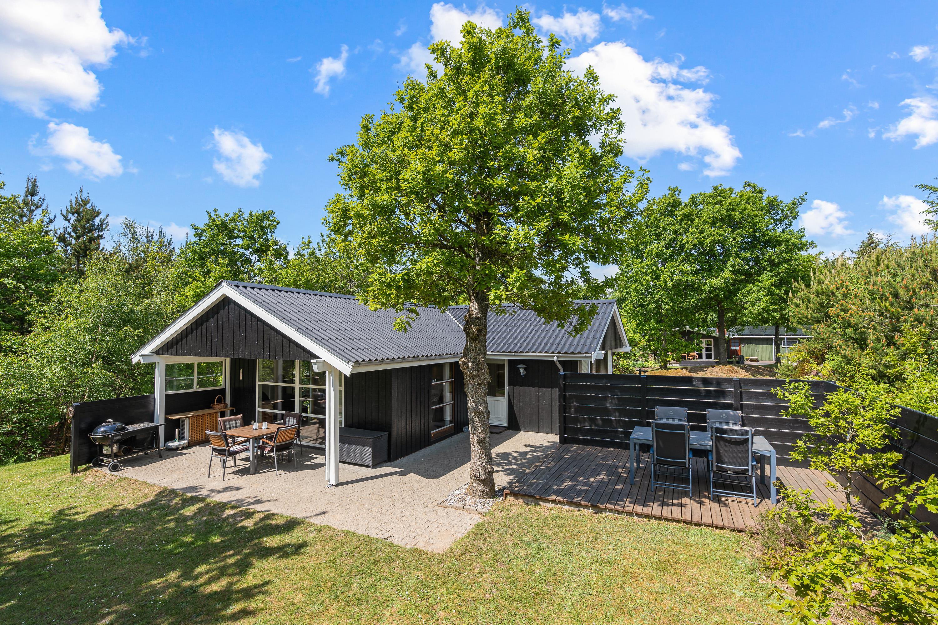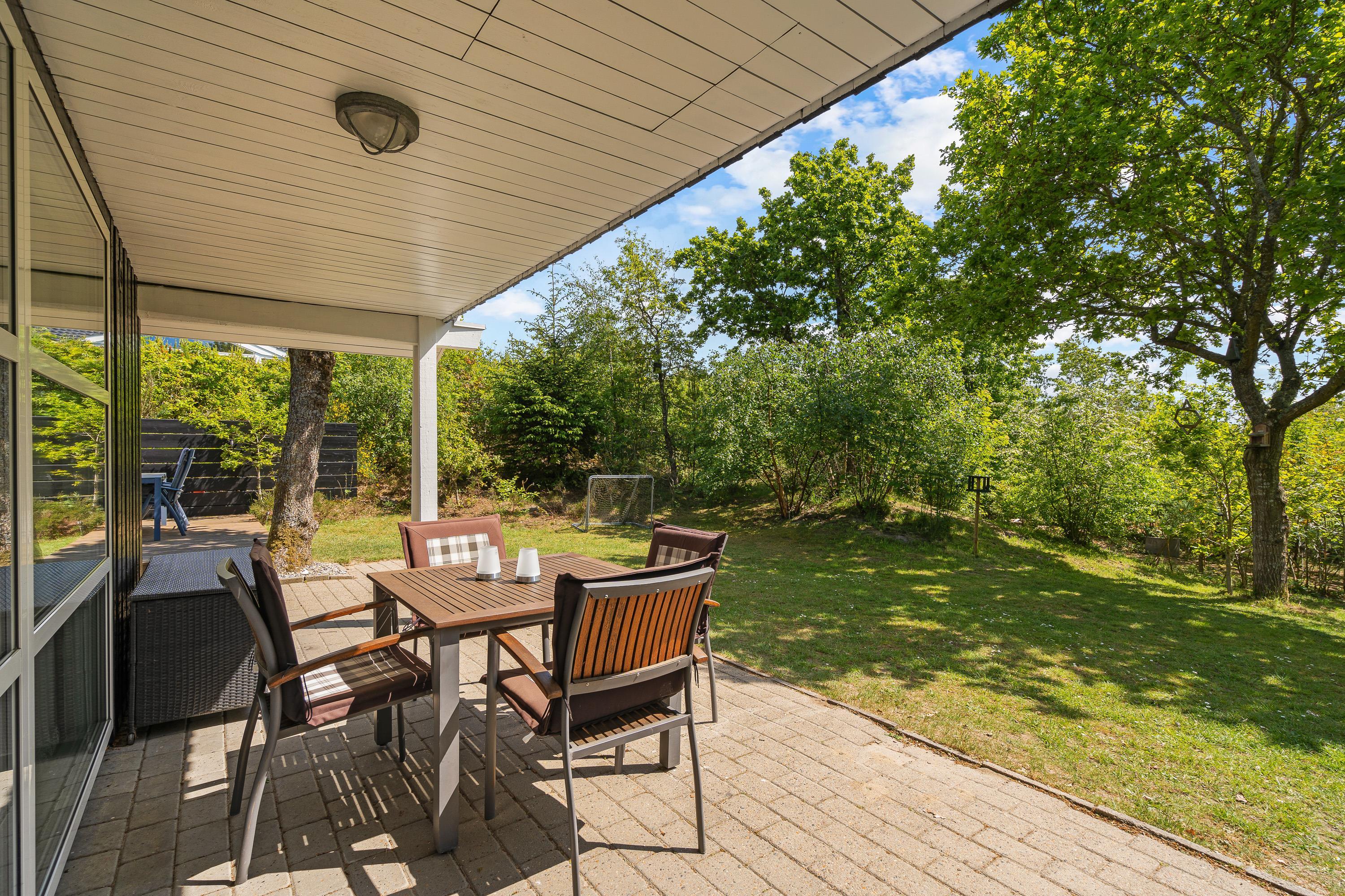 De to dejlige terrasser indbyder til solbadning og afslapning. Den ene terrasse er til dels overdækket, så der er altid mulighed for en hyggelig grillaften, også når vejret ikke helt spiller med. Træerne på grunden og den afskærmede terrasse giver til enhver tid ro og læ, det er det perfekte sted til virkelig afslapning, tag en lang morfar på solvognen og nyd lyden af fuglekvidre.