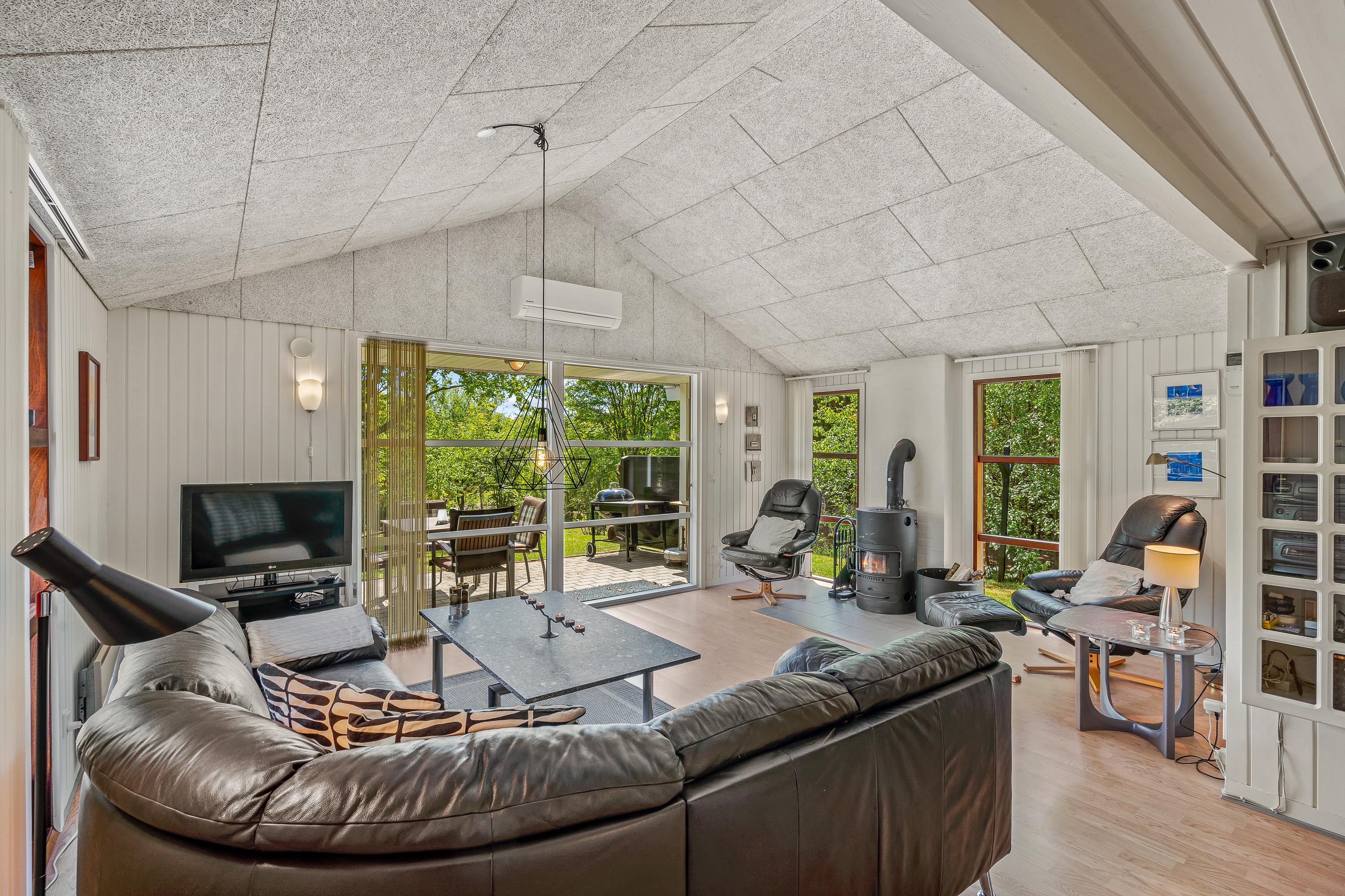 I det godt udstyrede køkken kan I snildt tilberede lækre måltider, - opvaskemaskinen klarer resten, så der er tid til et familiespil ved det ovale spisebord. Plads til rigtig afslapning giver den store lædersofa, - her kan hele familien sammen hygge med en god film imens ilden knitrer i brændeovnen.