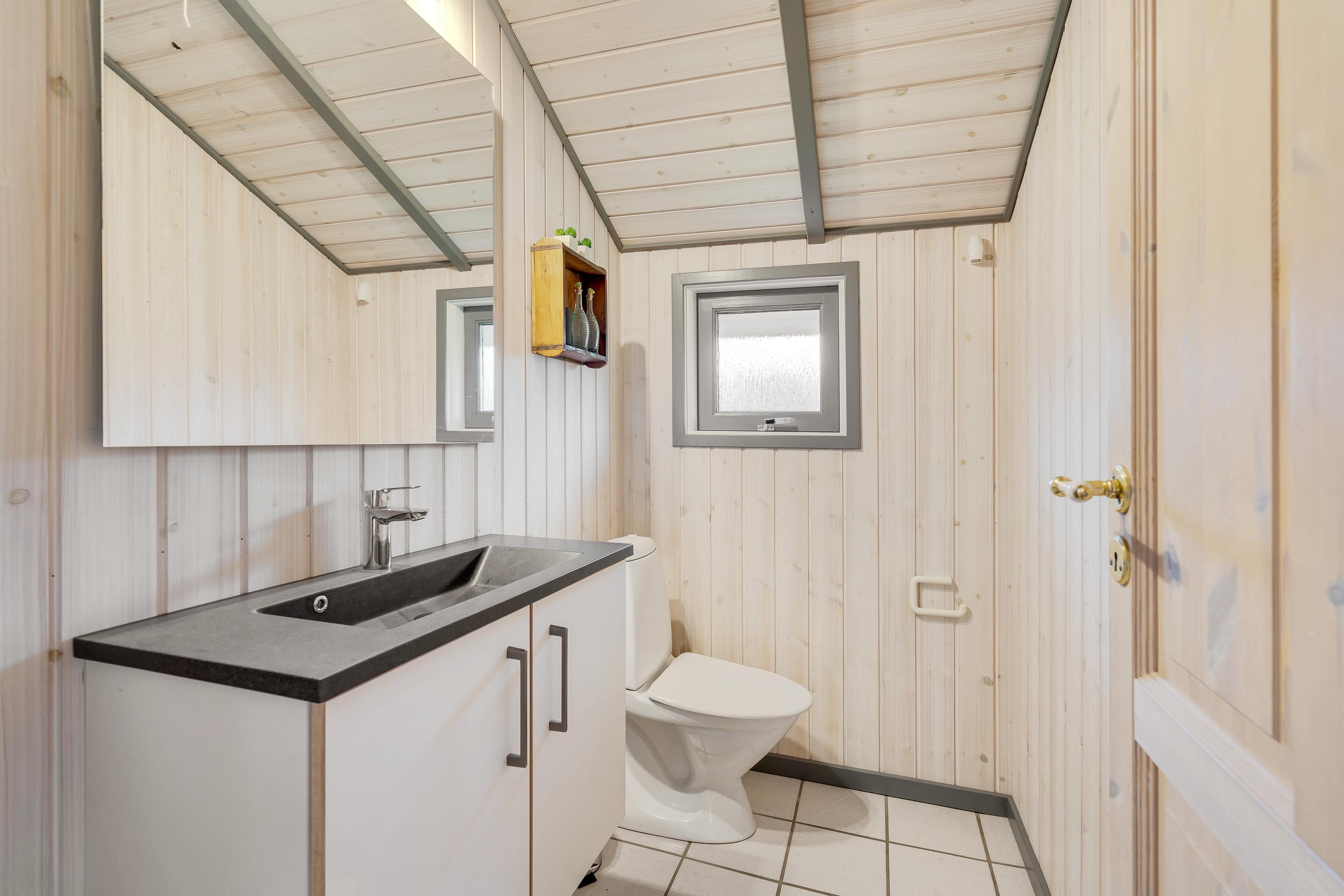 Feriehusets badeværelse og gæstetoilet er begge med gulvvarme, og en vaskemaskine og tørretumbler gør ferien ekstra afslappet.