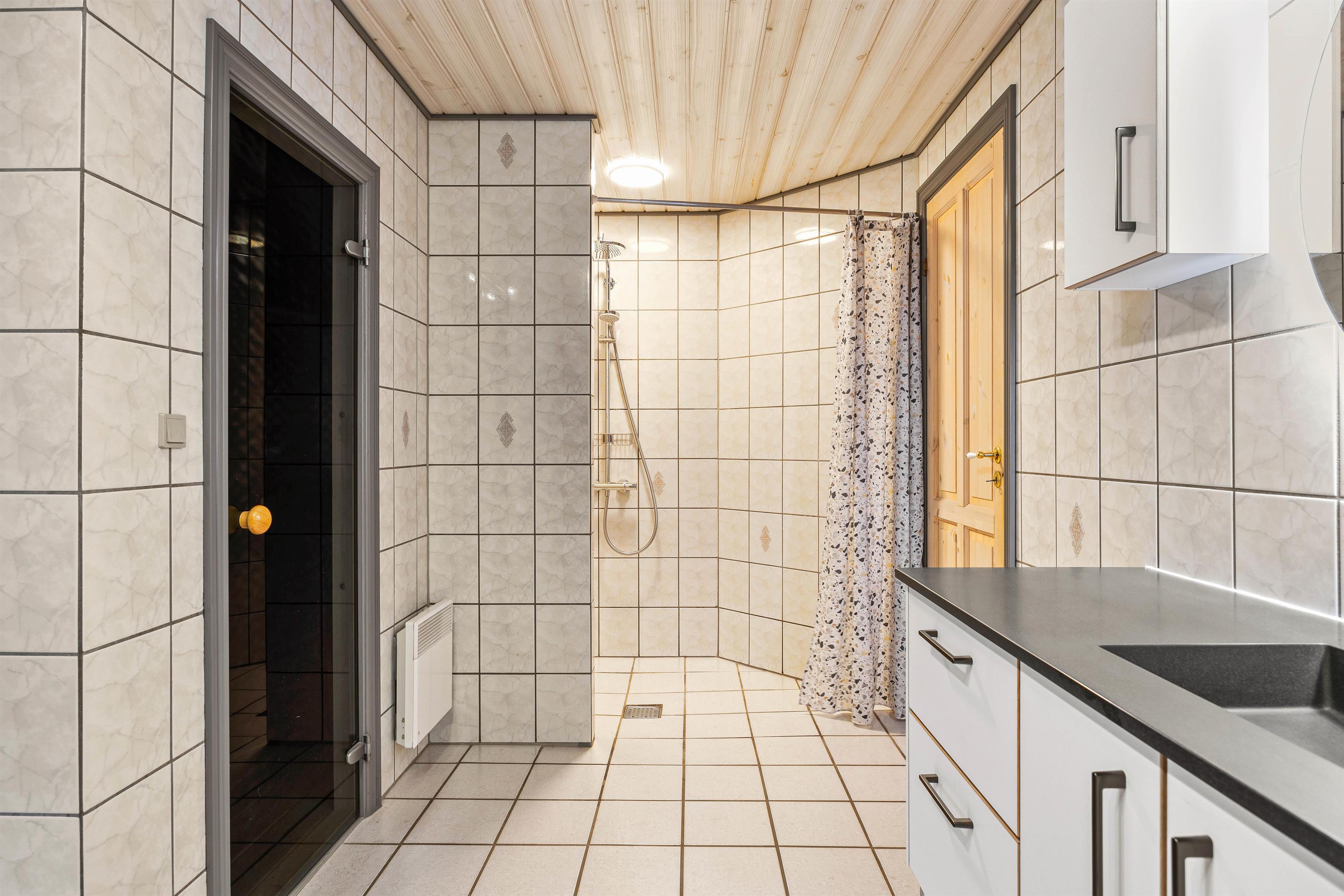 Badeværelse med egen wellnessafdeling med spa og sauna