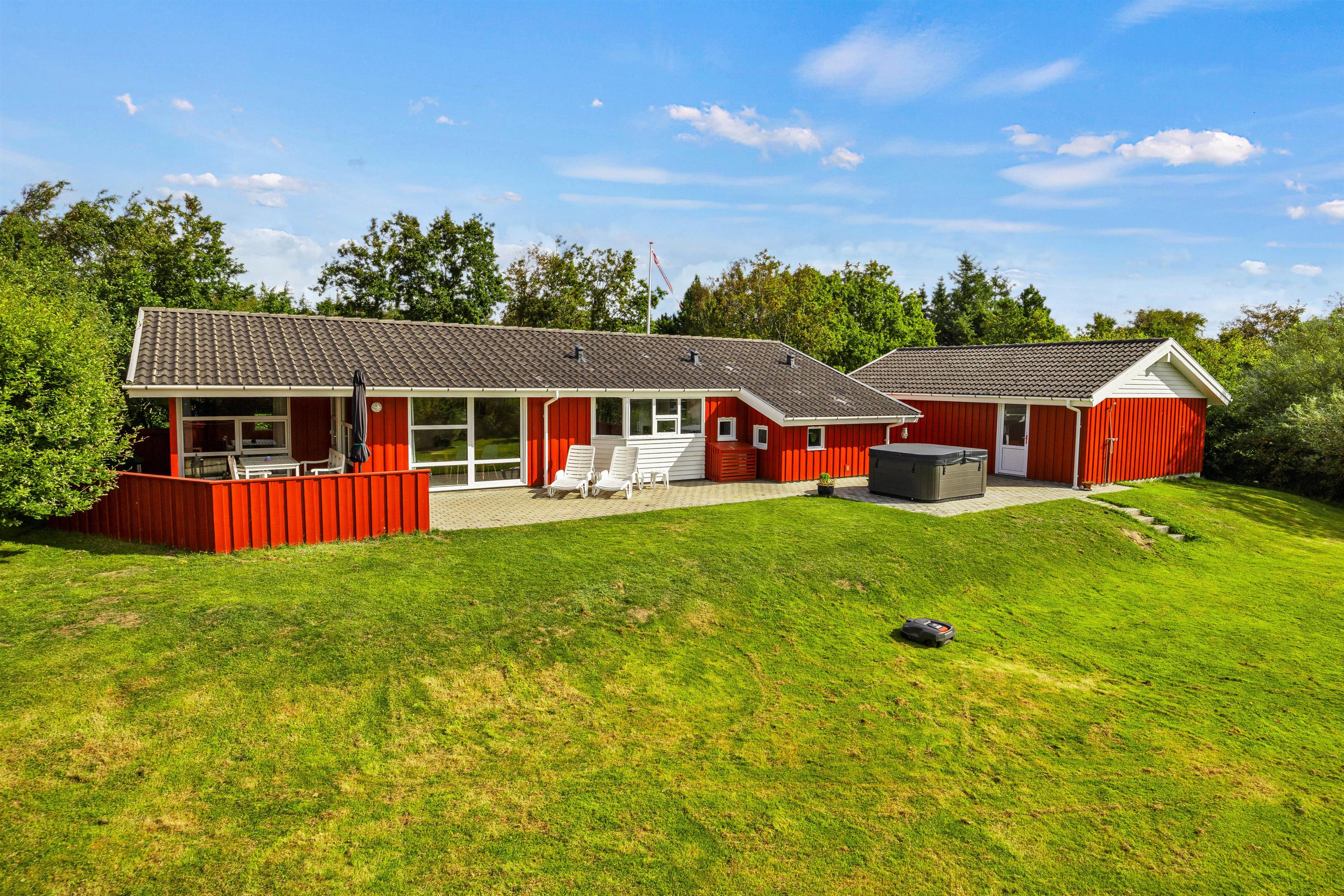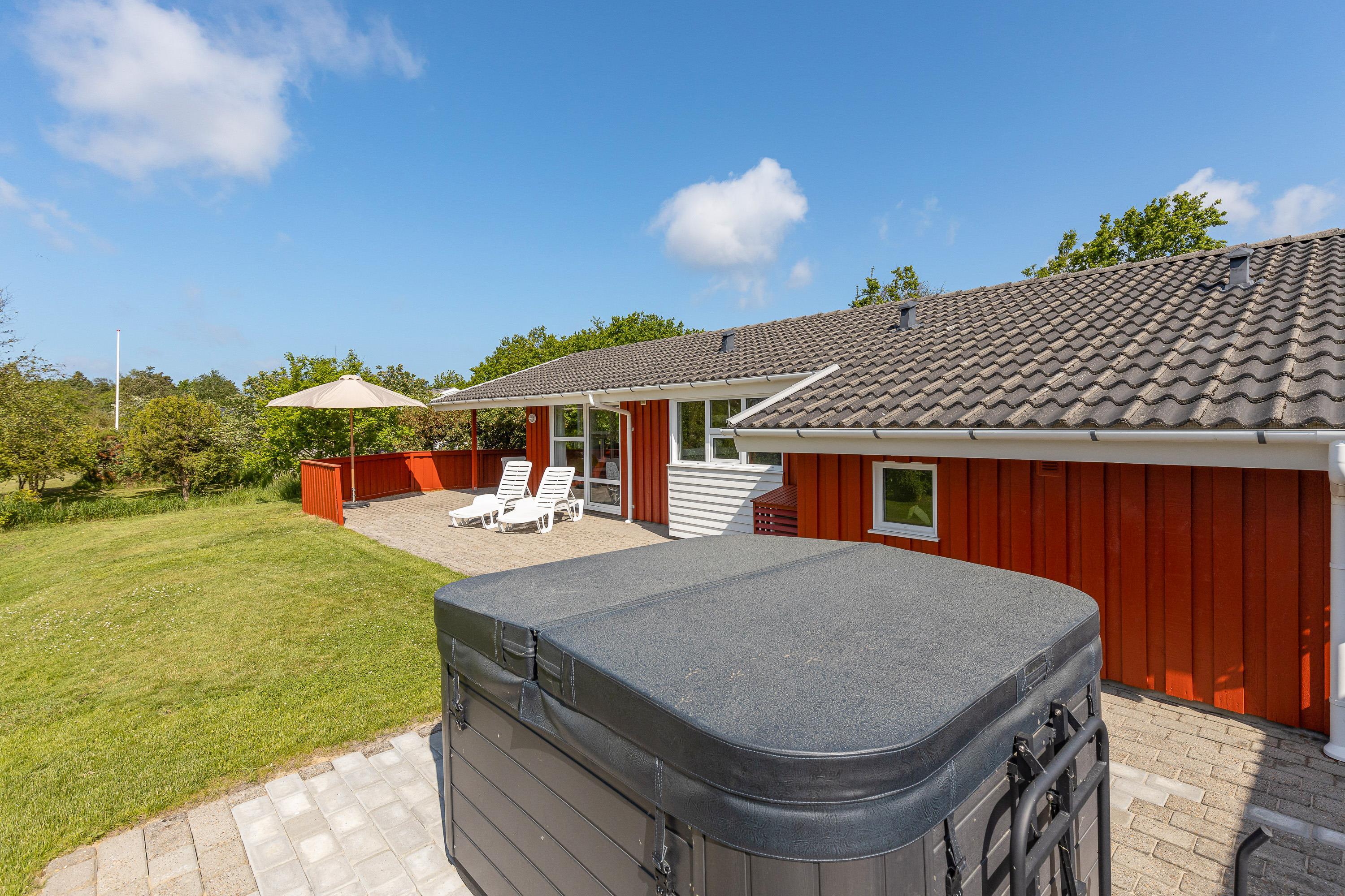 På den alsidige terrasse finder I alle et godt spot, ligegyldigt om I er til fuld sol eller skygge. Terrassen har nemlig både en åben, afskærmet og overdækket del, så der er noget for enhver smag. På terrassen finder I desuden et af feriehusets højdepunkter: Et lækkert udendørs spabad, som tilfører ferien lidt ekstra wellness-fornemmelse.