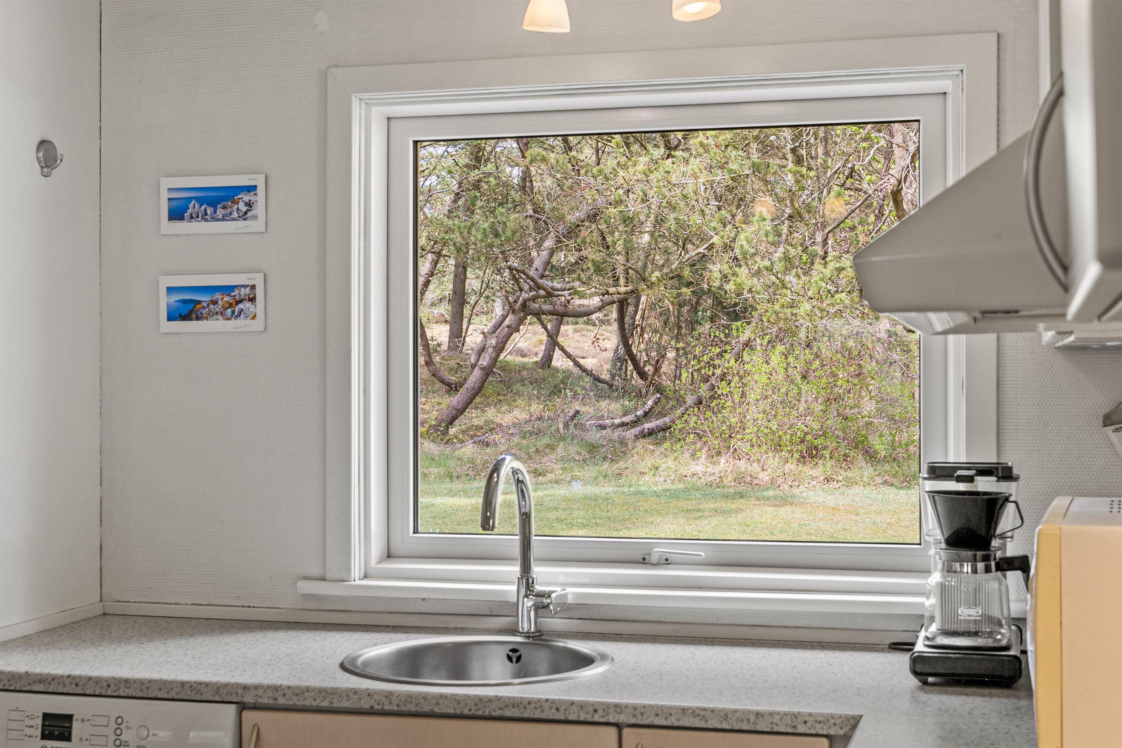 Sommerhusets køkken er veludstyret og opvaskemaskinen gør det nemt at holde styr på opvasken under opholdet. Ydermere står vaskemaskinen også klar til brug, så I altid har mulighed for at få vasket tøj, hvis behovet skulle opstå.