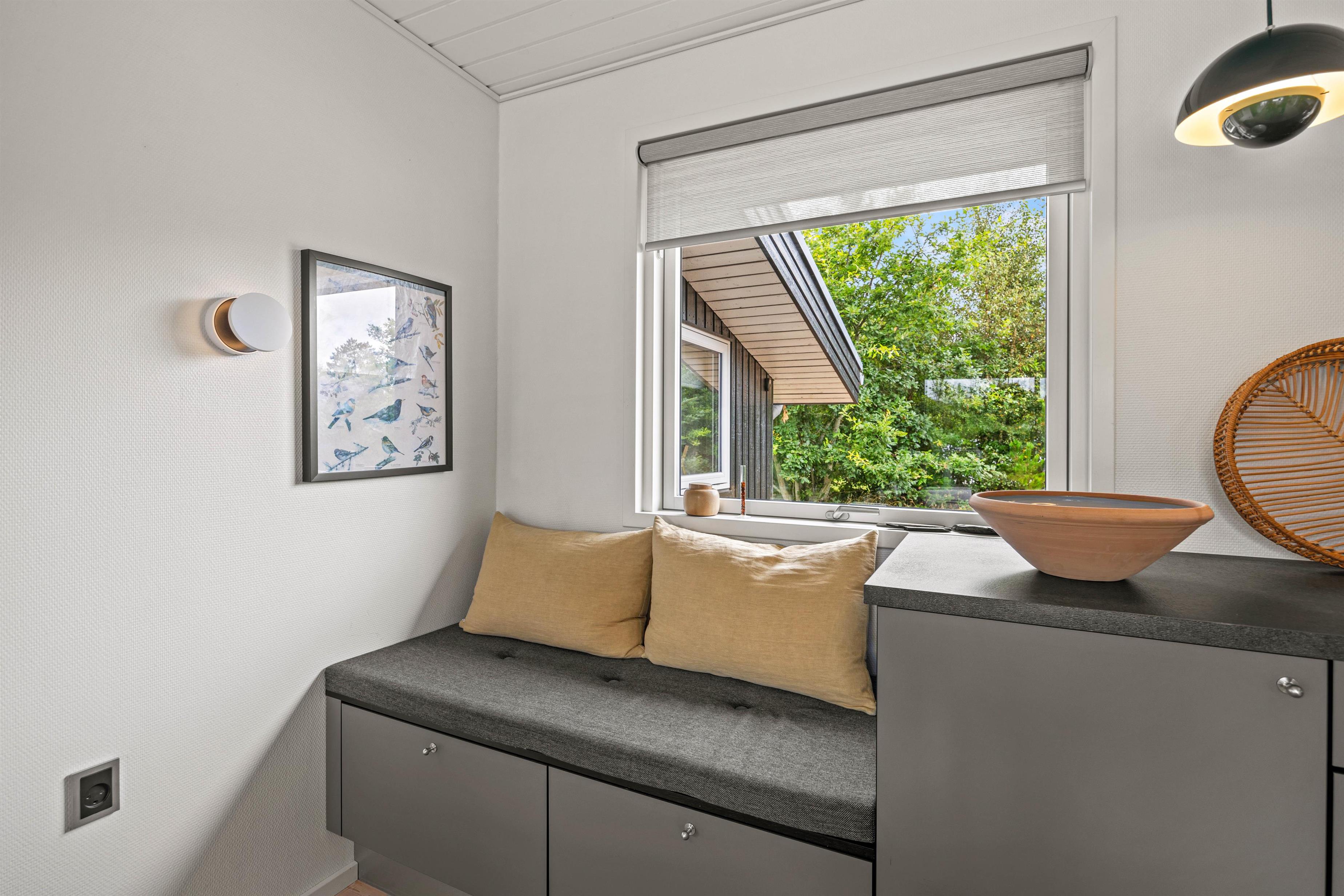 En energibesparende luft-til-luft varmepumpe sørger for et godt indeklima, og med både vaskemaskine og tørretumbler er badehåndklæderne hurtigt friske og klare til den næste strandtur.