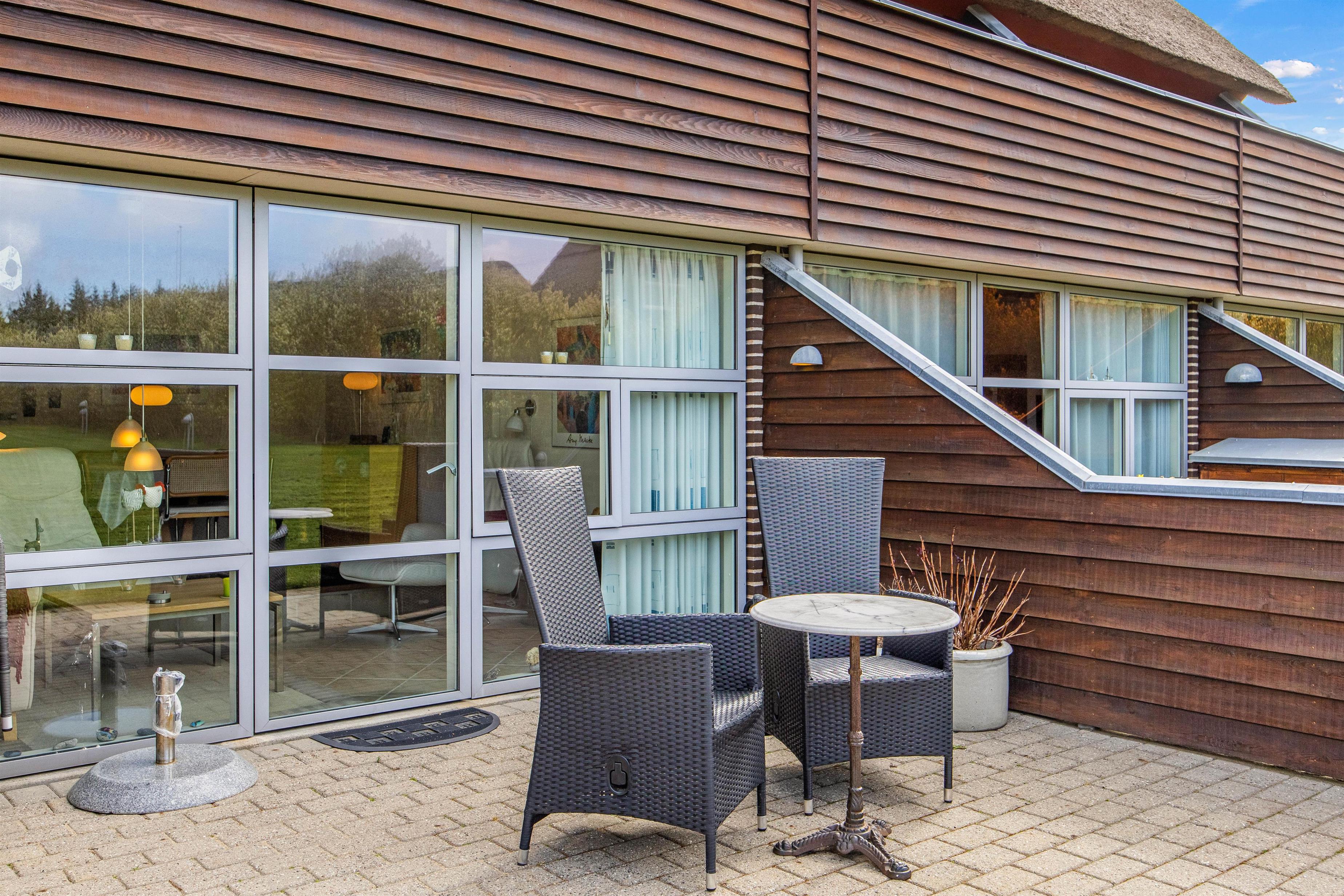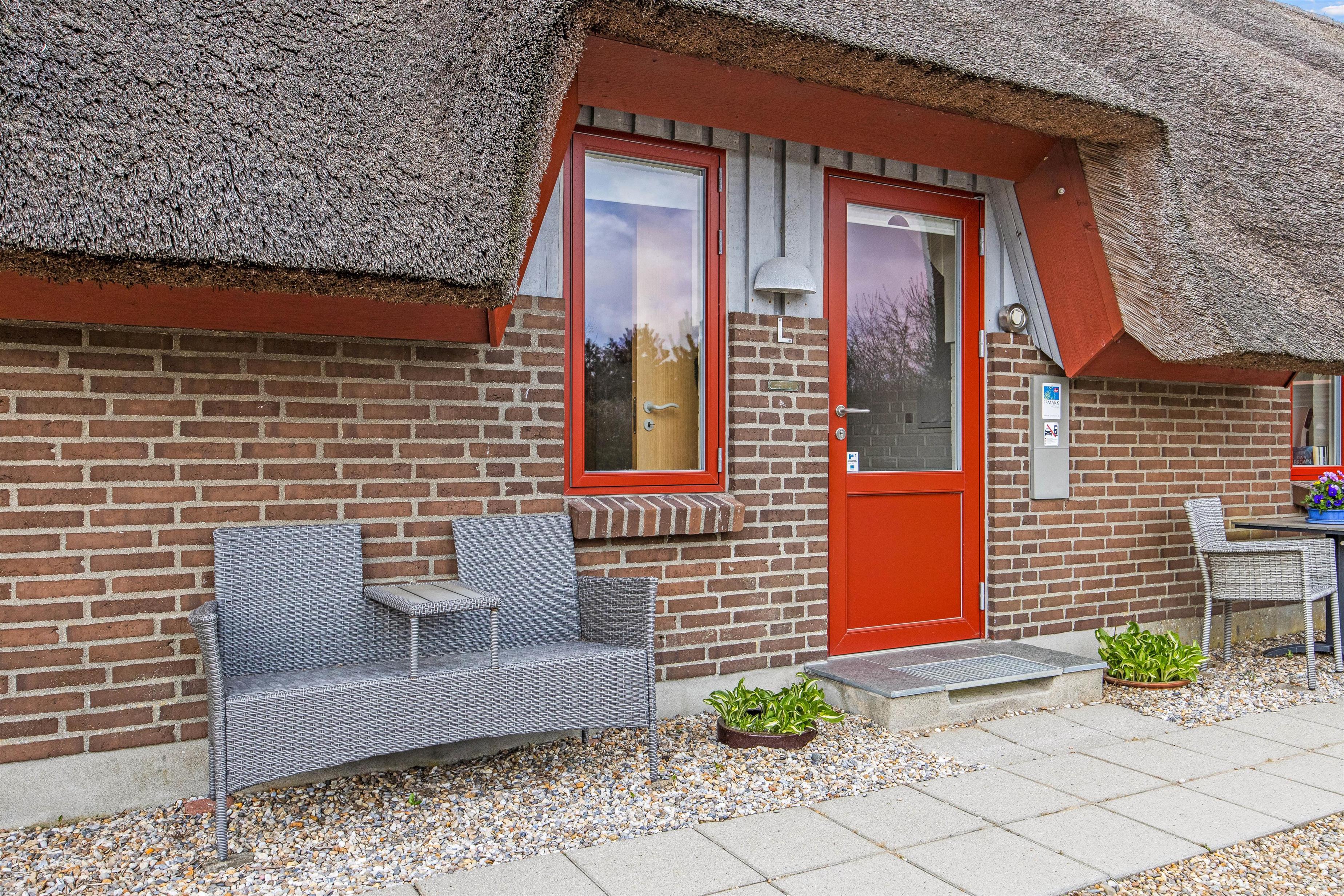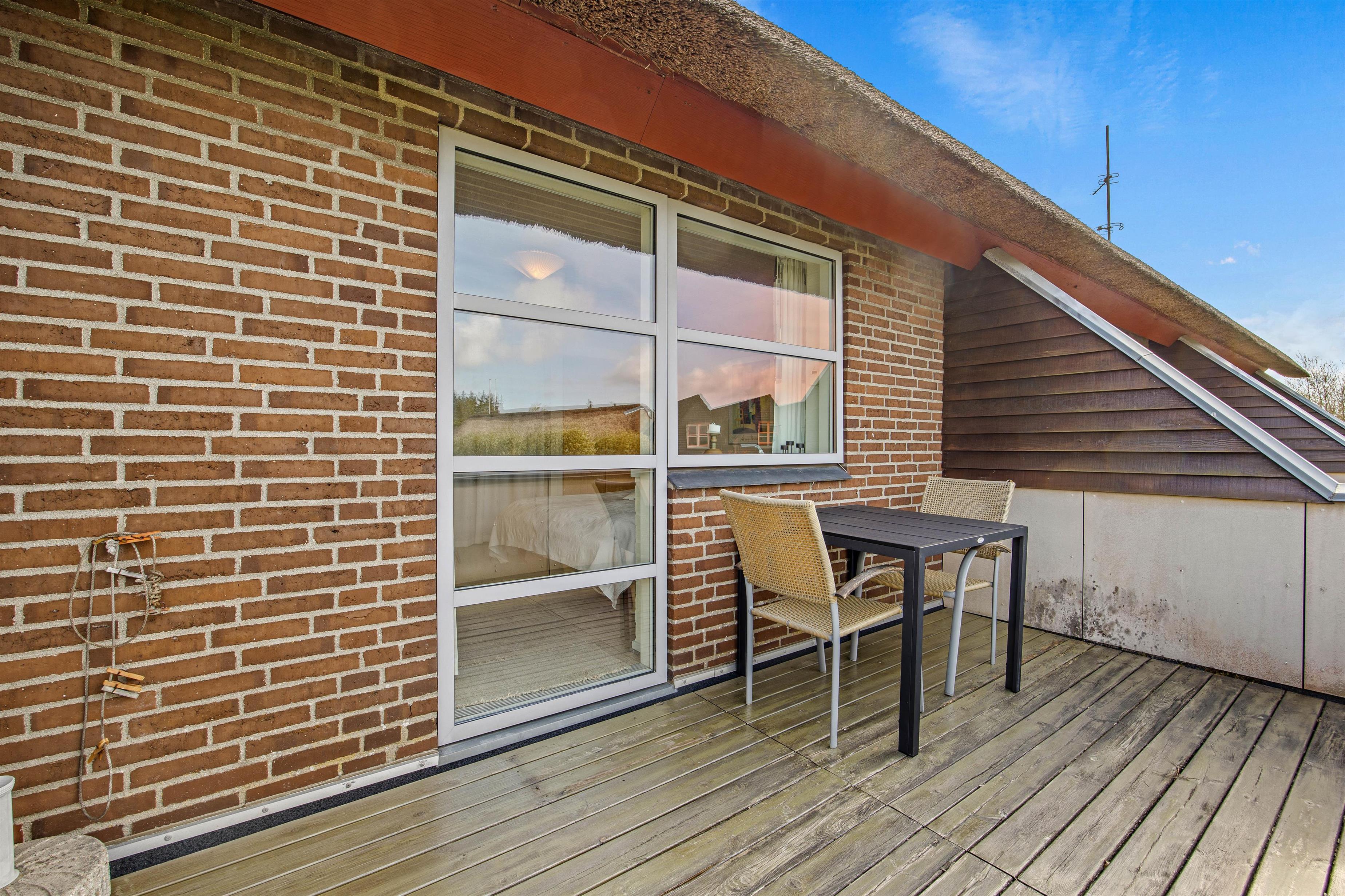 Den delvist afskærmede terrasse ligger i direkte forlængelse af ferielejlighedens opholdsstue, og er et perfekt sted til at nyde en dejlig kop kaffe eller yndlingsbog, imens I sætter jeg til rette i lejlighedens havemøbler. Og når dagen går på hæld, kan den elektriske grill være jer behjælpelige med at tilberede et dejligt måltid.
