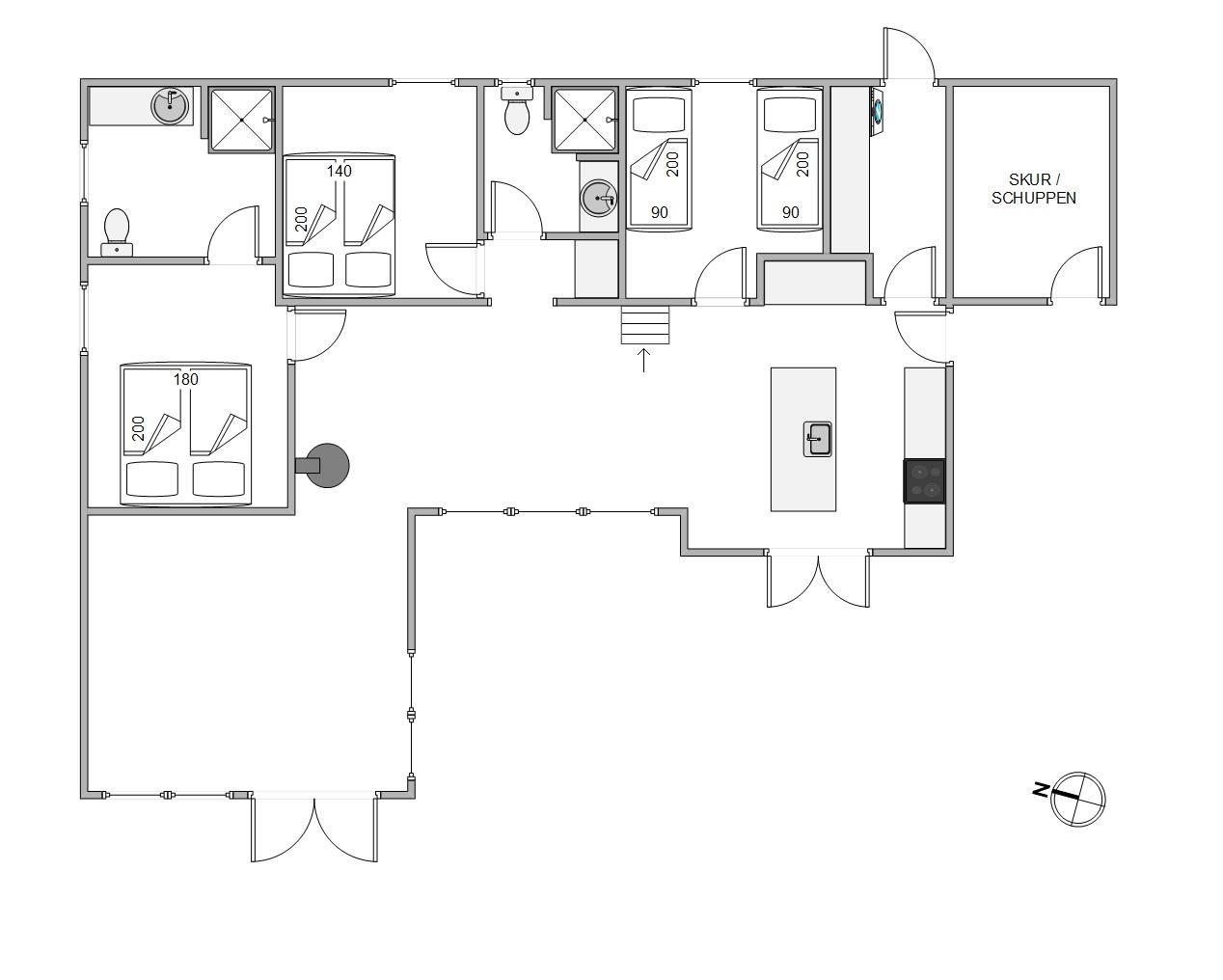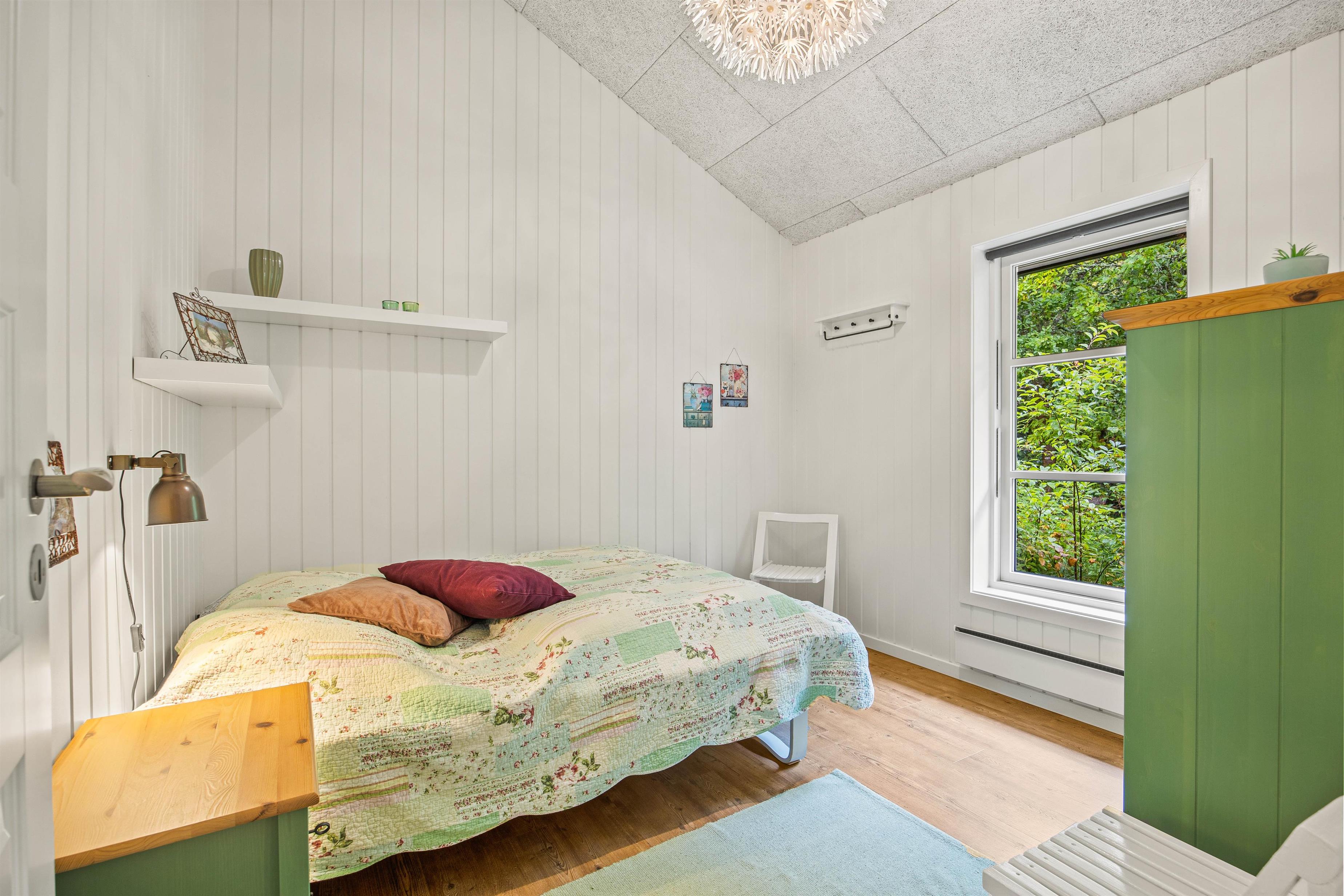 Sommerhuset sovepladser er fordelt over 3 gode soveværelser. To af de rummelige soveværelser er indrettet med en dobbeltseng; det sidste soveværelse indeholder 2 enkeltsenge.