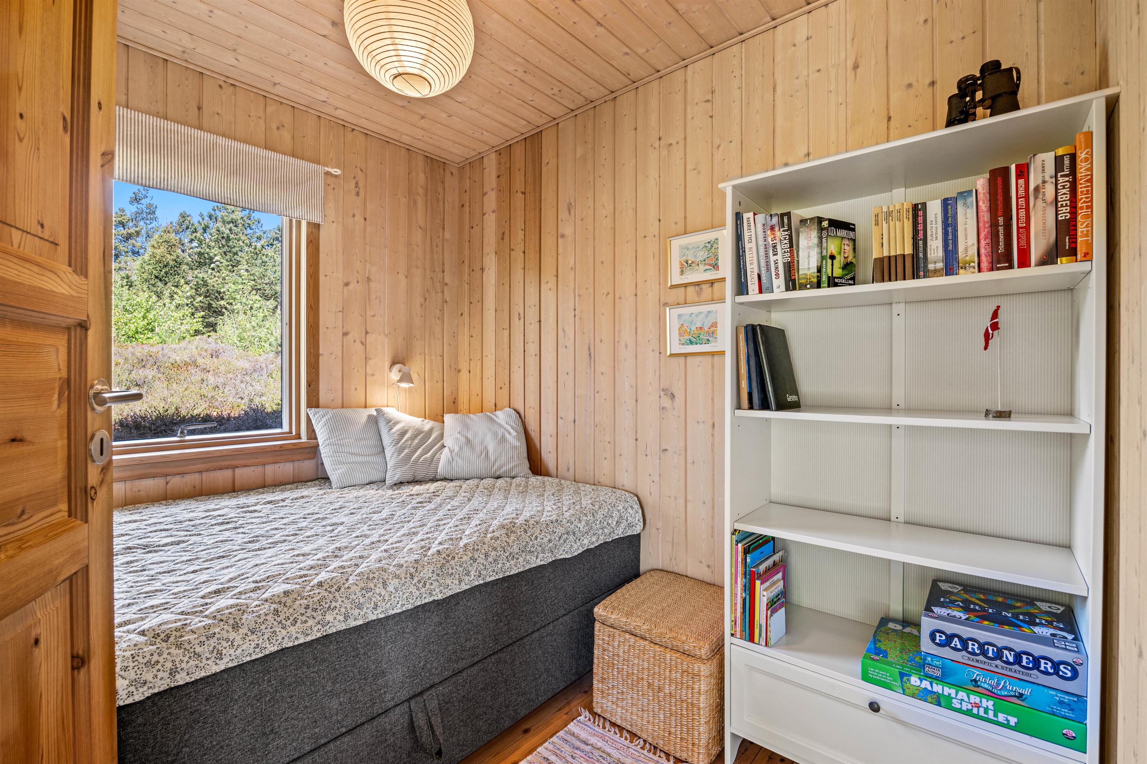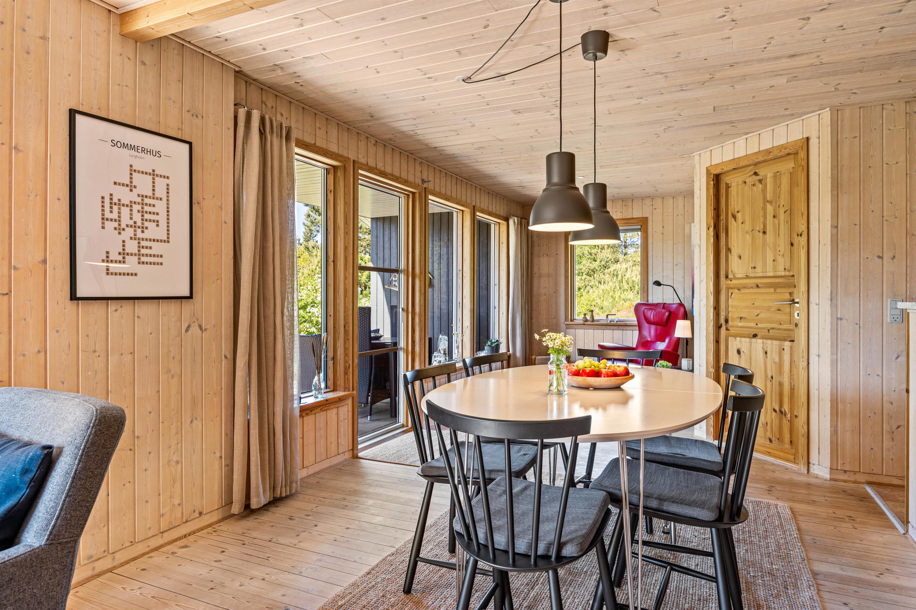 Det fine træhus oser af charme og rummer plads til 6 feriegæster - perfekt til en stille og rolig familieferie! Den hyggelige stue ligger i forbindelse med det åbne køkken, og her kommer I til at tilbringe et hav af hyggelige feriestunder med god mad, spændende film og afslapning foran brændeovnens knitrende varme.