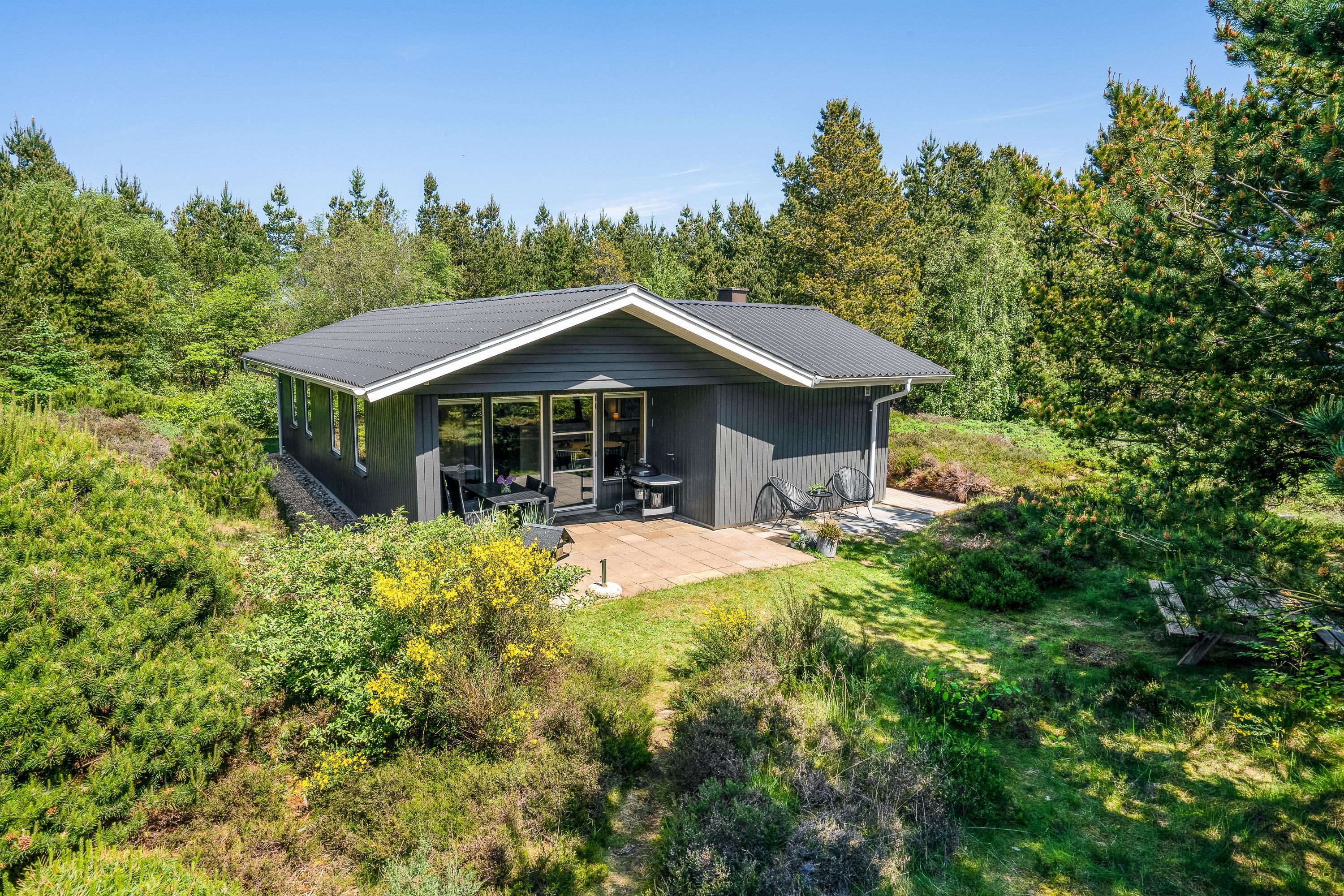 På Hovgårdsvej 29 i Henneby ligger dette skønne sommerhus på en smuk naturgrund. Her vil naturelskerne befinde sig rigtig godt; Kun få meter fra feriehuset starter Blåbjerg Plantage, som med sine mange vandre- og cykelstier giver jer mulighed for at udforske den rige natur på tæt hold. Og efter en gåtur i den friske luft, kan I tanke ny energi i husets skønne sauna.