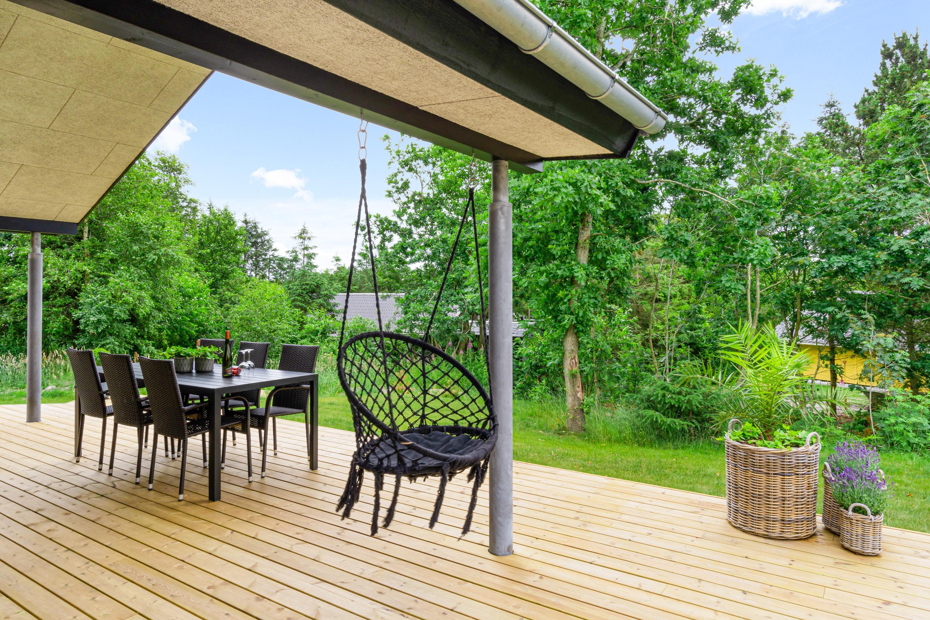 I får ikke kun et femstjernet indre, men også et fantastisk udeareal. En stor, lækker træterrasse kommer til at være centrum for de solrige dage, og terrassen har både afskærmning og overdækning. Der er altså både en plads til jer, der foretrækker fuld sol, og jer, der hellere vil sidde i skyggen.