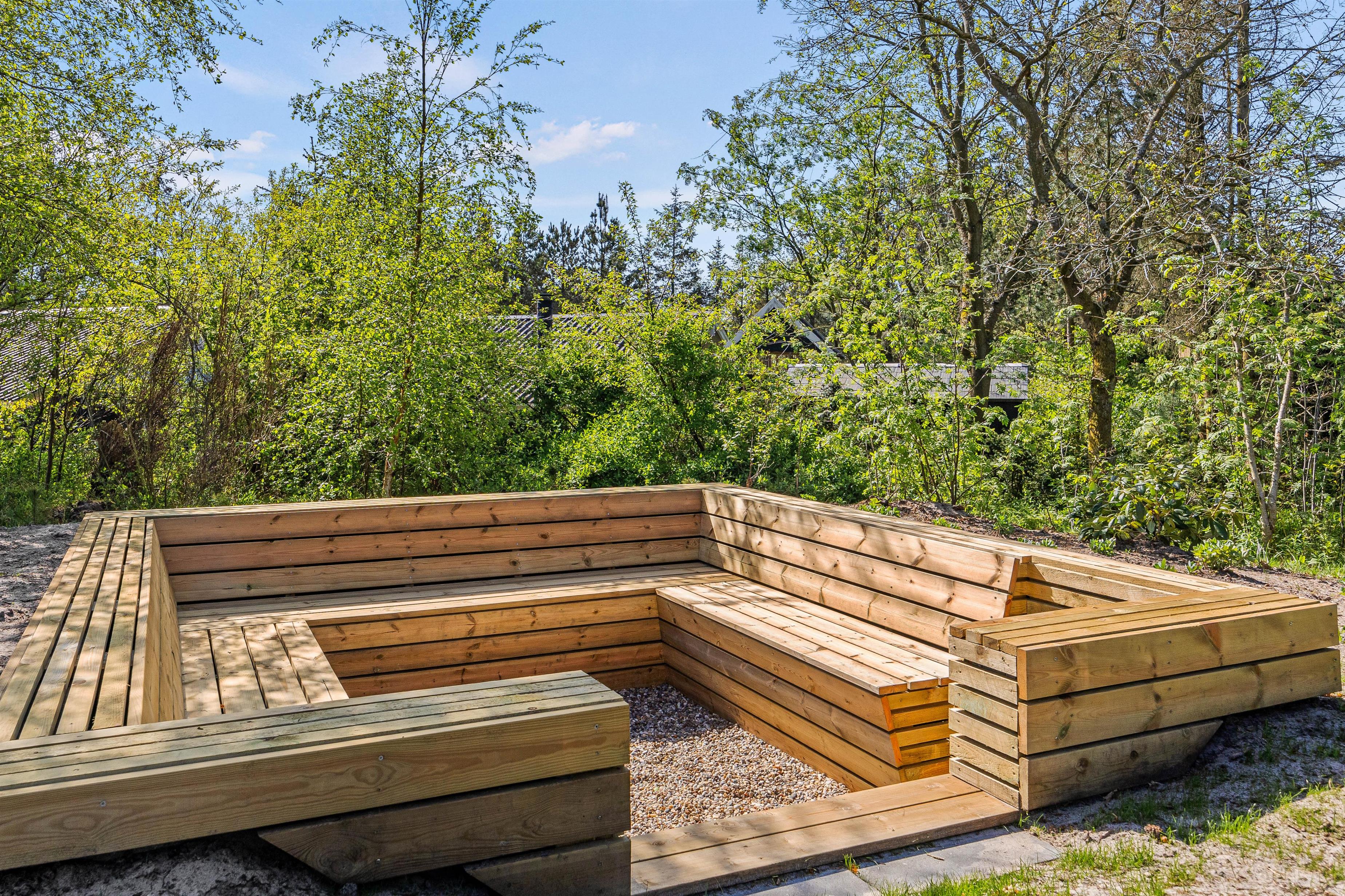 På terrassen finder I også et af luksushusets absolutte højdepunkter, nemlig et stort udendørs spabad med plads til jer alle. Her kan I forkæle jer selv lidt ekstra med en wellnessoplevelse under åben himmel – og det endda ganske ugeneret, eftersom hele grunden er omkranset af høje træer. Efterfølgende kan I få en skyller under udendørsbruseren*.