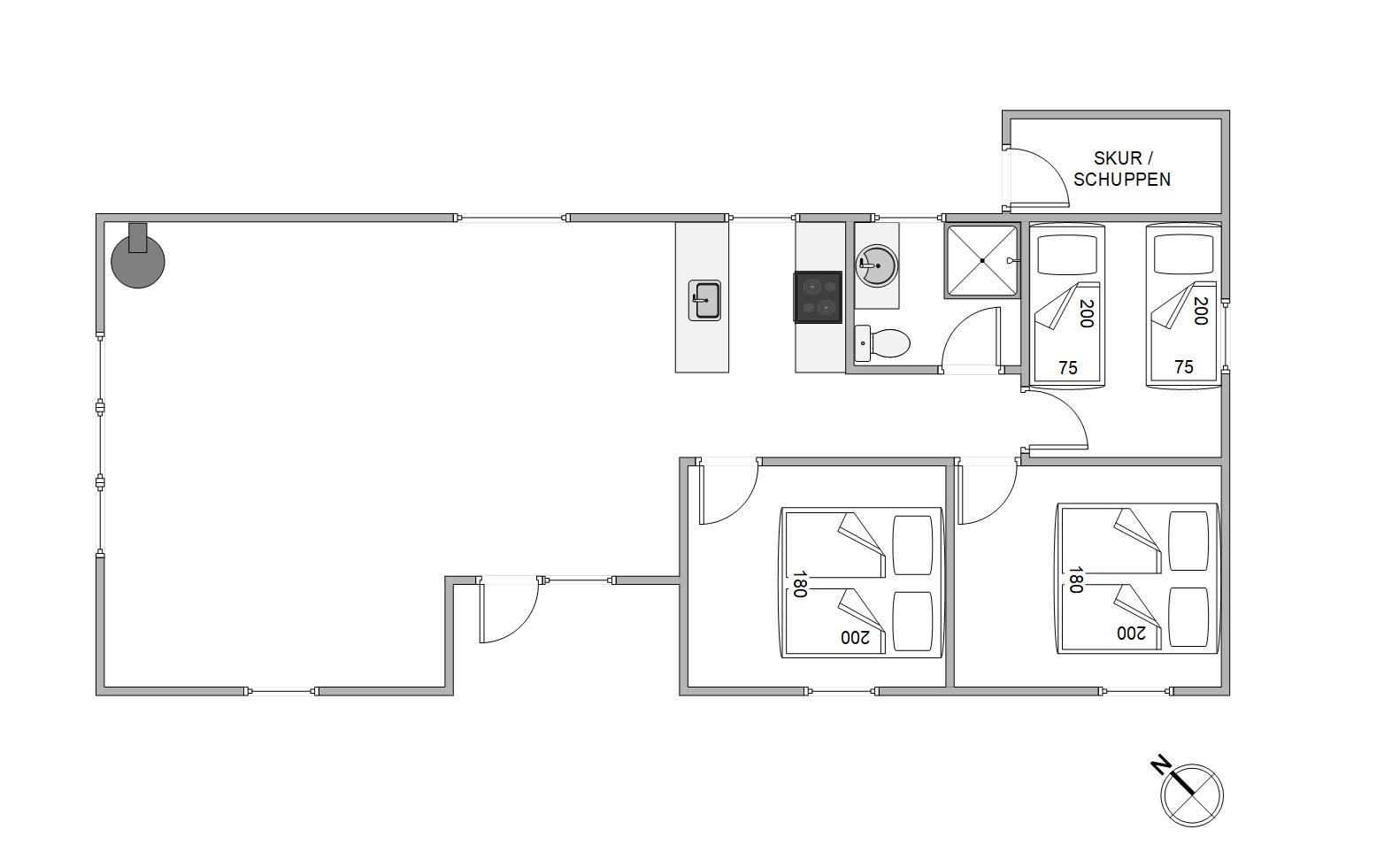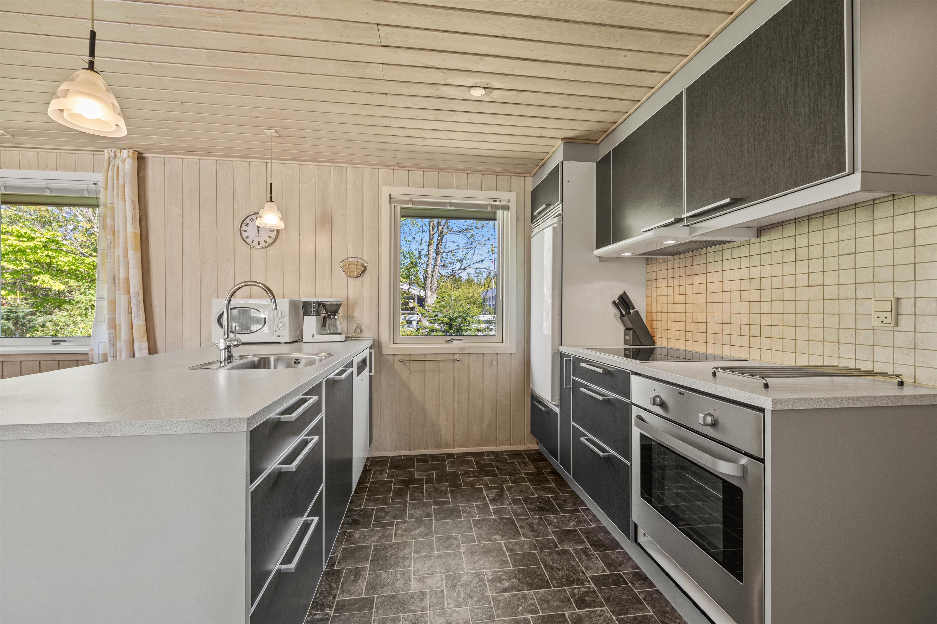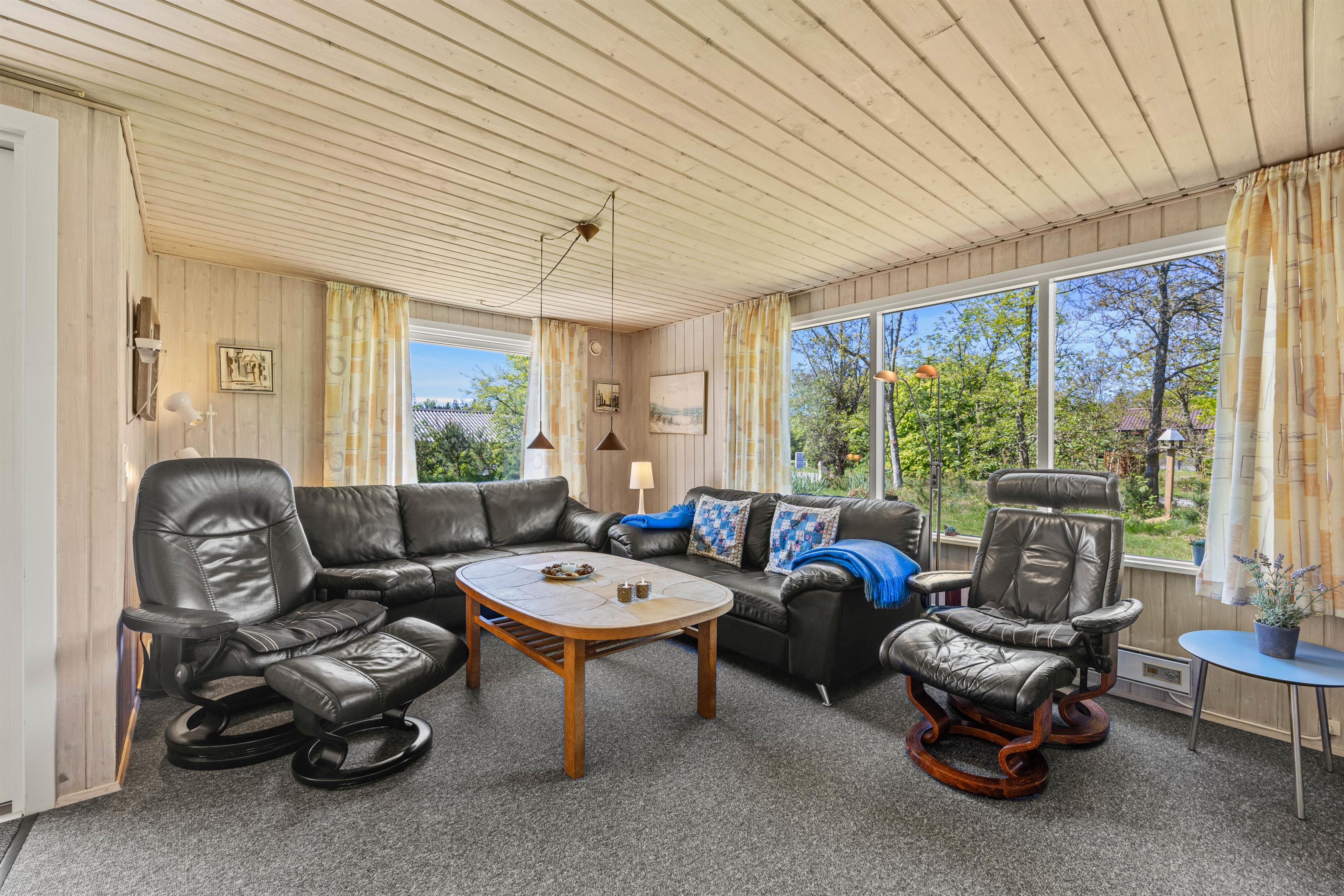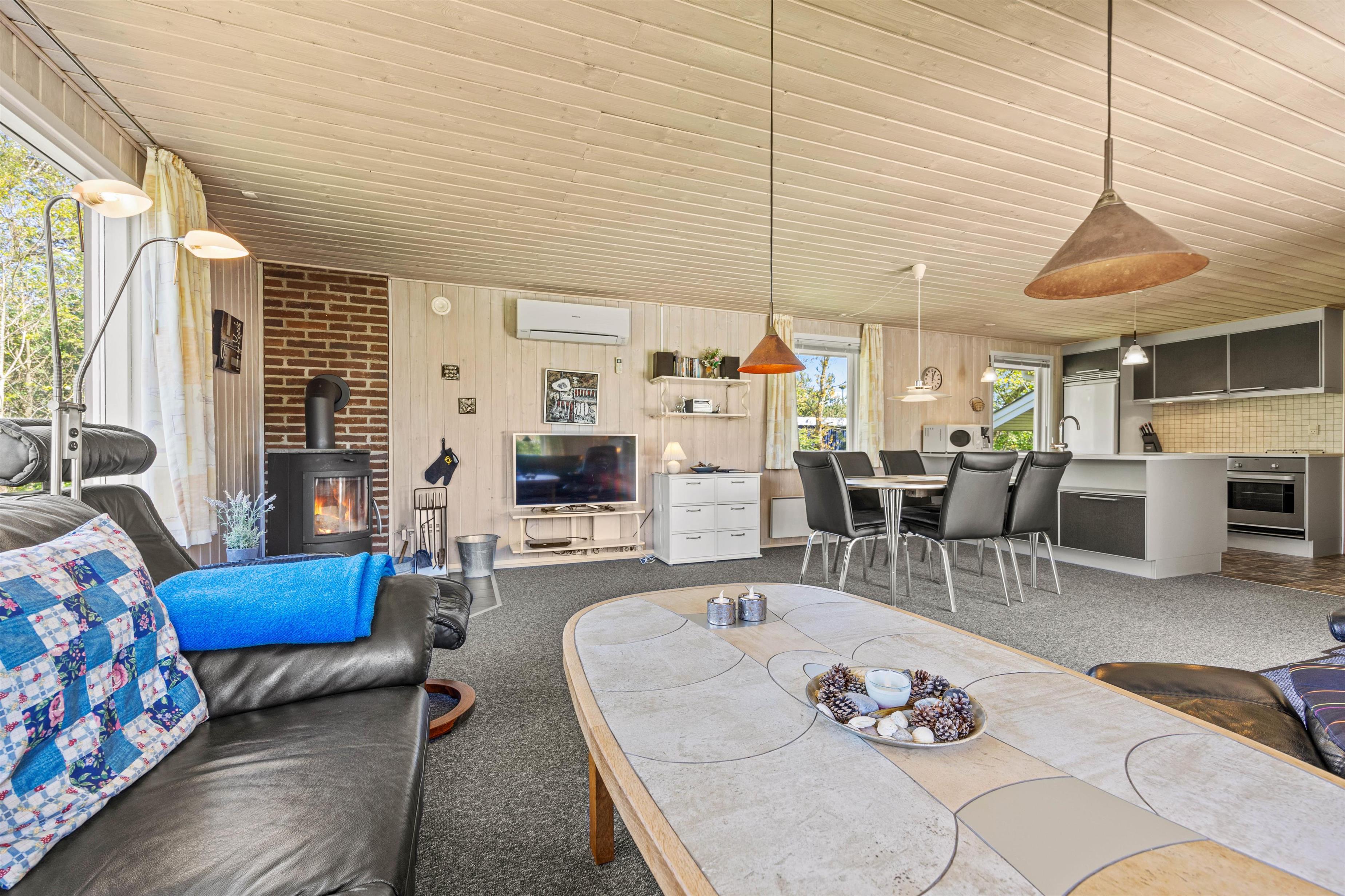 Med sine 75 m2 er der fint plads til 5 glade feriegæster på Lunden 6. Feriehuset er hyggeligt og enkelt indrettet, vinduerne inviterer dagslyset indenfor og har et åbent køkken/opholdsrum til familielivet. Brændeovnen er centralplaceret, så den både kan nydes fra stuen og fra køkkenet. Sid her med en god bog, en friskbrygget kop kaffe og mærk brændeovnens varme brede sig – dét er ægte sommerhushygge!