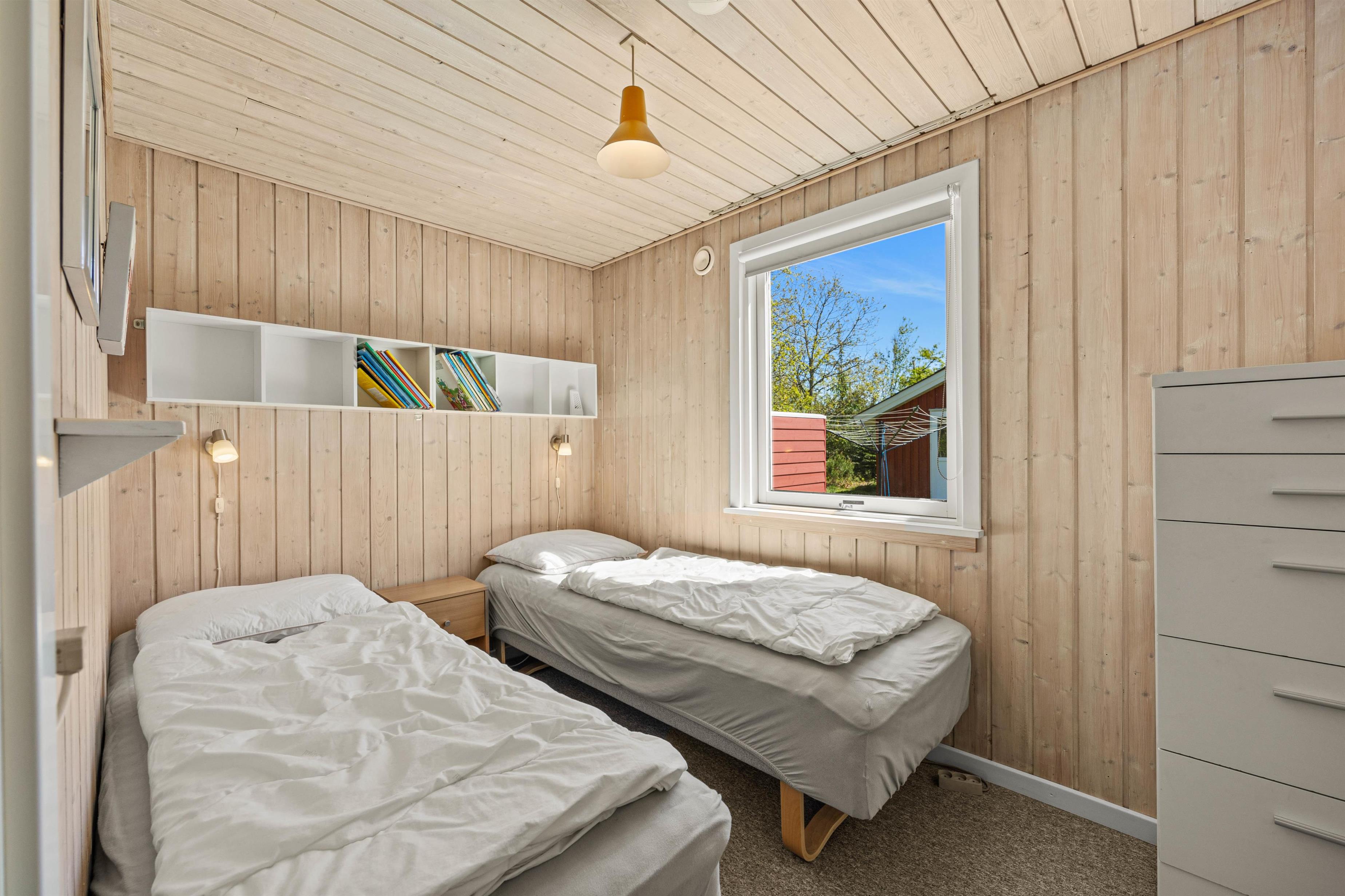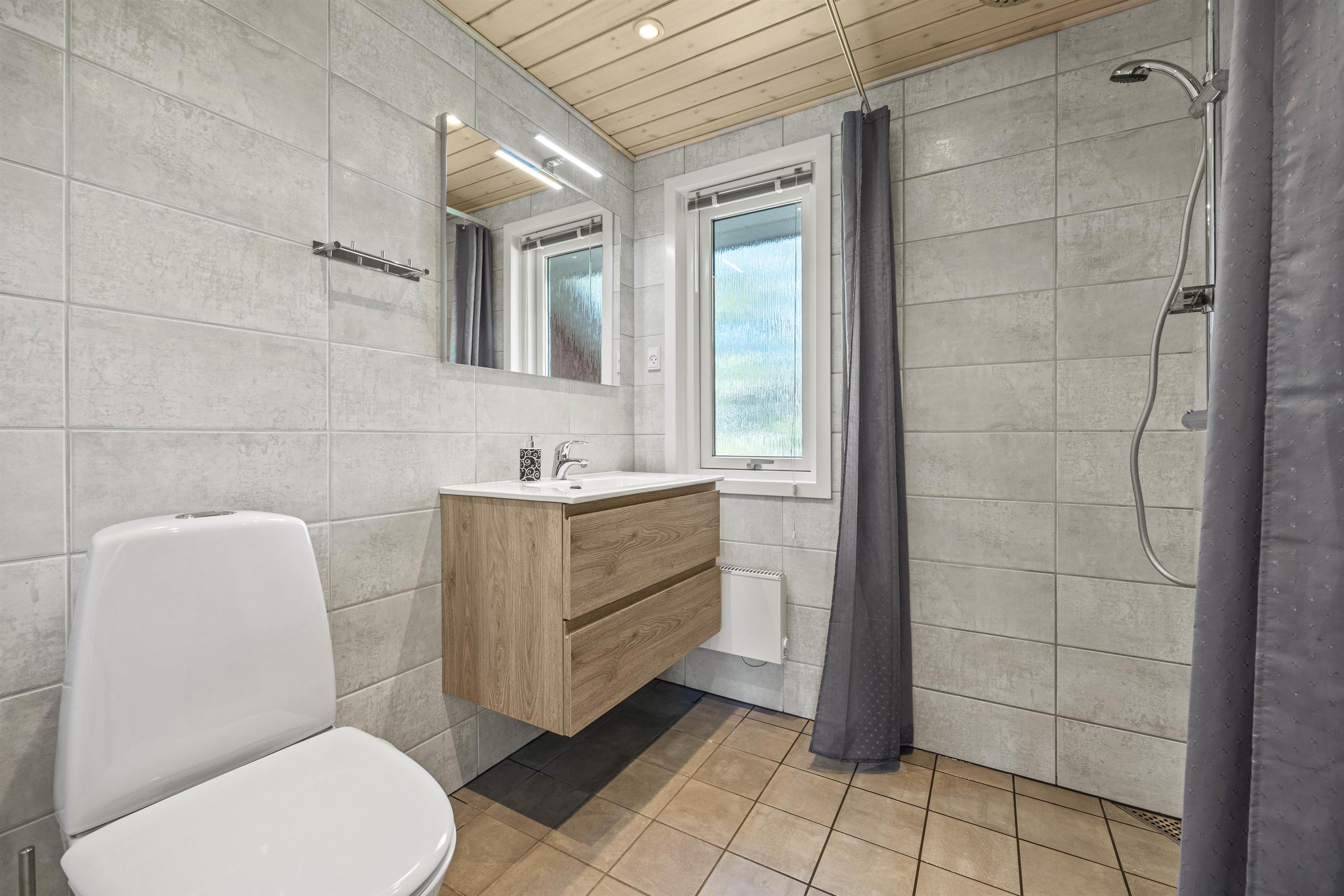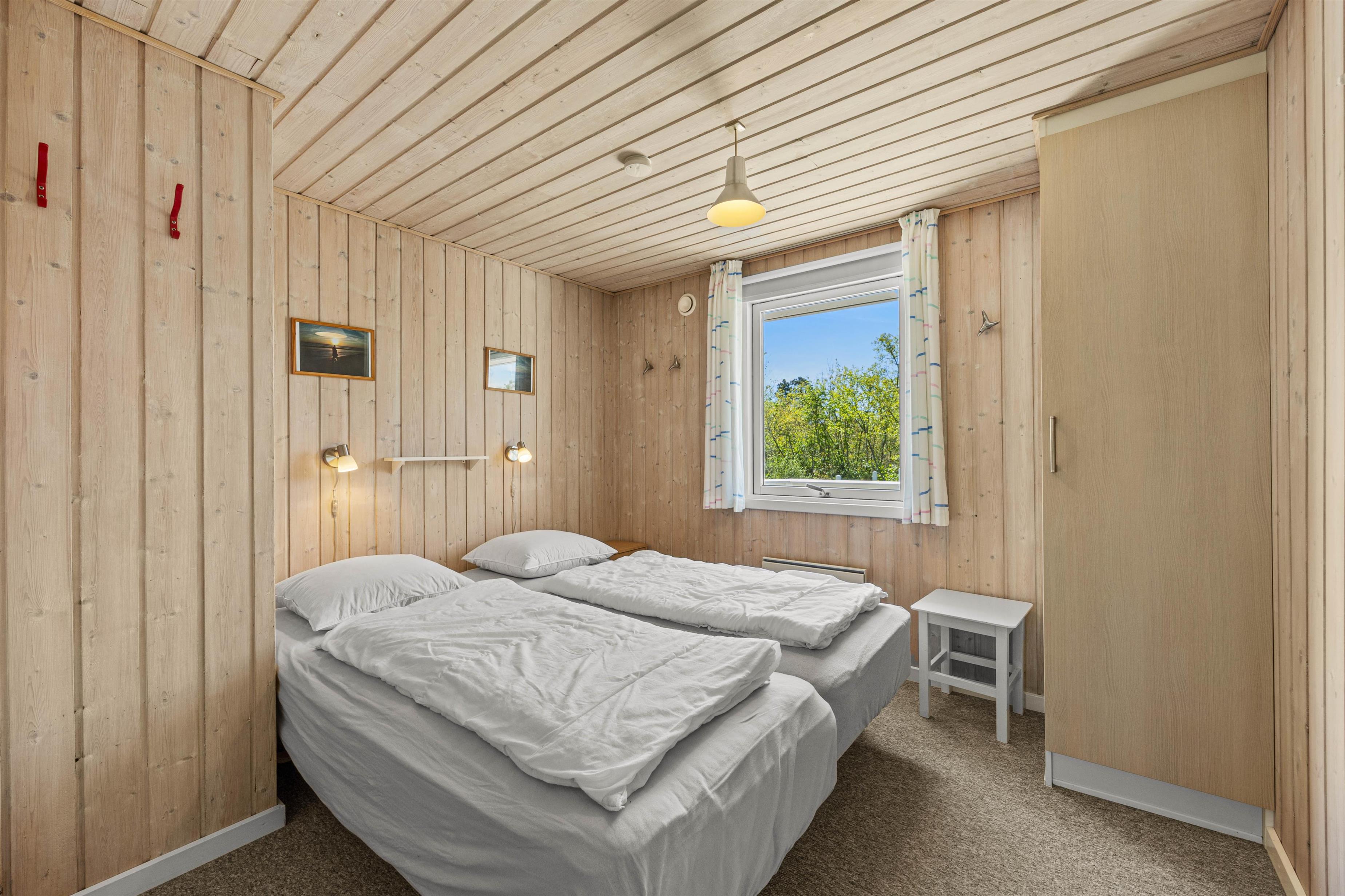 Her er 3 soveværelser, med gulvtæppe ligesom i resten af feriehuset. Her er I sikret en god nattesøvn, og her er skabe til opbevaring. Badeværelset er udstyret med gulvvarme, alrummet med en energibesparende varmepumpe, og opvaskemaskinen klarer oprydningen for jer! Praktisk er her også en vaskemaskine, hvis strandhåndklæderne skal opfriskes undervejs.