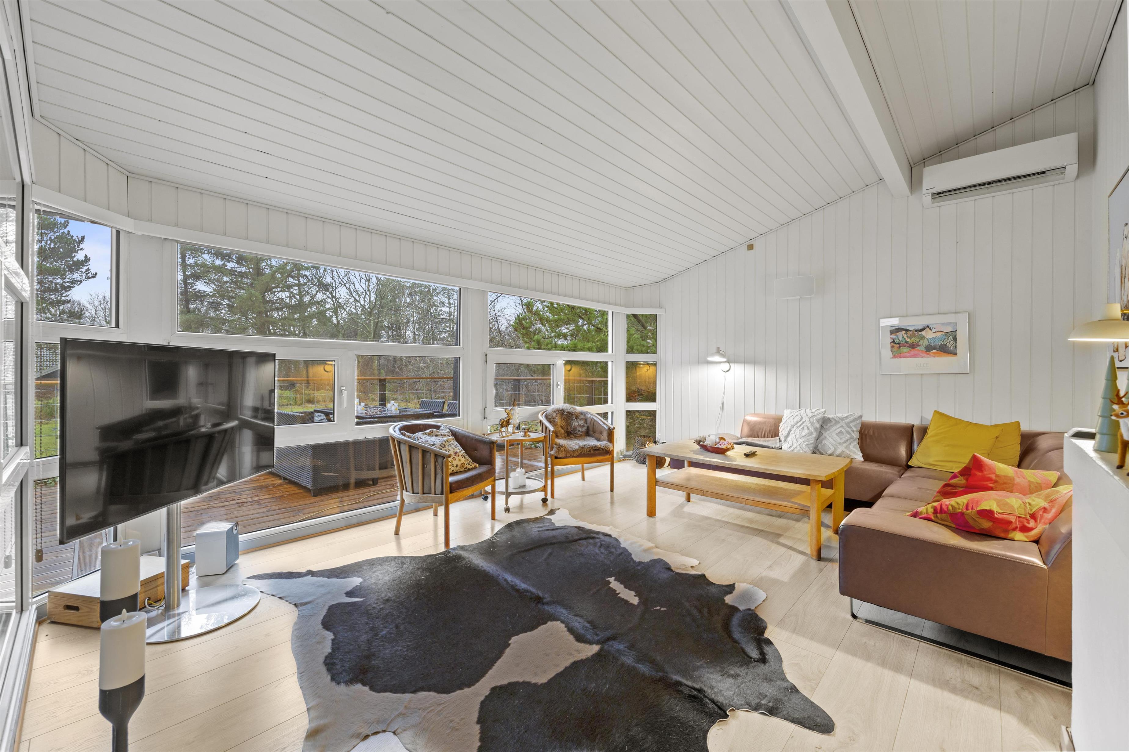 På den delvist overdækkede terrasse kan I slappe af i al slags vejr. Her kan I sammen grille eller spise en god morgenmad i solen, mens fuglene synger i trætoppene.