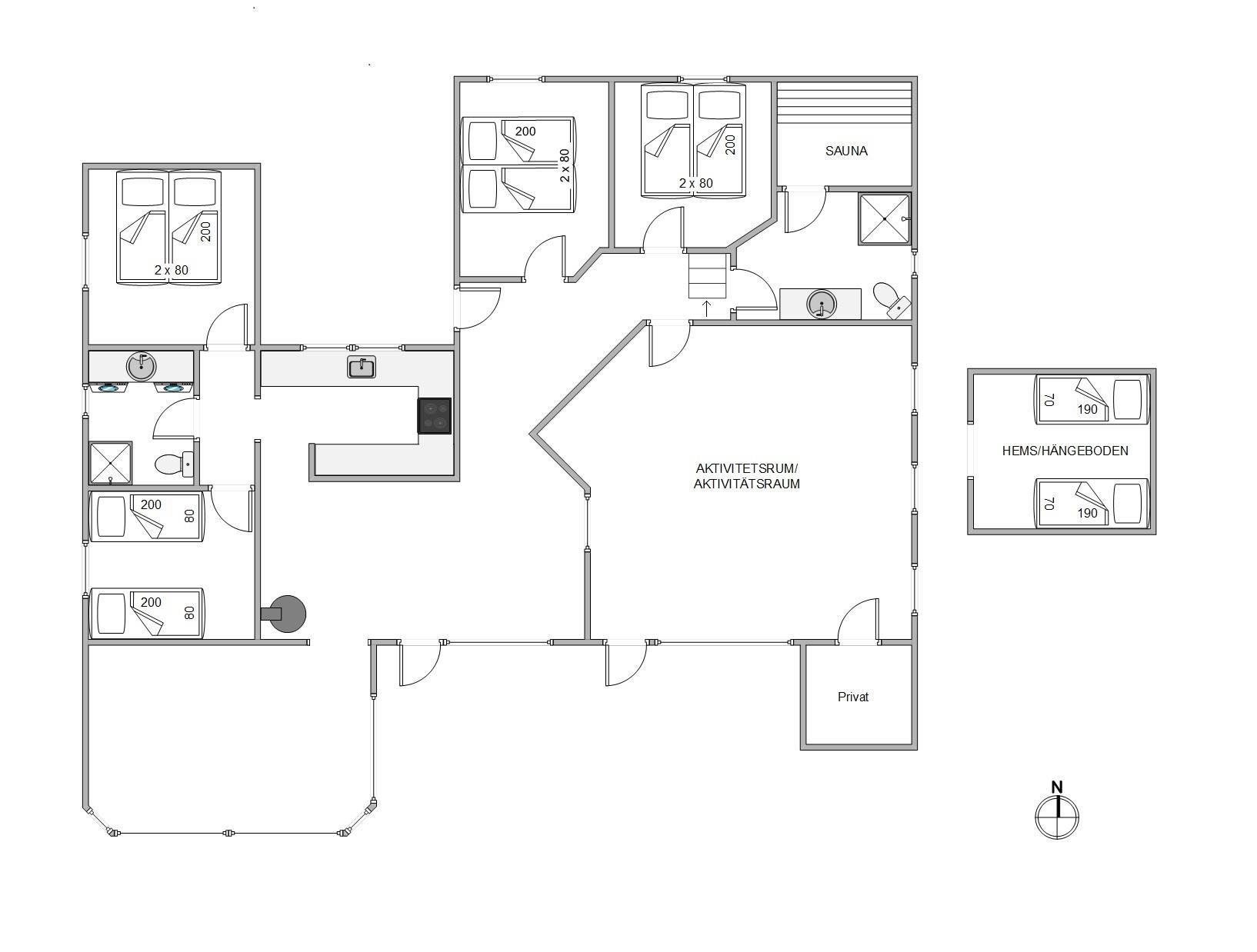 Huset har 2 badeværelser, hvoraf det ene indeholder en dejlig sauna. Her kan I varme jer efter en skøn tur ude ved stranden eller i Blåbjer Plantage, der ikke ligger langt fra dette feriehus.